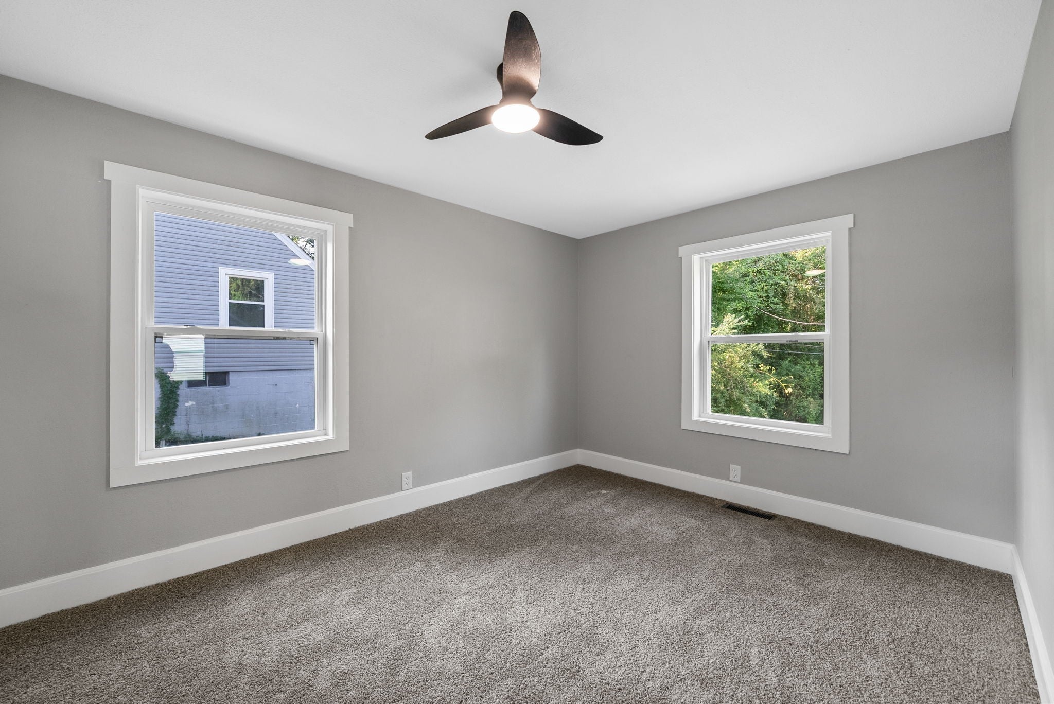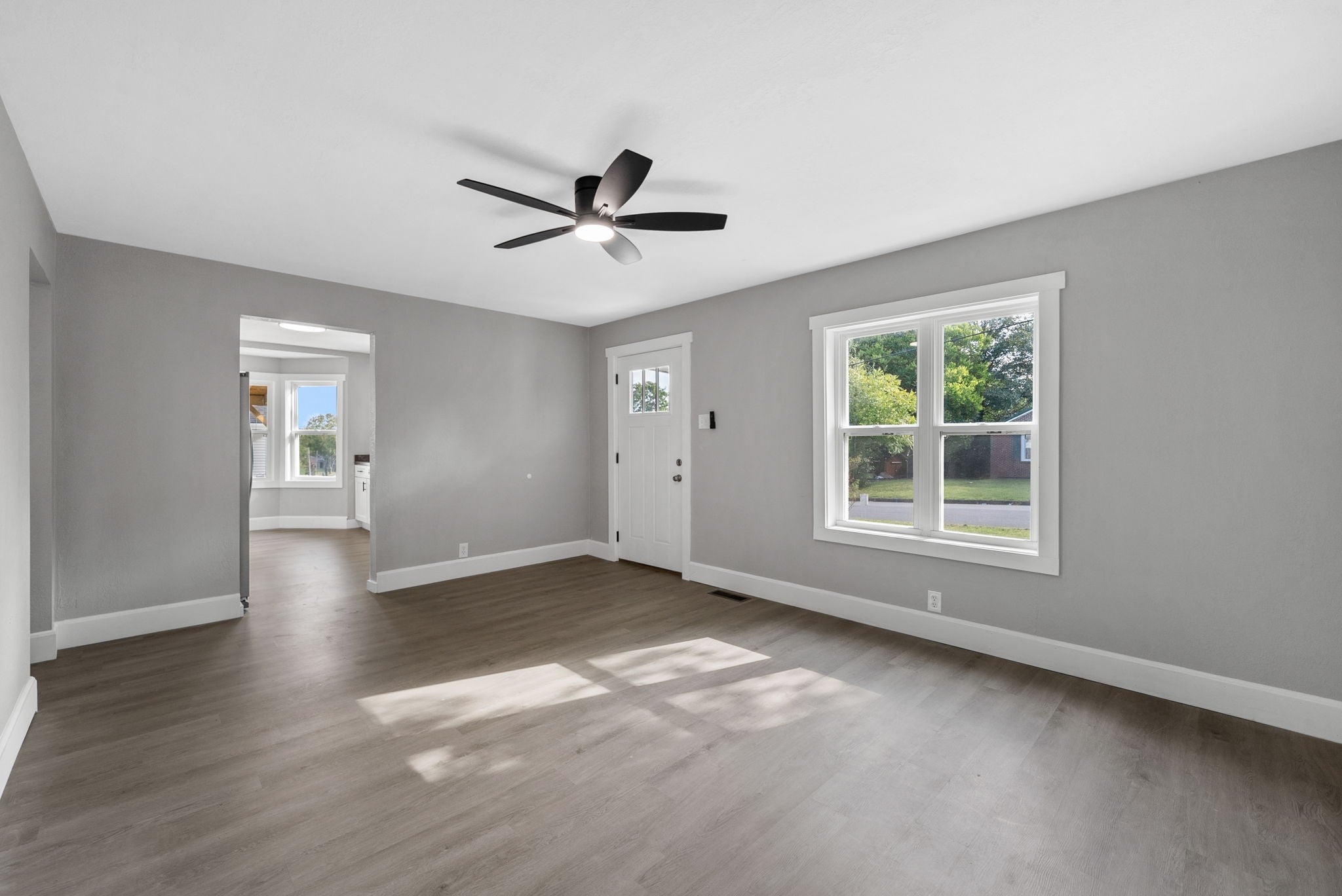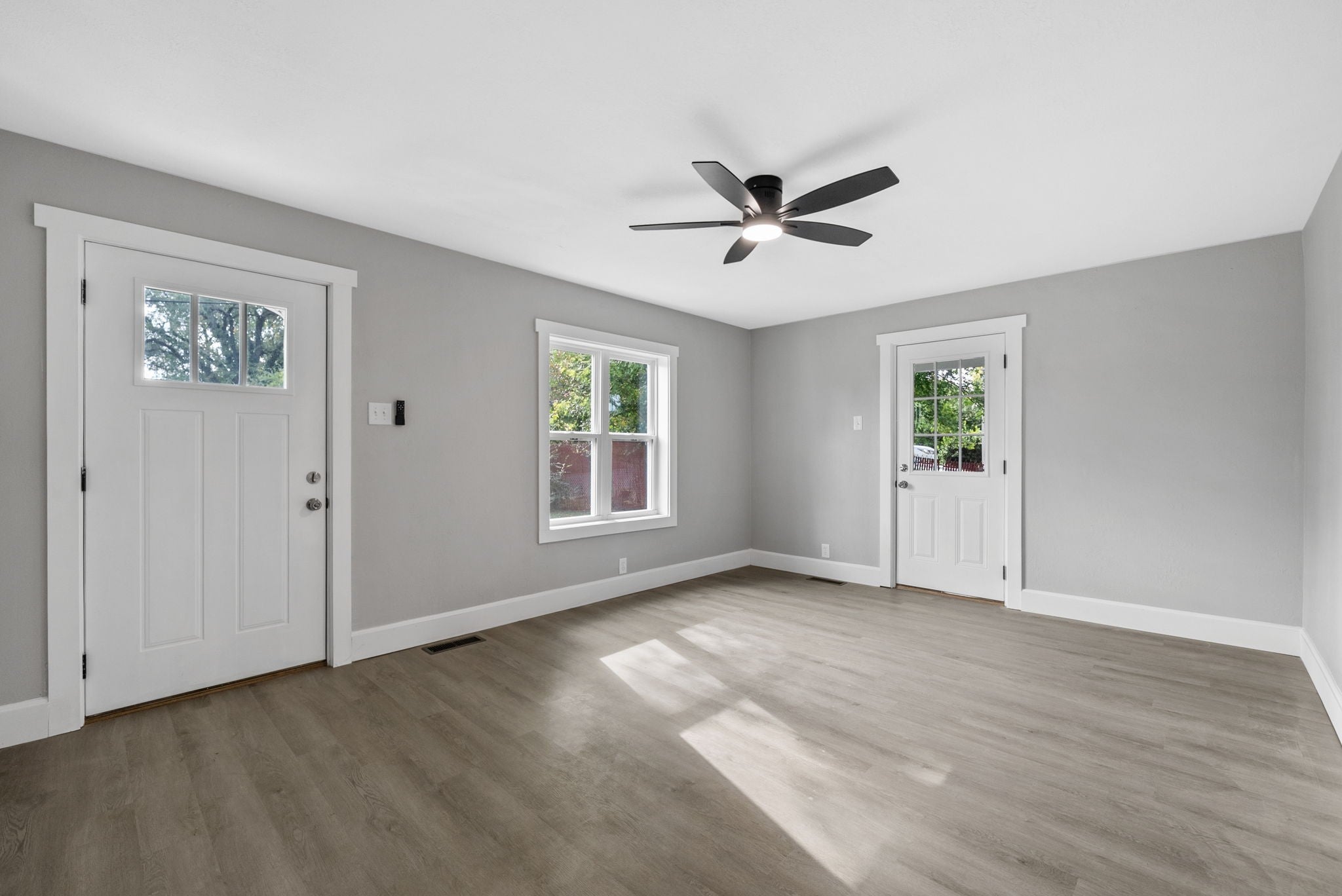 Pull up to this jaw-dropping, fully renovated home in the heart of downtown! Just minutes from the F&M Arena, River Walk, restaurants, and shopping. PERFECT for an Airbnb or your very first home. Step inside to a bright, open living room filled with natural light. You’ll love the brand-new luxury vinyl plank flooring that runs throughout. Fresh paint, and stylish light fixtures. Every ceiling fan includes a remote for comfort and ease. The kitchen shines with soft-close cabinets and a deep kitchen sink. The upstairs suite is a huge space that works as a 3rd bedroom or bonus room. It even has its own bathroom and HVAC system—making it perfect for privacy or guests. The bathrooms are beautifully renovated, and all the windows are brand new. The unfinished basement gives you endless options—create a gym, office, or extra living area. For now, it’s excellent for storage, with lights in every corner to keep it bright and usable. This home is move-in ready with major updates done for you: brand-new water heater, new plumbing, new electrical, new HVAC system with replaced ducts. Outside, enjoy peace of mind with a new 30-year roof, new siding, soffits, fascia, and gutters. Relax on your private side porch (yes, a private side porch!) or spend time in the spacious backyard with mature trees—ideal for barbecues, games, or quiet evenings. This home has been rebuilt with care from top to bottom. Don’t miss your chance to make it yours in time for the holidays!