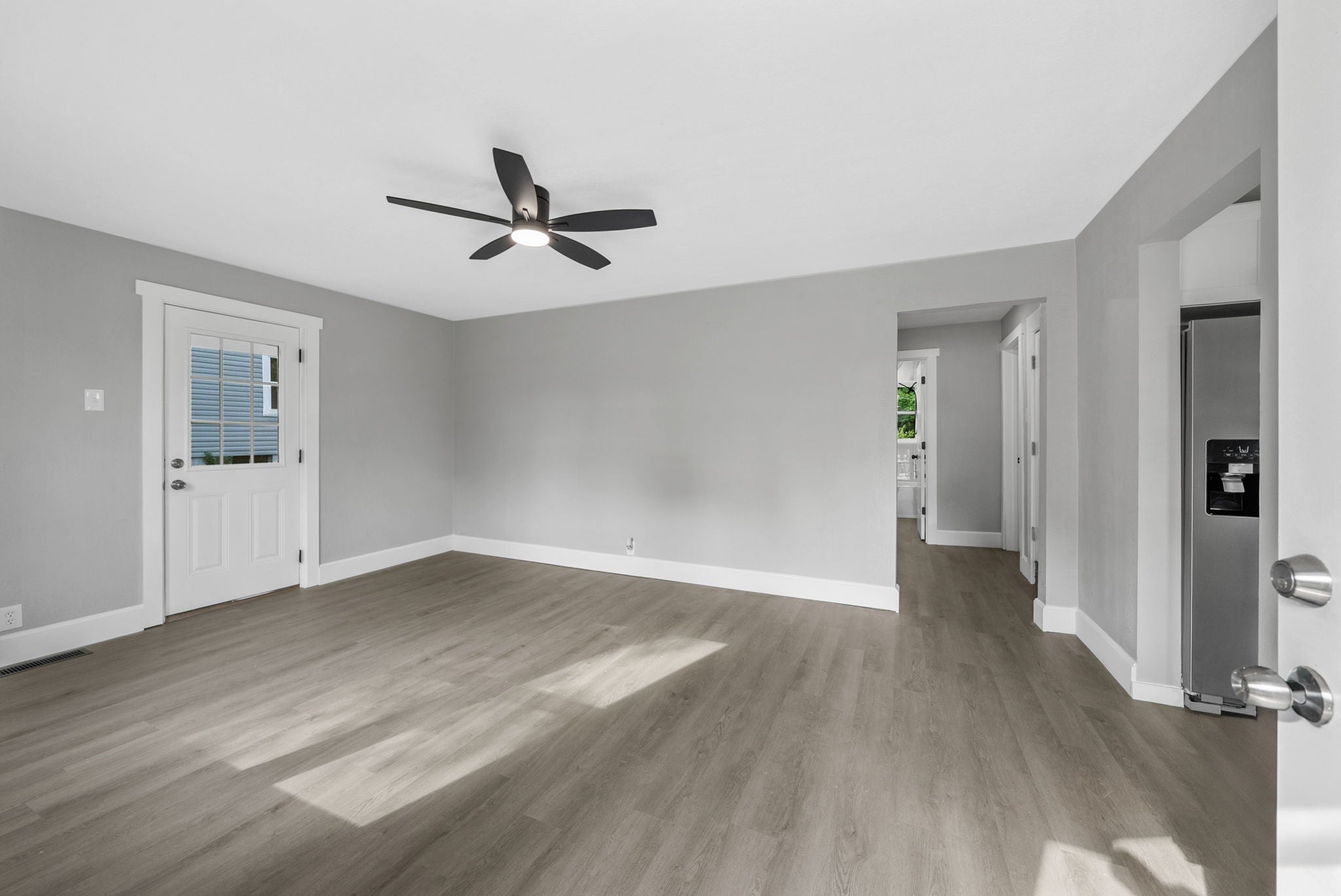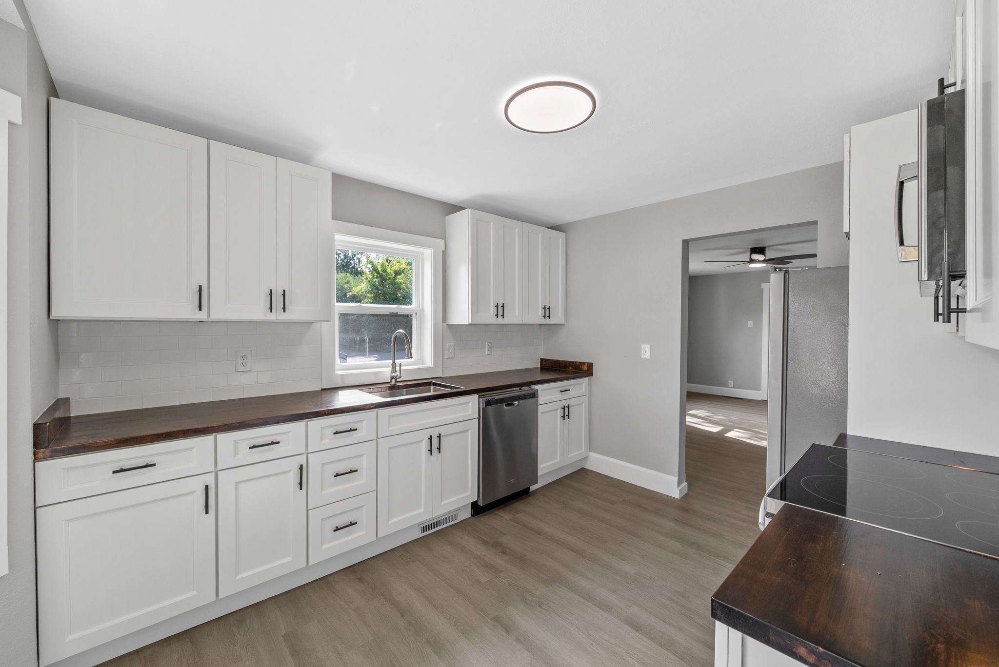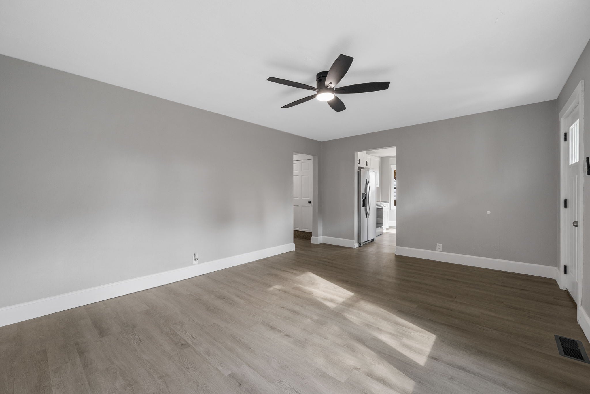 Pull up to this jaw-dropping, fully renovated home in the heart of downtown! Just minutes from the F&M Arena, River Walk, restaurants, and shopping. PERFECT for an Airbnb or your very first home. Step inside to a bright, open living room filled with natural light. You’ll love the brand-new luxury vinyl plank flooring that runs throughout. Fresh paint, and stylish light fixtures. Every ceiling fan includes a remote for comfort and ease. The kitchen shines with soft-close cabinets and a deep kitchen sink. The upstairs suite is a huge space that works as a 3rd bedroom or bonus room. It even has its own bathroom and HVAC system—making it perfect for privacy or guests. The bathrooms are beautifully renovated, and all the windows are brand new. The unfinished basement gives you endless options—create a gym, office, or extra living area. For now, it’s excellent for storage, with lights in every corner to keep it bright and usable. This home is move-in ready with major updates done for you: brand-new water heater, new plumbing, new electrical, new HVAC system with replaced ducts. Outside, enjoy peace of mind with a new 30-year roof, new siding, soffits, fascia, and gutters. Relax on your private side porch (yes, a private side porch!) or spend time in the spacious backyard with mature trees—ideal for barbecues, games, or quiet evenings. This home has been rebuilt with care from top to bottom. Don’t miss your chance to make it yours in time for the holidays!