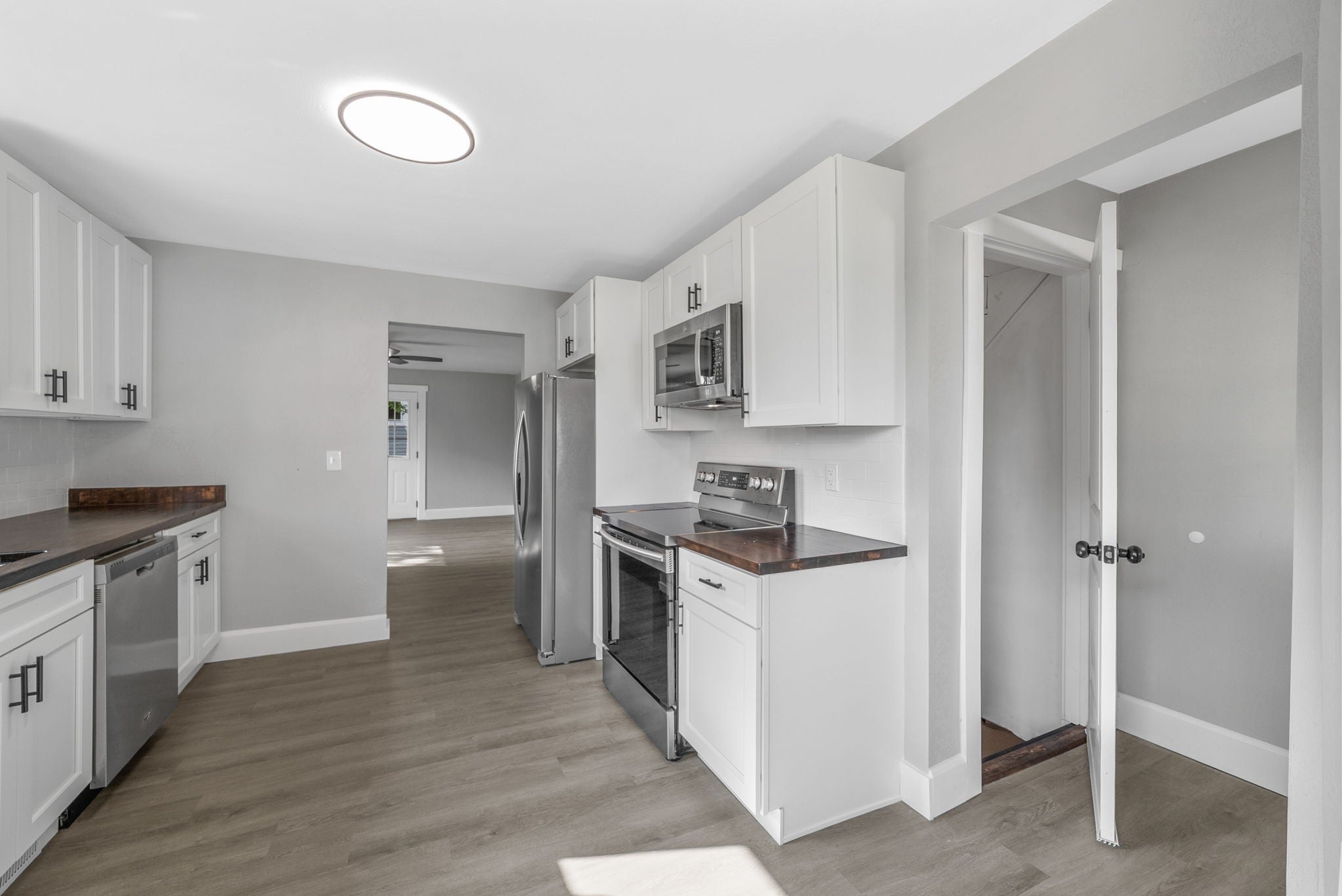 - Electric Oven, Electric Range, Dishwasher, Microwave, Refrigerator, Stainless Steel Appliance(s)