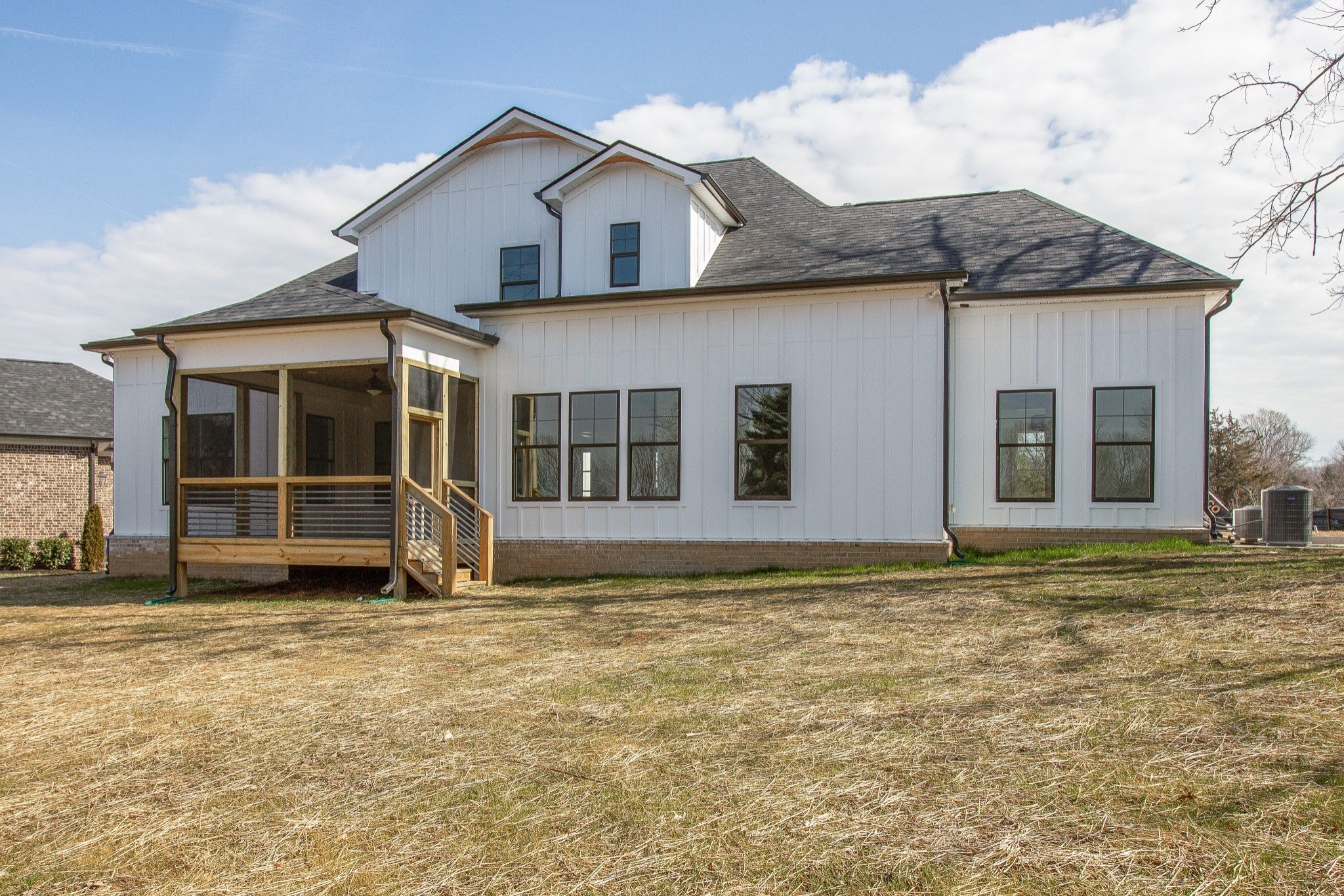 Dalamar Homes Presents the "Oreti C" Modern Farmhouse Elegance with Designer Finishes. This stunning home combines timeless craftsmanship with modern sophistication. From the moment you arrive, the inviting farmhouse exterior and bronze-accented windows set the tone for what awaits inside.Step through the front door and into an open floor plan filled with natural light from extra windows, highlighting the soaring 10' ceilings, rounded corners, and tall, elegant baseboards that create a refined, airy atmosphere. Throughout the home, you’ll find upgraded laminate vinyl plank flooring, tile-finished bathrooms, and interior doors painted in rich onyx for a striking contrast against the custom millwork. The heart of the home showcases upgraded custom cabinetry, thoughtfully designed for both style and function, offering abundant storage and seamless flow into the main living areas. The primary suite is a luxurious retreat, featuring a spa-like bathroom with a free-standing soaking tub, a spacious walk-in shower, dual vanities, and plenty of room to relax and recharge. Every detail has been carefully selected, blending modern comfort with timeless character. This home is more than just a place to live—it’s a showcase of craftsmanship, quality, and style.