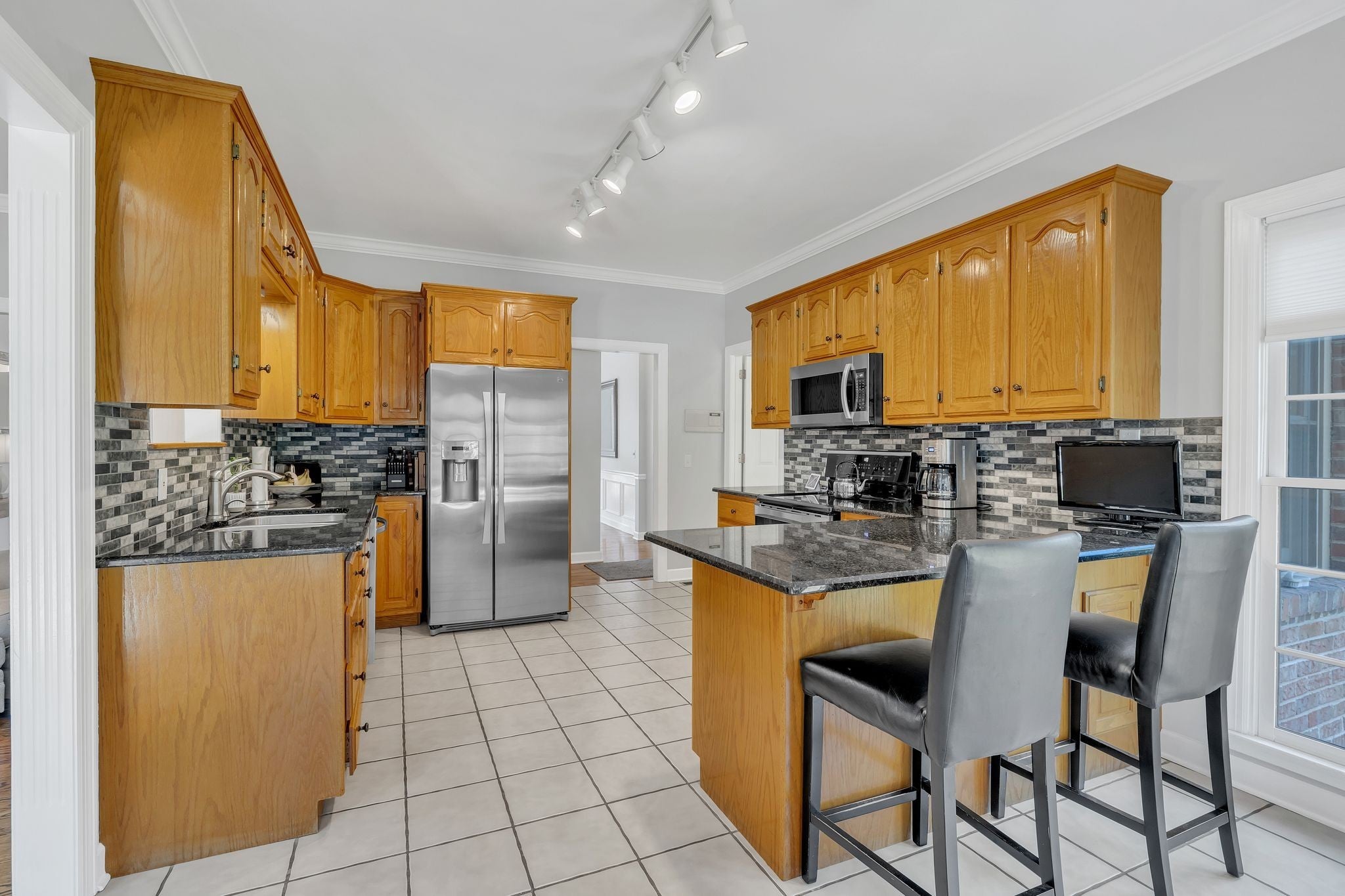 - Double Oven, Electric Range, Dishwasher, Microwave, Refrigerator, Stainless Steel Appliance(s)