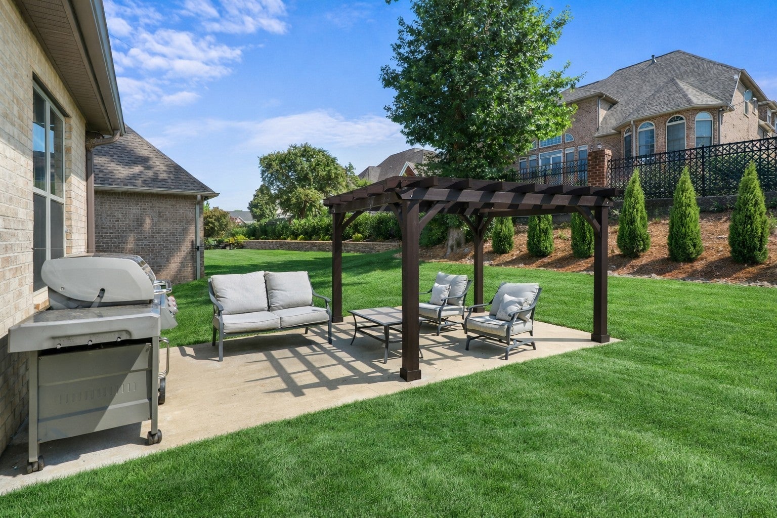 Welcome to 1032 Luxborough Drive, a stunning 4-bedroom, 3.5-bath home in the desirable Somerset Downs community of Hendersonville. Built in 2020, this elegant brick and stone residence offers nearly 3,300 sq. ft. of beautifully designed living space on a spacious third-acre lot. The inviting entry showcases hardwood floors, an oak staircase, and a light-filled great room with soaring ceilings. The separate dining room is perfect for hosting formal meals, while the dedicated home office provides privacy and comfort for remote work or study. The chef’s kitchen features granite countertops, a gas range, custom cabinetry, and a large island that flows seamlessly into the open living area. The primary suite, located on the main level, offers a spa-like bath with a Jacuzzi tub, walk-in tile shower, and custom walk-in closet. Upstairs you’ll find three additional bedrooms, and a versatile bonus room. Outdoors, enjoy a back patio with a gas line ready for grilling, irrigation in the front yard, and a two-car garage. Community amenities include a playground and sidewalks, all within minutes of shopping, dining, and highly rated schools—Beech Elementary, T.W. Hunter Middle, and Beech Sr. High. This move-in ready home combines comfort, style, and functionality in one of Hendersonville’s most sought-after neighborhoods.