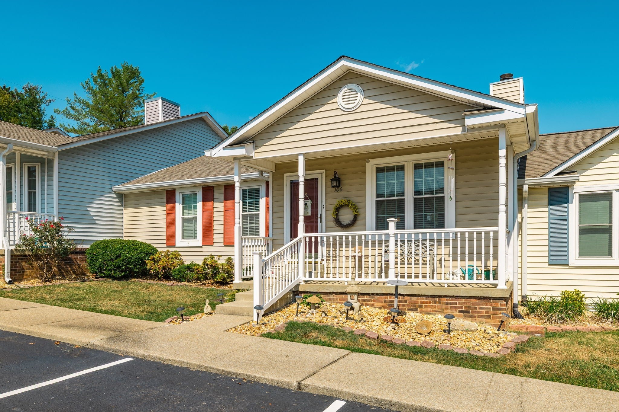 This charming one-level, 3-bedroom, 2-bath condominium is attractively priced and ready for its next owner. The home offers a spacious back deck with a storage room, along with an inviting front porch—perfect for relaxing in a pair of rocking chairs. The kitchen is complete with granite countertops and a cozy eat-in nook, while an additional dining area provides space for a larger table or could easily serve as a home office. Residents will enjoy access to a beautiful community pool, adding to the appeal of this well-maintained neighborhood. The hot water heater was replaced on 5/25. Hoa maintains exterior of condo including the roof, Roof replaced 2022. Two assigned parking spaces are located directly in front of the condo for convenience. Call the listing agent with questions or to view this property. 615-934-1401