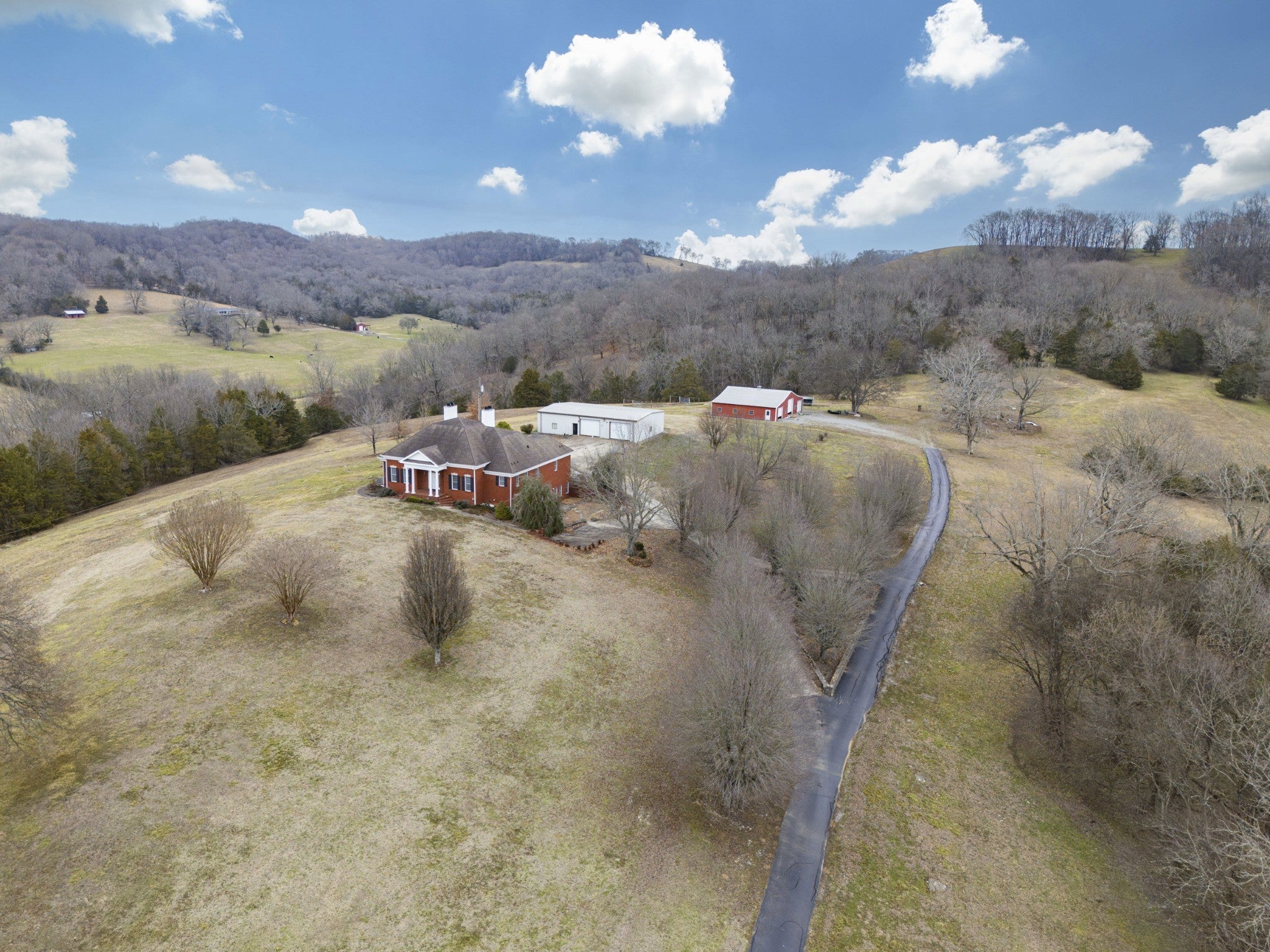 Join us 6/14/25 4pm-7pm for a Sip, See, & Shoot OPEN HOUSE! Welcome to the Stunning 81.7-Acre Estate in Lincoln County, TN! Welcome to 954 Molino Road, an incredible property in Middle Tennessee offering breathtaking hilltop views and endless possibilities! This sprawling 81.7-acre estate is conveniently located with easy access to Huntsville, AL, making it perfect for those seeking privacy without sacrificing convenience. The main home features 4 bedrooms, 3.5 bathrooms, and abundant flex space to customize for additional bedrooms, offices, or bonus areas. High-end details include Brazilian cherry floors, plantation shutters, electric blinds in the primary bath, custom Amish cabinetry, Corian countertops, a KitchenAid Sub-Zero fridge, a vented stovetop with griddle, trash compactor, and instant water heaters. Cozy up by one of two fireplaces—a stunning sandstone gas fireplace or the wood burning fireplace downstairs for added warmth. A safe room with a vault door adds extra security. Outdoors, the property is a dream! A detached 3-car metal garage includes a 1,200 sq. ft. apartment with 1 bed/1 bath—ideal for a guest suite or maybe even a recording studio. Additionally, a barn/shop with four roll-up doors provides even more functionality. Two previous ponds possibly could be restored (currently dry), and a third-floor walk-out attic offers even more potential for expansion. Enjoy paved drive access, high-speed internet, and the freedom of multigenerational living. Whether you’re looking for a private retreat, a working farm, or an entertainer’s paradise, this estate has it all. Schedule your showing today and experience the beauty of Tennessee country living!