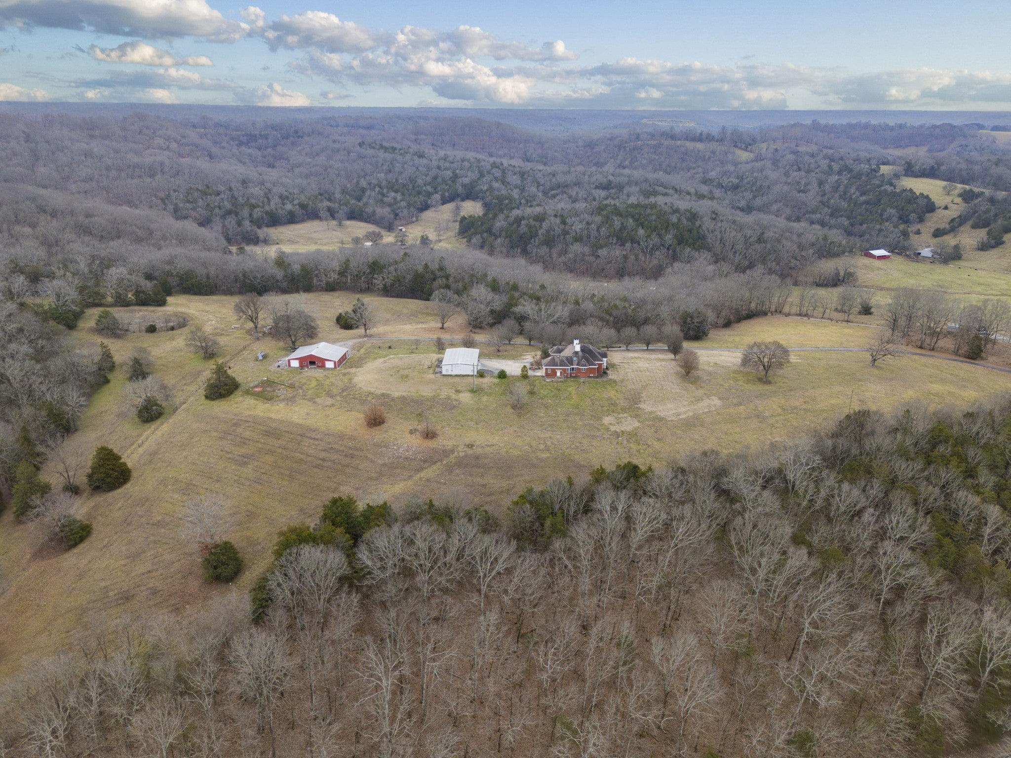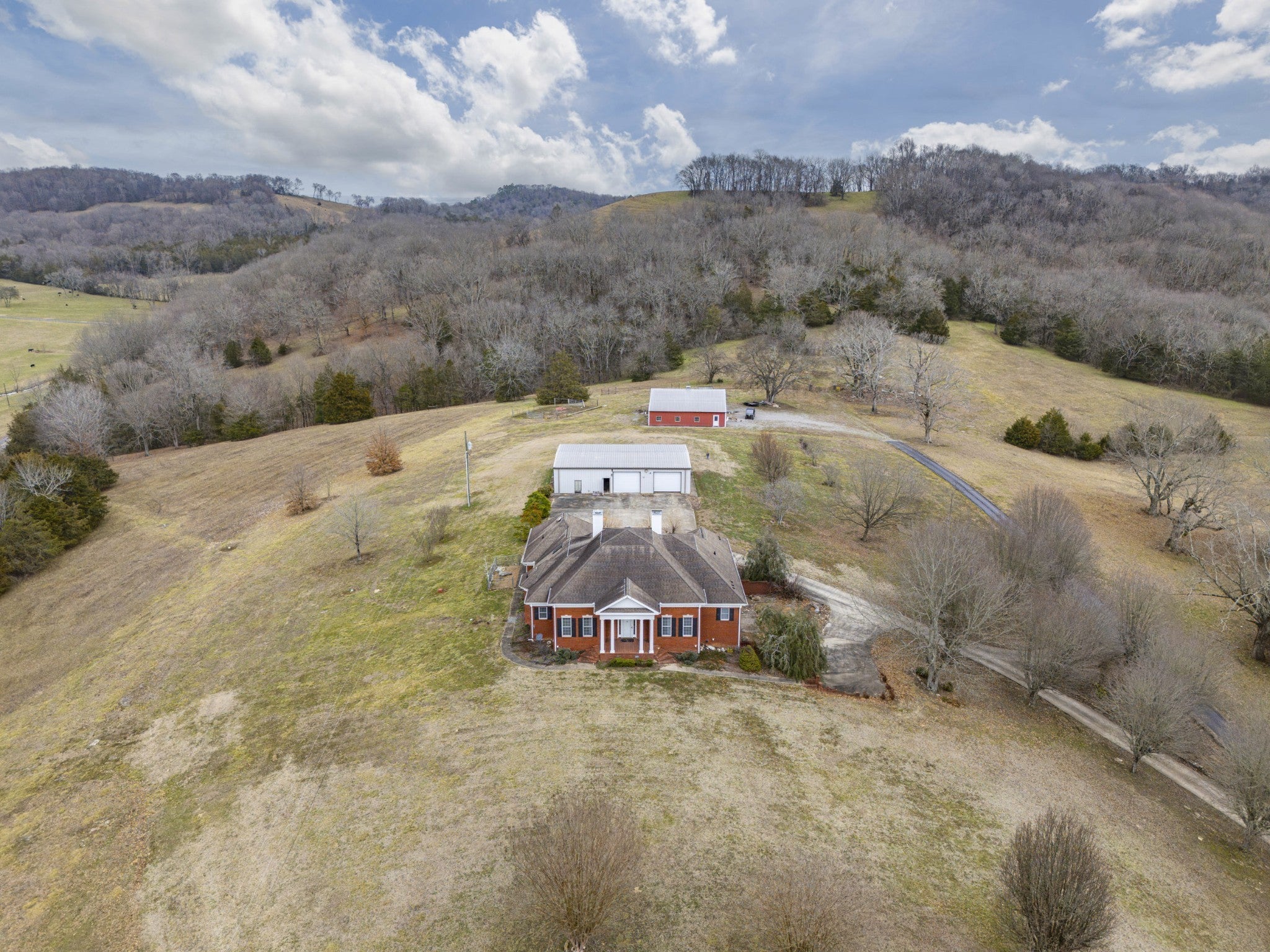 Welcome to the Stunning 81.7-Acre Estate in Lincoln County, TN! Welcome to 954 Molino Road, an incredible property in Middle Tennessee offering breathtaking hilltop views and endless possibilities! This sprawling 81.7-acre estate is conveniently located with easy access to Huntsville, AL, making it perfect for those seeking privacy without sacrificing convenience. The main home features 4 bedrooms, 3.5 bathrooms, and abundant flex space to customize for additional bedrooms, offices, or bonus areas. High-end details include Brazilian cherry floors, plantation shutters, electric blinds in the primary bath, custom Amish cabinetry, Corian countertops, a KitchenAid Sub-Zero fridge, a vented stovetop with griddle, trash compactor, and instant water heaters. Cozy up by one of two fireplaces—a stunning sandstone gas fireplace or the wood burning fireplace downstairs for added warmth. A safe room with a vault door adds extra security. Outdoors, the property is a dream! A detached 3-car metal garage includes a 1,200 sq. ft. apartment with 1 bed/1 bath—ideal for a guest suite or maybe even a recording studio. Additionally, a barn/shop with four roll-up doors provides even more functionality. Two previous ponds possibly could be restored (currently dry), and a third-floor walk-out attic offers even more potential for expansion. Enjoy paved drive access, high-speed internet, and the freedom of multigenerational living. Whether you’re looking for a private retreat, a working farm, or an entertainer’s paradise, this estate has it all. Schedule your showing today and experience the beauty of Tennessee country living!