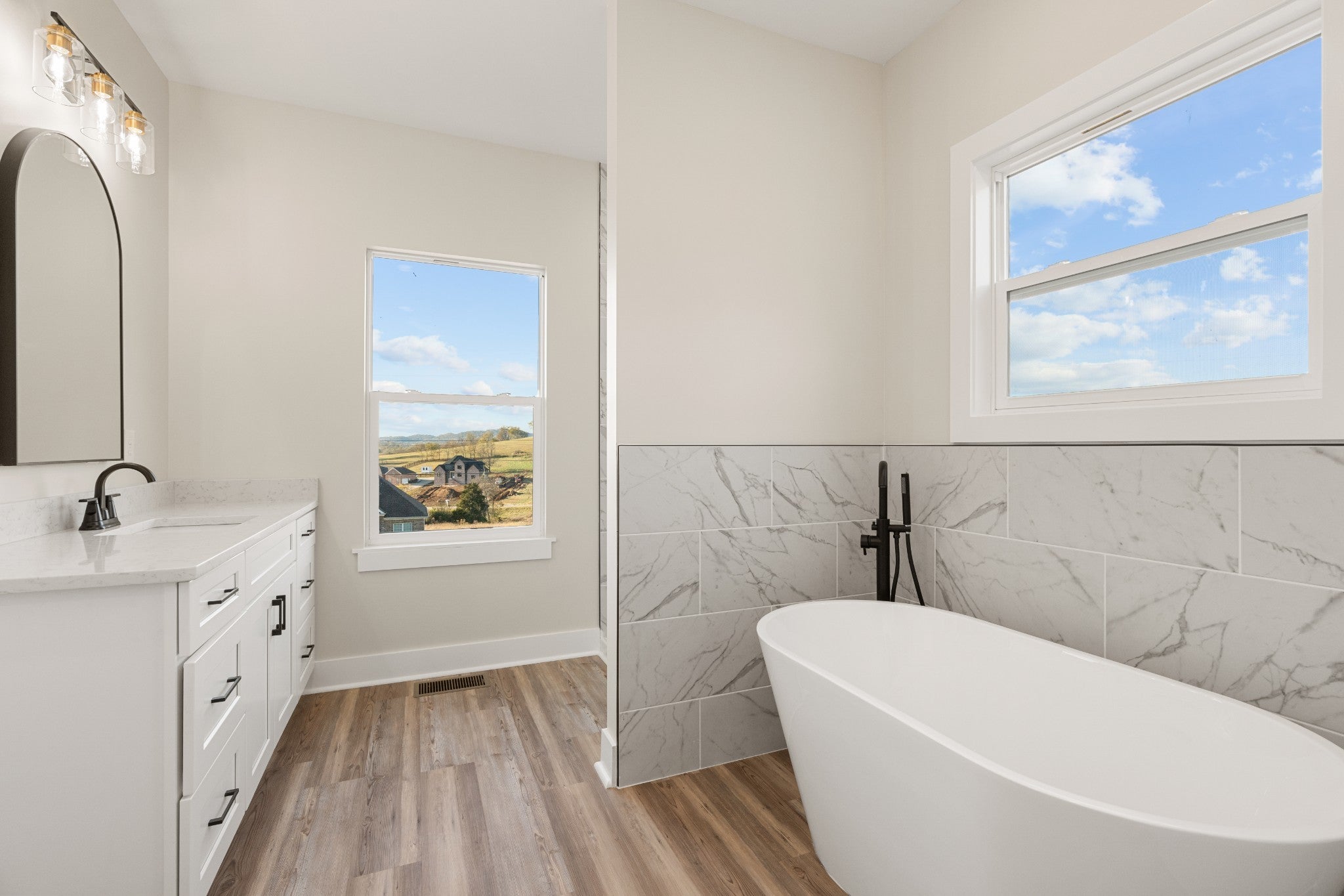 READY FOR A NEW FAMILY! This Modern Farmhouse, situated in a country setting, welcomes you with an open floorplan, an abundance of windows allows natural light inside, enjoy a well equipped kitchen with cream shaker cabinetry & a warm stained island, beautiful granite countertops, stainless appliances including cooktop, oven/microwave & designer lighting. White oak laminate floors throughout the home brings an updated color scheme with warm cream walls. A electric fireplace anchors a large family room and , the large primary suite does not disappoint with a walk-in tile shower, soaking tub and double vanities. Additional oversized secondary bedrooms with walk-in closets can satisfy your needs for a growing family or home office. The front and back porches allows you to enjoy morning coffee or afternoon sunsets in tranquility.