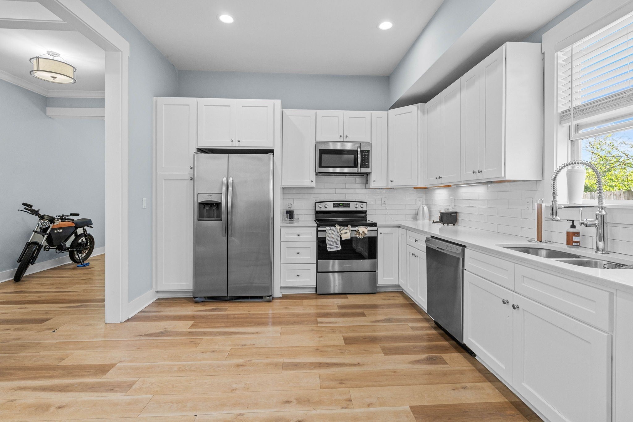 - Electric Oven, Cooktop, Dishwasher, Disposal, Microwave, Refrigerator
