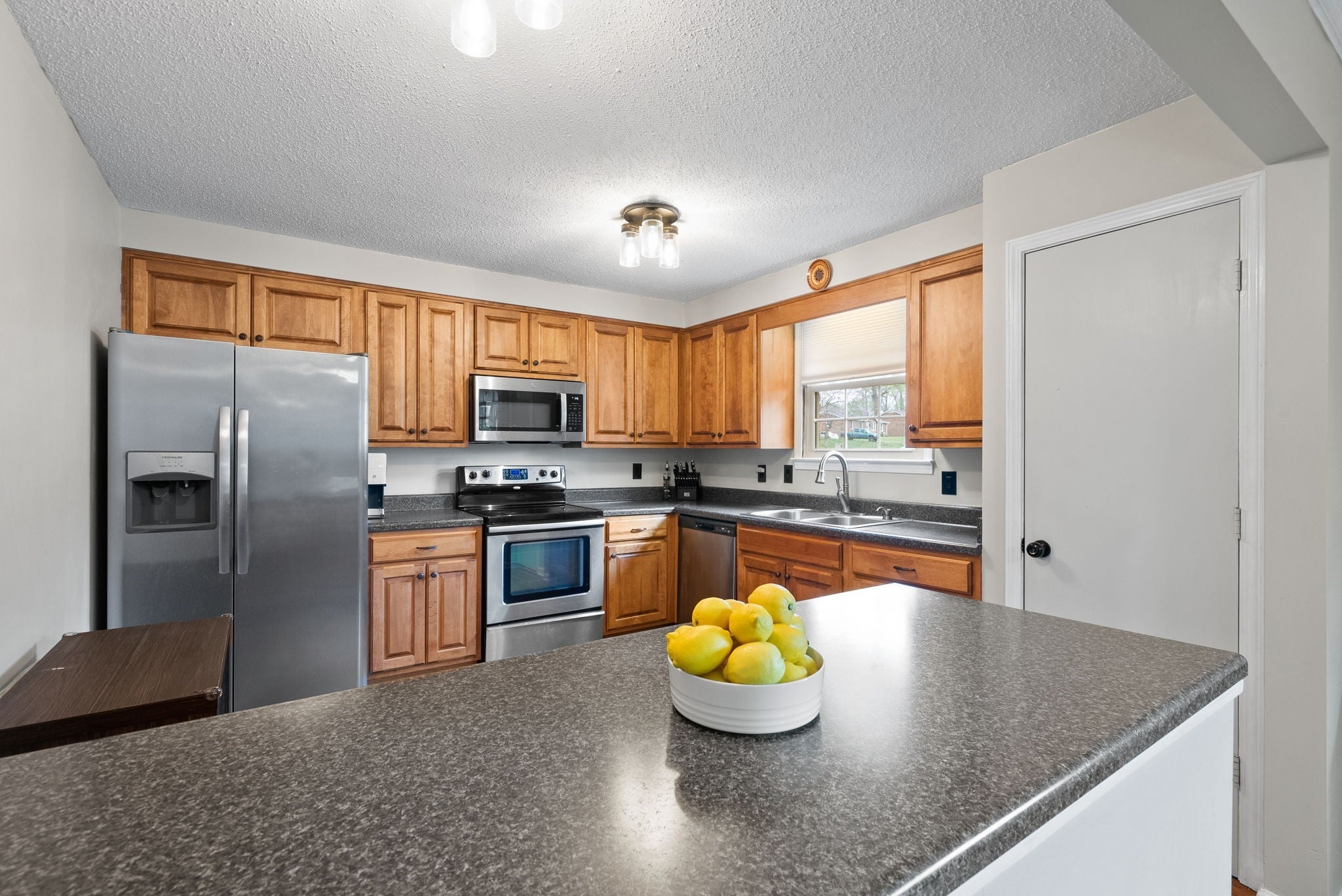 - Electric Oven, Range, Dishwasher, Disposal, Microwave, Refrigerator, Stainless Steel Appliance(s)