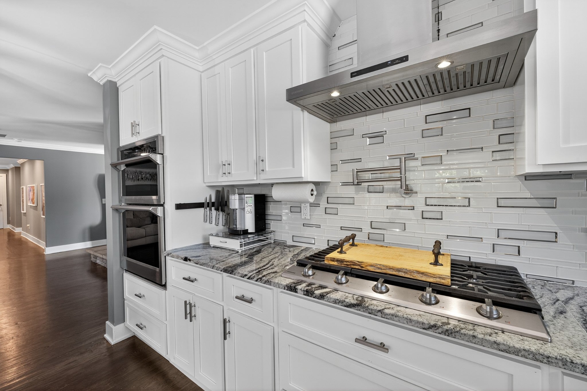 - Double Oven, Gas Range, Dishwasher, Disposal, Microwave, Refrigerator, Stainless Steel Appliance(s)