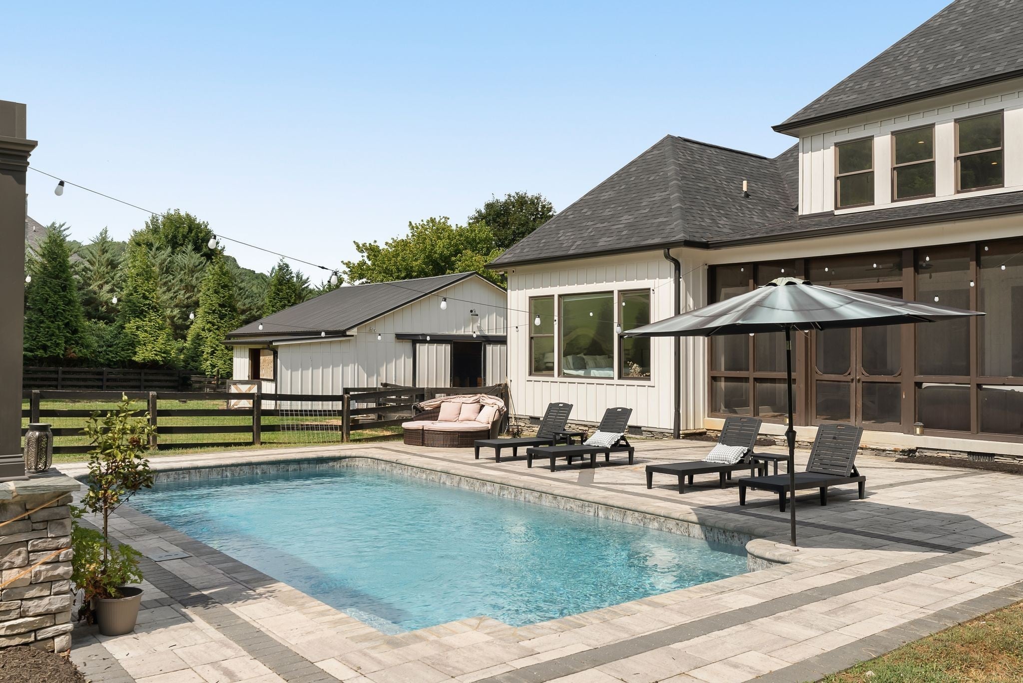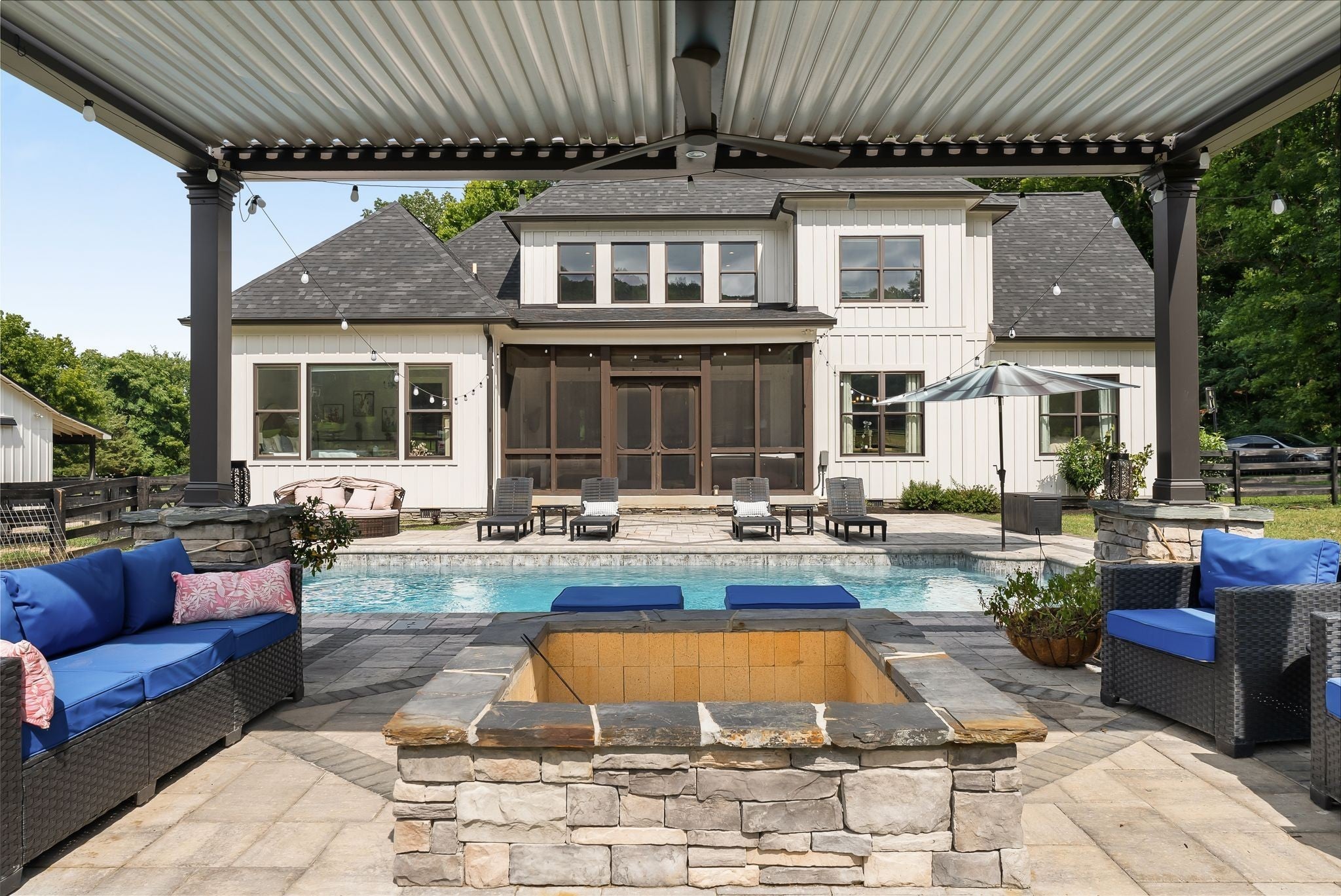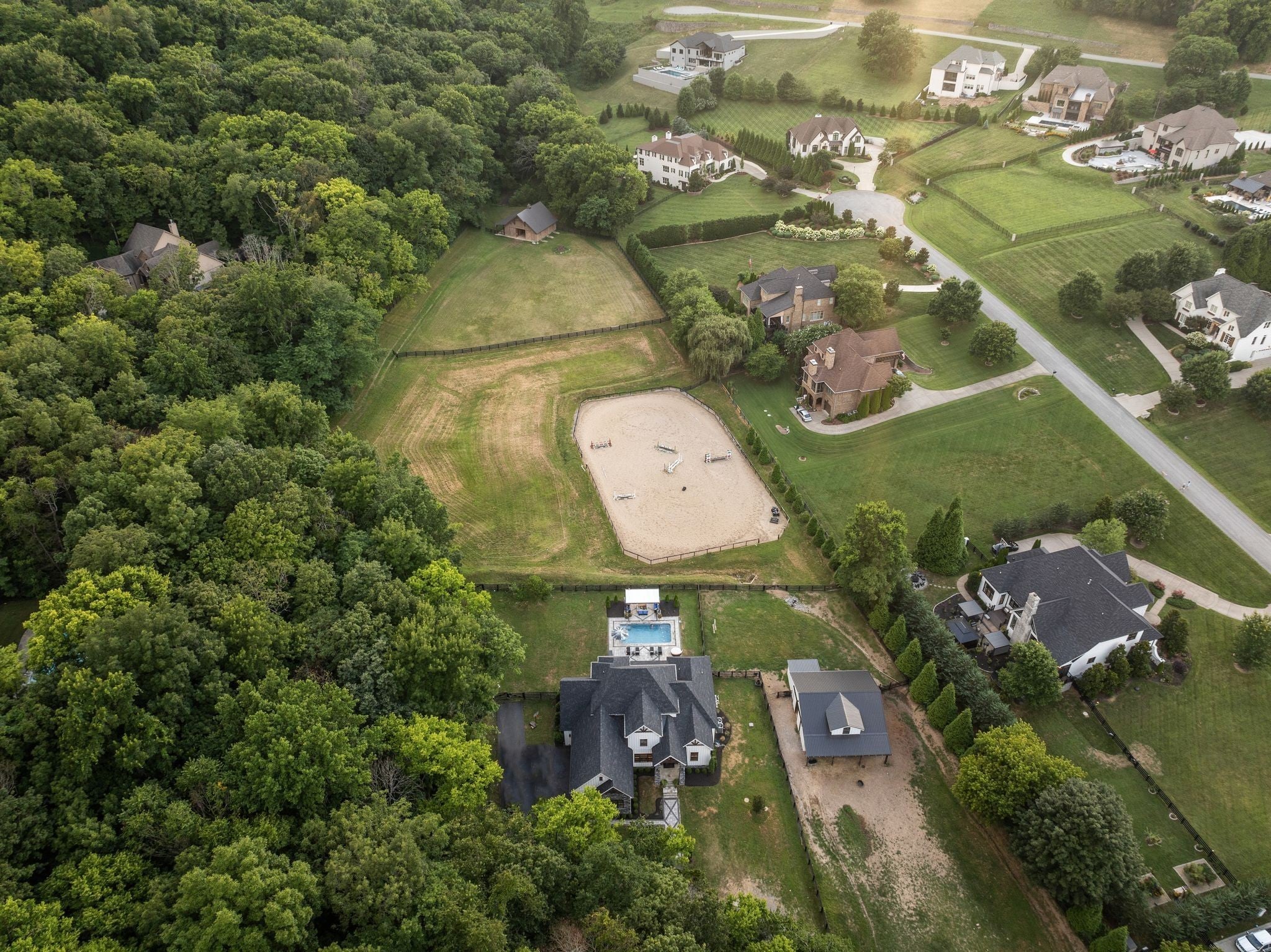 Welcome to your dream Franklin mini-farm retreat! Nestled on 5 picturesque acres, this magnificent property offers the perfect blend of luxury and functionality for horse lovers and families alike. This custom 5-bedroom, 4.5 bath home offers a wonderfully thought-out floor plan, views to die for, and attention to detail throughout. The spacious main floor is perfect for entertaining, featuring a spacious gourmet kitchen, elegant living areas, and abundant natural light. Two main-floor primary suites offer multi-generational living options. Storage and closet space galore. Each additional bedroom offers ample space and comfort, making this home ideal for family living or hosting guests. Equestrian enthusiasts will appreciate the custom four-stall barn with 3 12x12 stalls and one oversized 12x14 stall, dedicated tack room, hay loft, and hot/cold wash rack. Each stall is spacious and well-ventilated, with direct access to pastures. The property also features a professionally built riding arena by renowned local expert Brian Topping, ensuring you have the perfect space for training and enjoyment. The beautiful heated saltwater pool invites you to unwind, or even spectate equestrian activities from poolside. There are endless opportunities for outdoor activities, whether you're enjoying a morning ride, hosting a barbecue, or simply taking in the breathtaking views, this property is a true sanctuary in every sense. Sunsets over the hills from the backyard are pure magic. Ideally situated just minutes from I840, Berry Farms, & downtown Franklin, this property combines rural charm with convenient access to local amenities and top-rated schools. Experience the vibrant community and rich history of Franklin while enjoying the tranquility of your own slice of heaven. Don’t miss this rare opportunity to own a stunning equestrian property that perfectly balances luxury living with equestrian excellence. Schedule your private tour today! *rate buy-down available!*