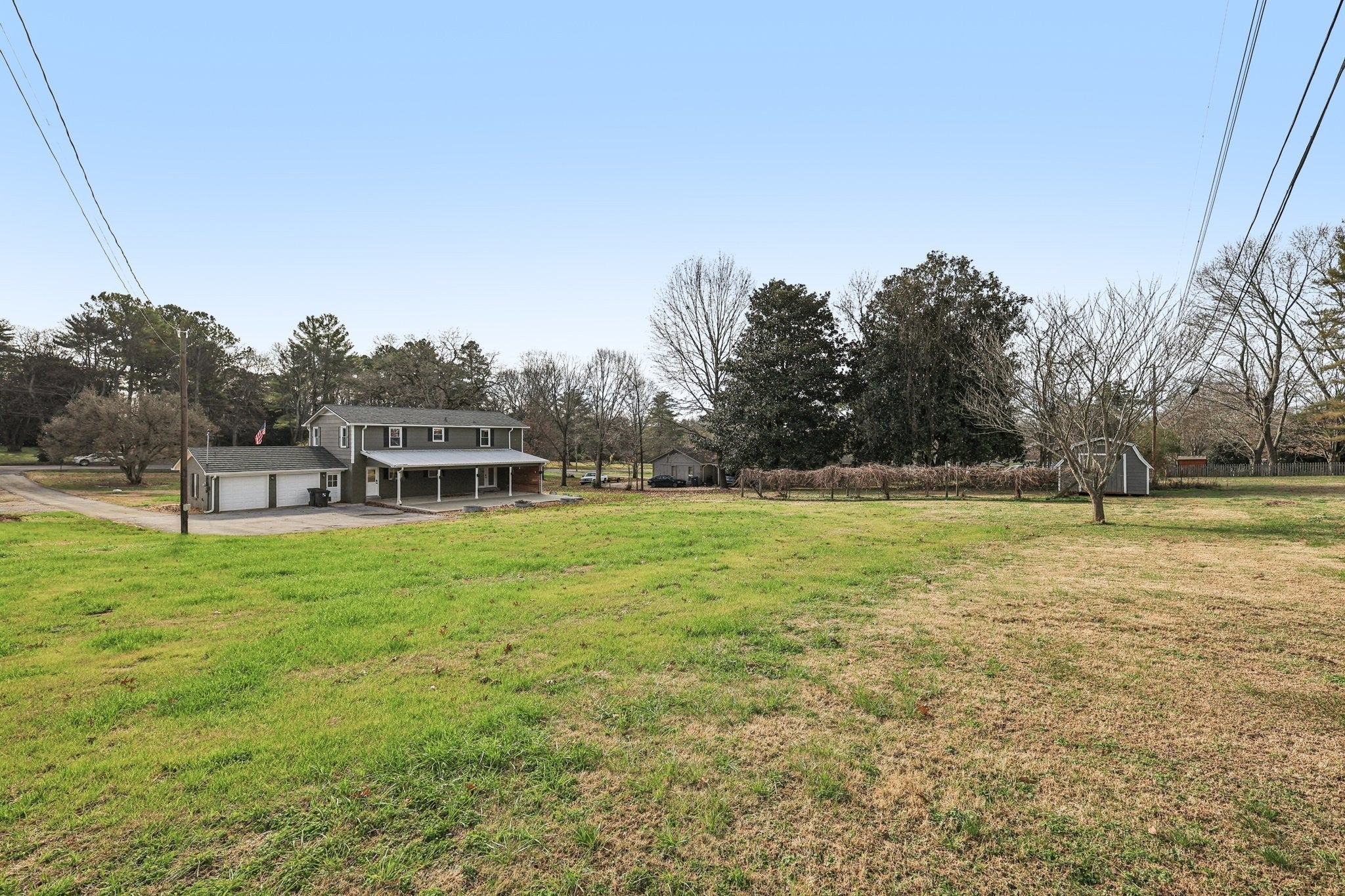 Welcome to this updated two story home, perfectly situated on over an acre with beautiful landscaping and incredible curb appeal. A charming front porch invites you to step inside. Set far back from the road for ultimate privacy. Inside, the 2,200 sq. ft. home is both welcoming and functional. The first floor's open concept layout provides versatile living spaces, allowing for either a spacious great room or a more formal living and dining area. The updated kitchen is a chef's delight, featuring granite counters, stainless steel appliances, and shaker cabinets. A large island with seating connects seamlessly to a spacious room perfect for family dining or flexible living. A convenient half bath and laundry room complete the main level. Upstairs, the oversized primary bedroom is a true retreat, complete with a built-in office space, a huge walk-in closet, and a private ensuite with a tile shower. Two additional spacious bedrooms share a well-appointed bathroom with a tub/shower combo. Outdoor living is a breeze thanks to the huge covered patio with a beautiful wood plank ceiling and dual ceiling fans, along with an extended concrete patio and a large level greenspace that goes on and on. An extended driveway and parking area is available for your vehicles and other equipment. This home also features a metal roof with a 50-year limited warranty, and a grey shed is included for extra storage. Schedule a showing to see it for yourself in person!