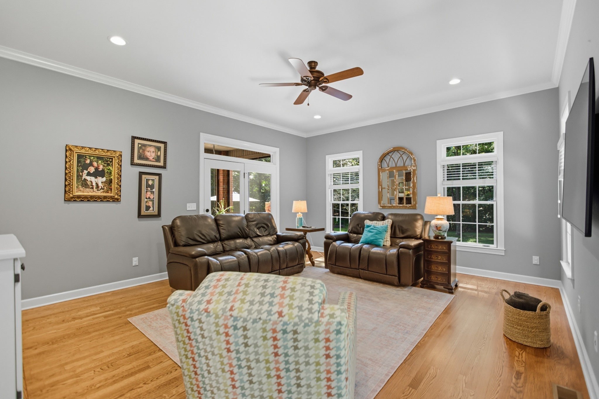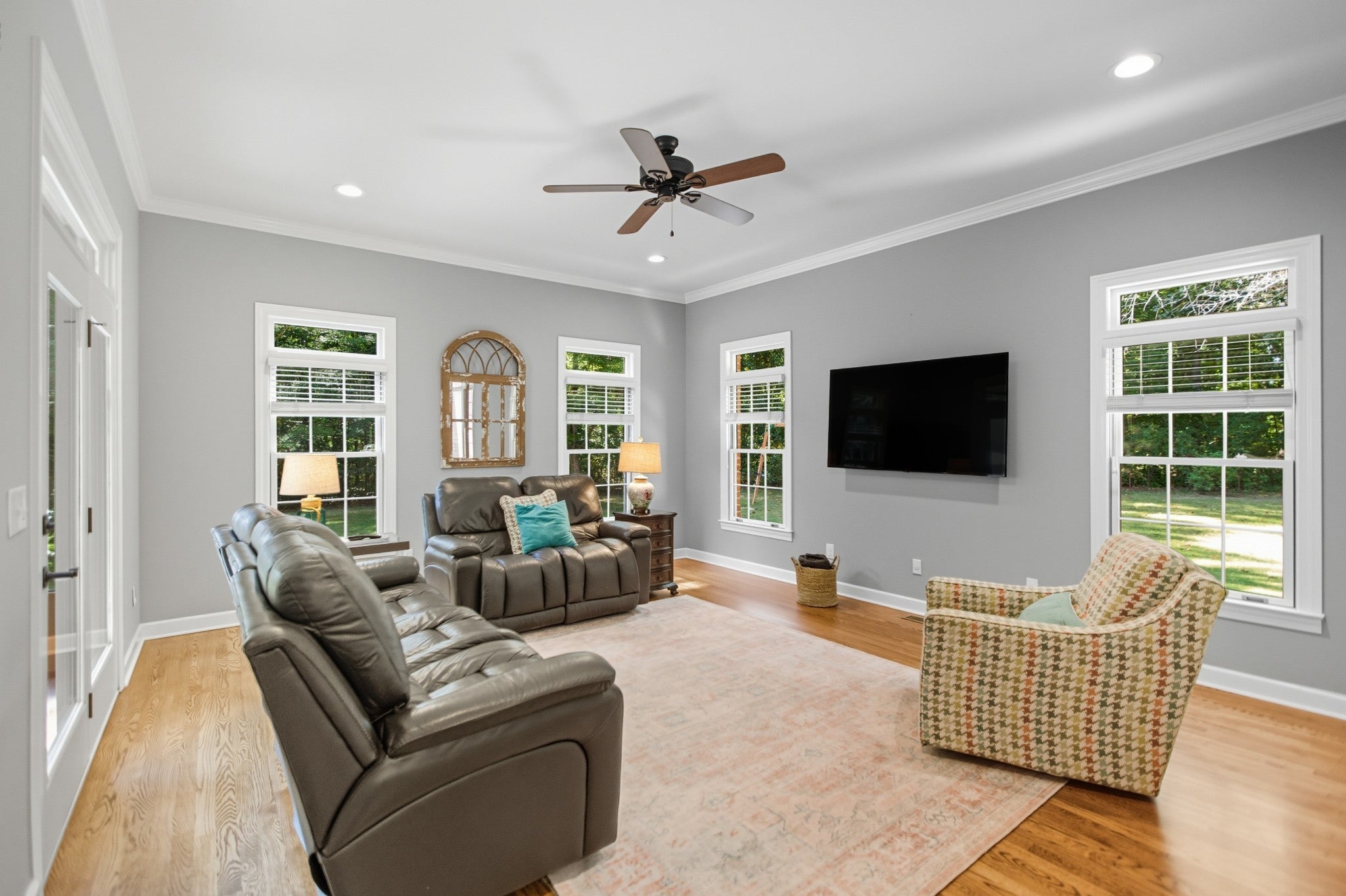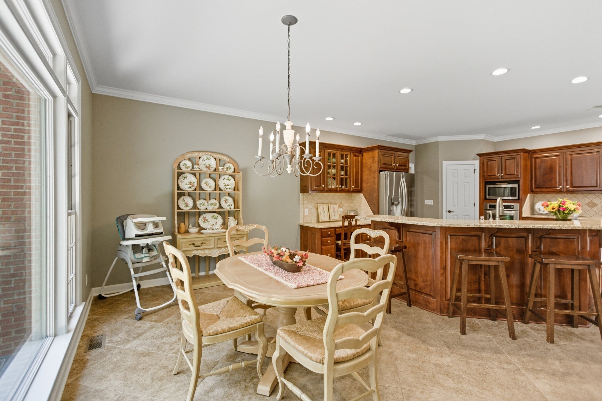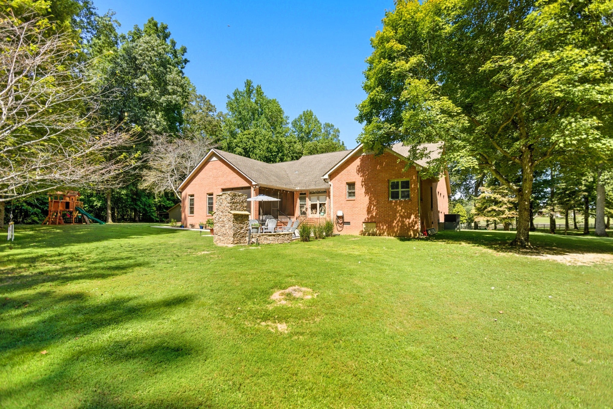 Experience refined living with this exceptional 4-bedroom, 2.5-bathroom custom estate, perfectly situated at the end of a private drive on approximately 5 acres of peaceful countryside. Offering a rare combination of sophistication, seclusion, and functionality, this all-brick residence is complemented by a 2-car attached garage and an additional 1-car detached garage/workshop, providing abundant space for vehicles, storage, or hobbies. Inside, timeless craftsmanship is on full display with intricate trim work, wainscoting, built-ins, and beautifully refinished hardwood floors. The gourmet kitchen is both elegant and functional, showcasing custom cabinetry, a sunlit breakfast nook, and expansive prep space designed for seamless entertaining. The luxurious primary suite is a true retreat, featuring tray ceilings, a spa-inspired custom tile shower, indulgent jetted tub, and dual vanities with exceptional storage and counter space. The thoughtfully designed laundry room continues the home’s emphasis on convenience, with extensive cabinetry and countertops for organization. Step outside to enjoy your private oasis—whether relaxing in the screened-in porch, gathering on the patios under glowing string lights, or savoring evenings by the striking wood-burning stone fireplace. Every detail has been curated to enhance both everyday living and effortless entertaining. This remarkable property offers unparalleled privacy, timeless style, and a lifestyle of luxury.