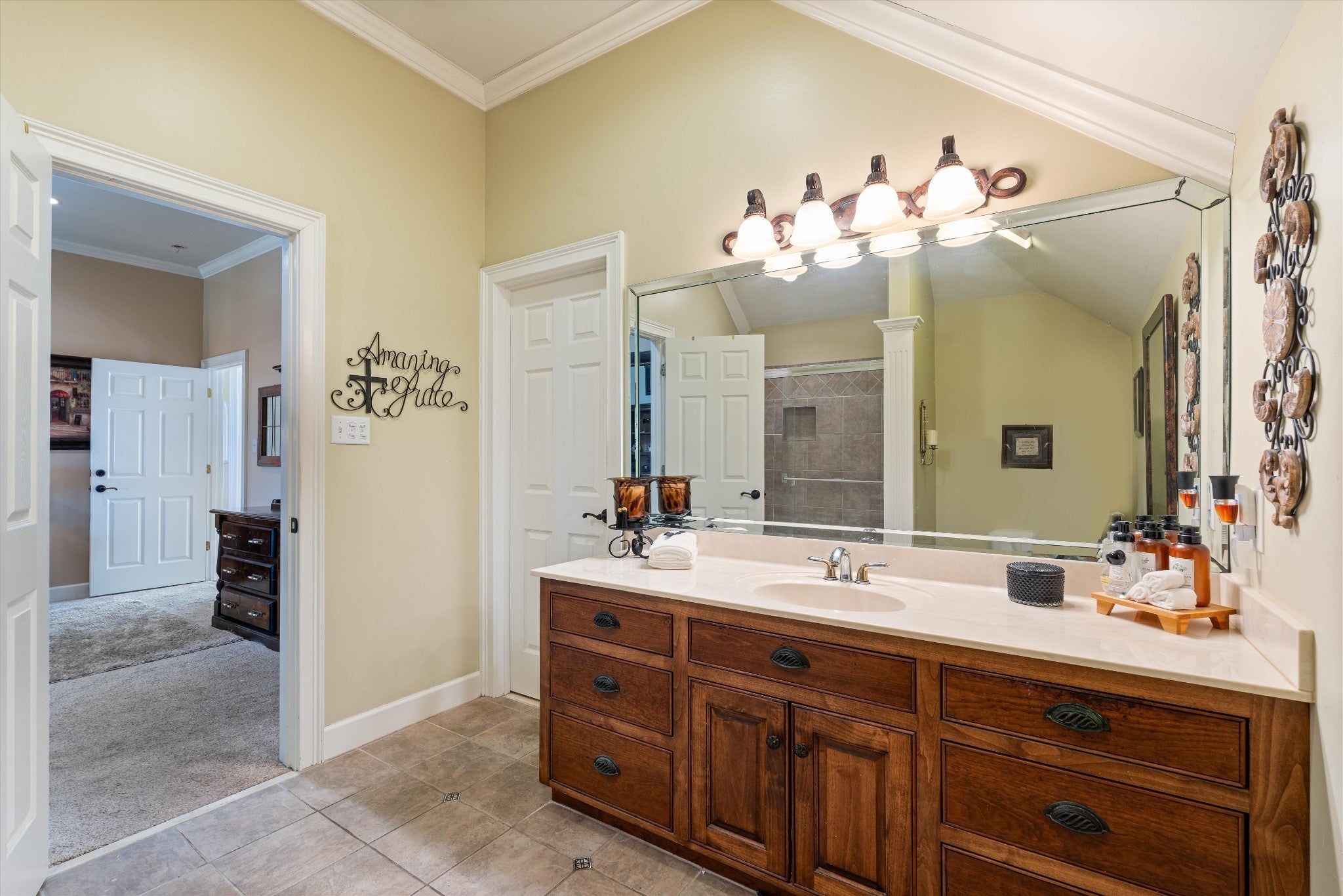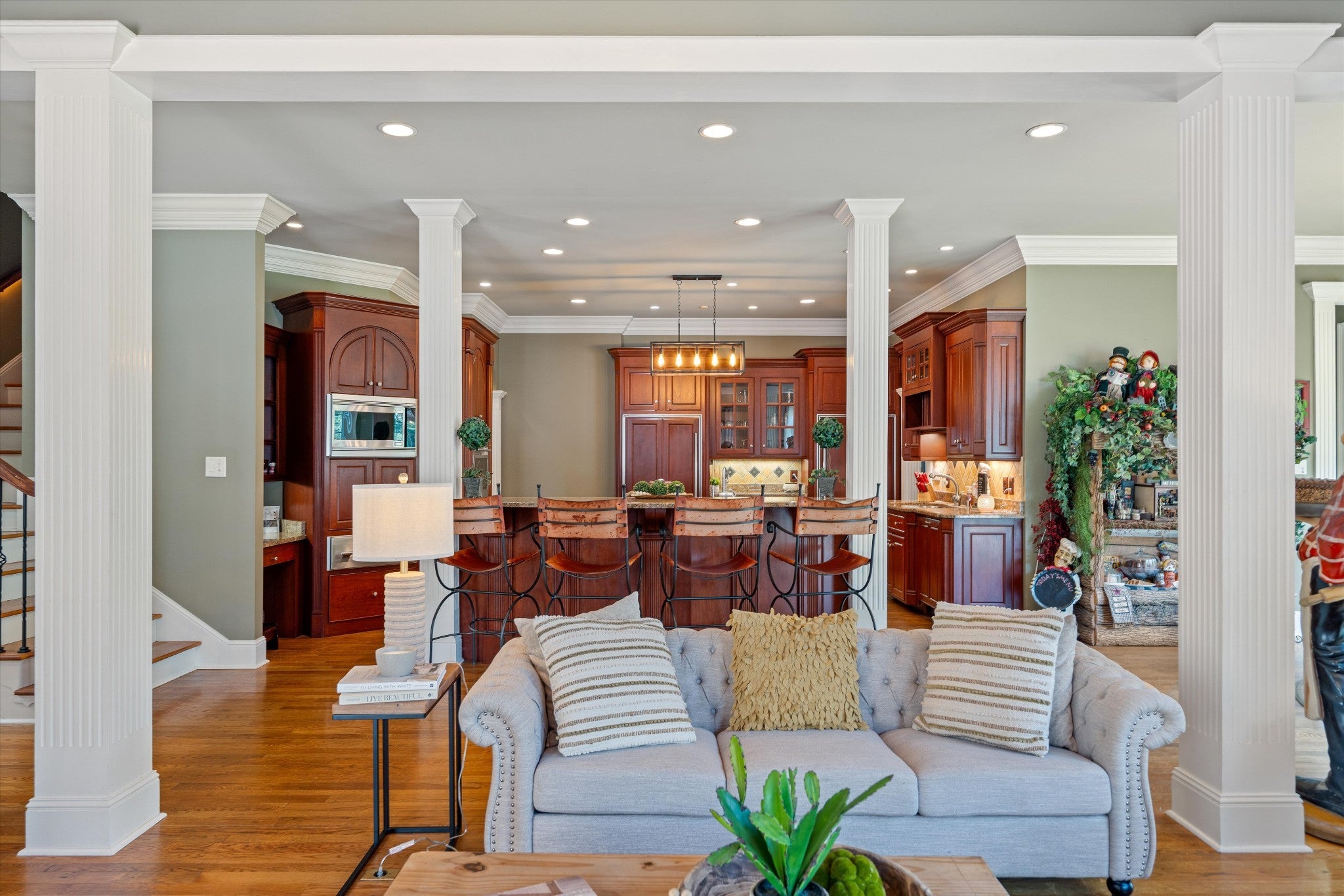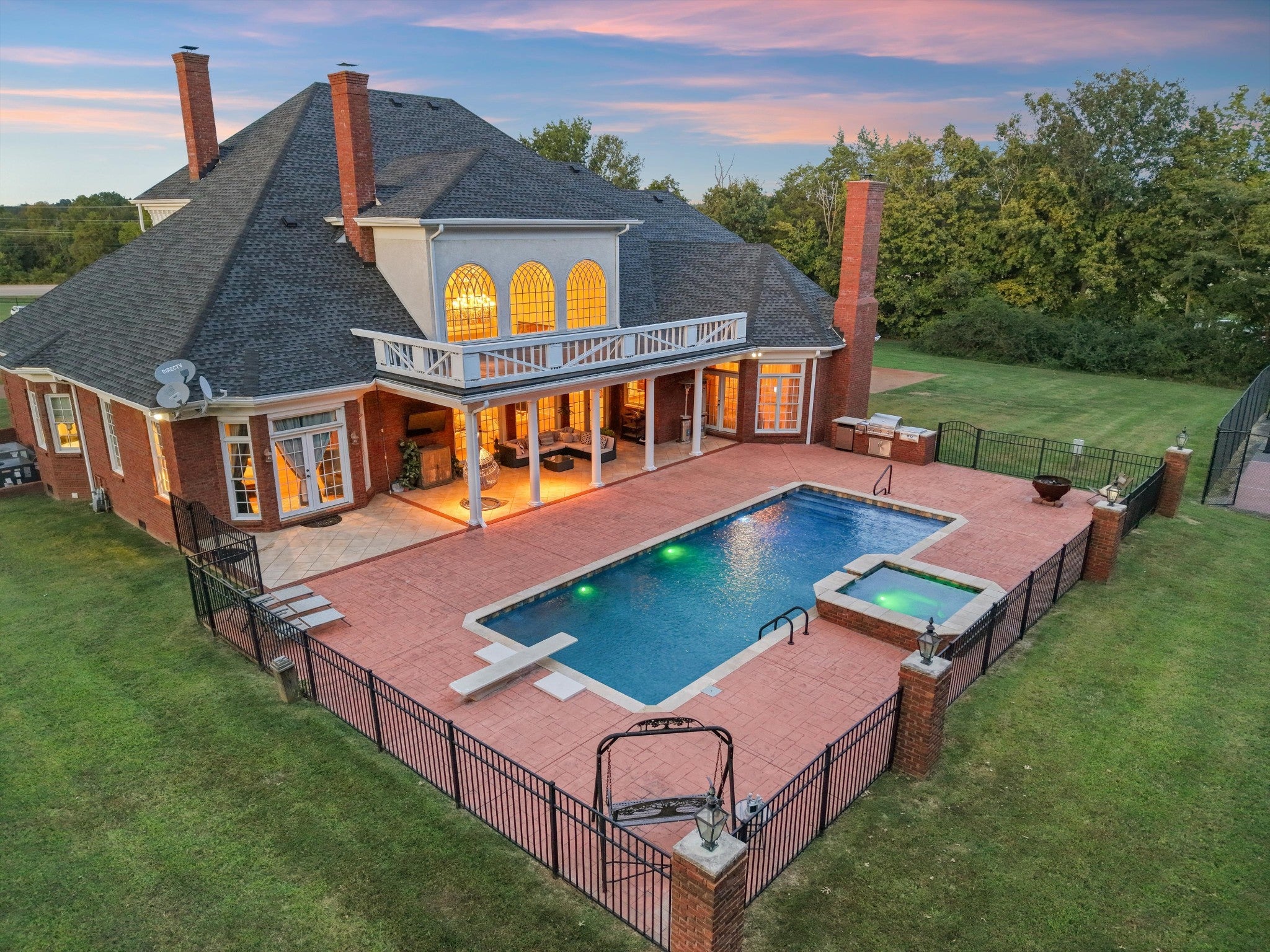 Welcome to Your Private Resort Style Estate on Nearly 5 Acres! This exceptional property offers the perfect blend of luxury, and convenience—just under a minute from Walmart, restaurants, and shopping, and only 7 minutes to I-65. Ideally situated 50 minutes to Nashville and 52 minutes to Huntsville, this estate is both a private retreat and a commuter’s dream. Step inside this nearly 6,000 sq ft masterpiece, where no detail has been overlooked. From the grand 25-foot ceilings and intricate crown molding throughout, to the elegant arches and stately columns, every corner of this home exudes sophistication. The heart of the home is the chef’s kitchen, featuring top-of-the-line Wolf appliances, custom cabinetry, and generous storage—perfect for entertaining or crafting everyday meals. With 4 spacious bedrooms (plus an optional 5th), there’s room for the whole family—or for hosting guests in comfort and style. Outdoor living is redefined here. Host unforgettable gatherings with a fully equipped outdoor kitchen, take a dip in the saltwater pool, or enjoy a game on your private tennis and basketball court. Surrounded by lush greenery, you’ll enjoy seclusion without sacrificing accessibility. Whether you're entertaining on a grand scale or enjoying quiet evenings at home, this estate offers a lifestyle of unparalleled luxury and serenity.