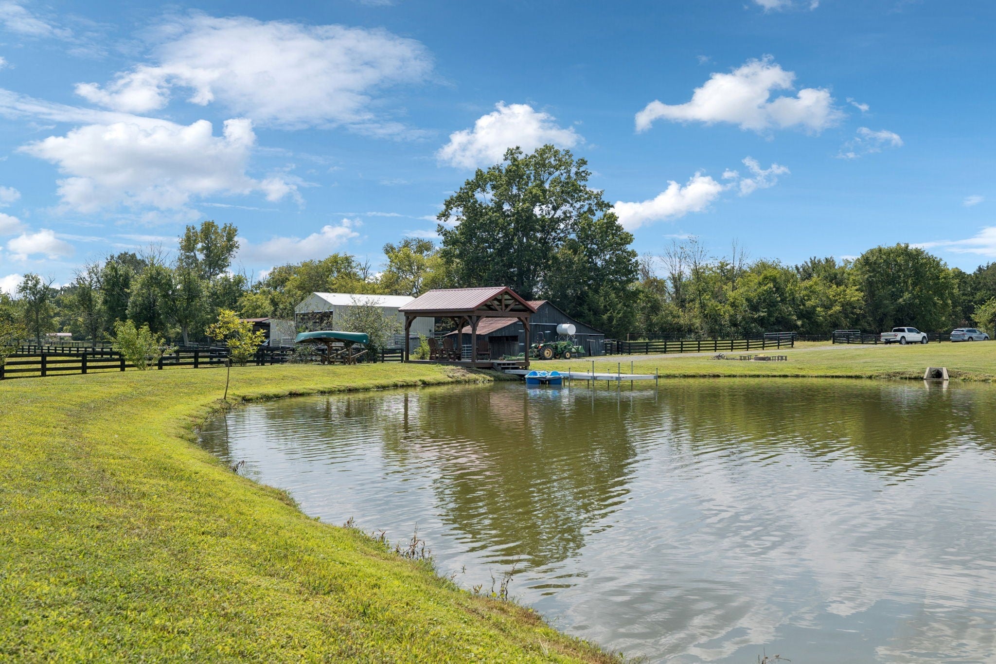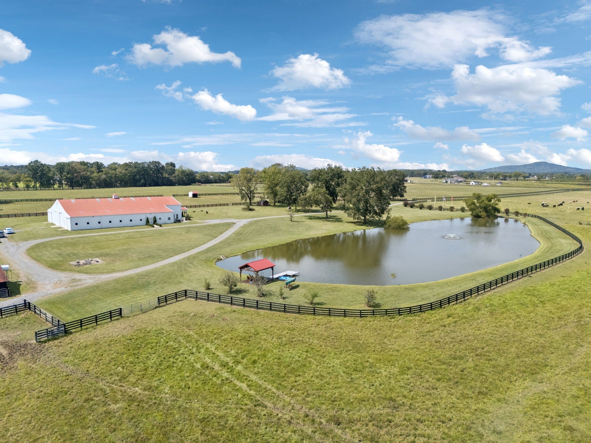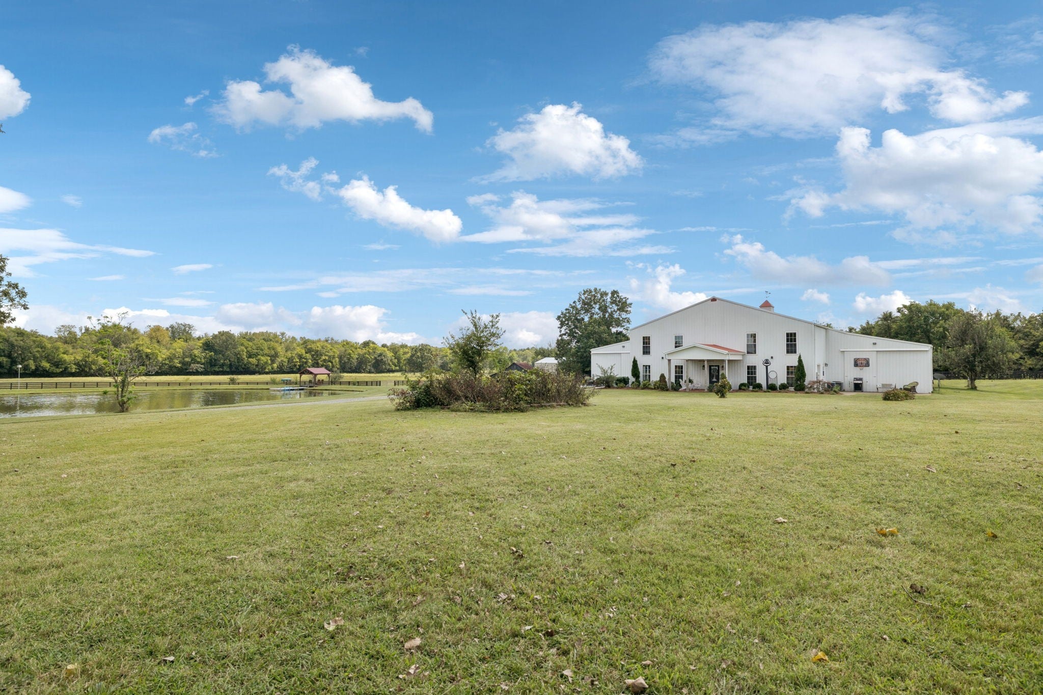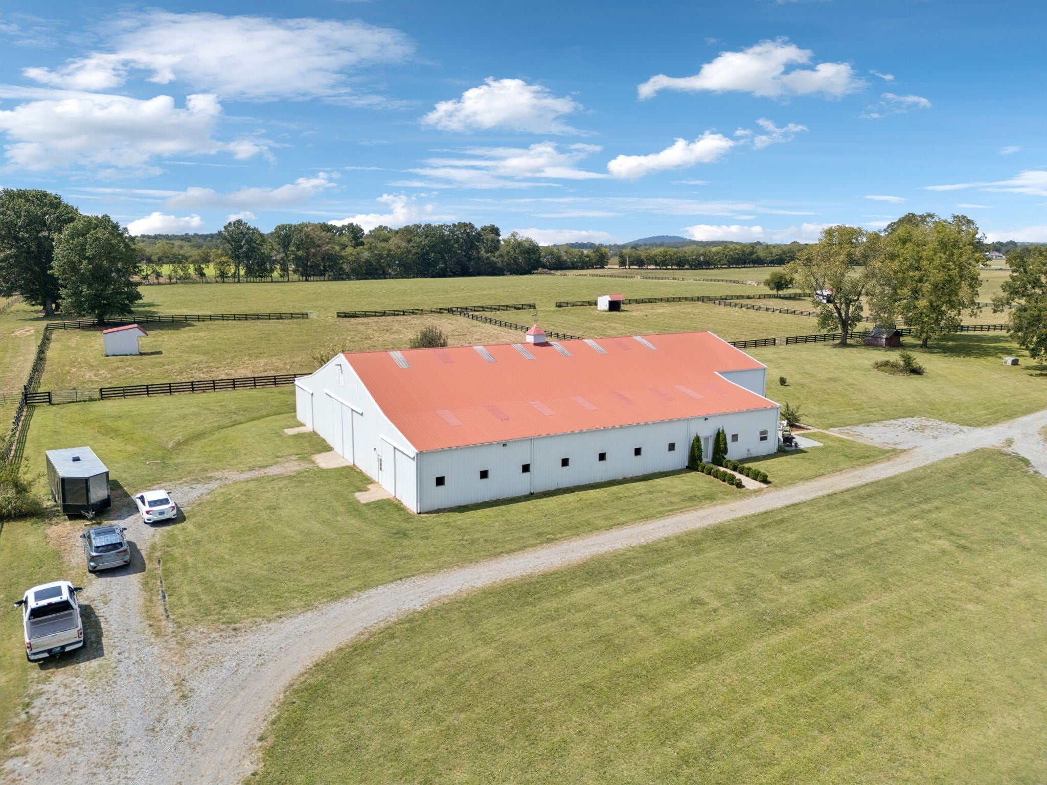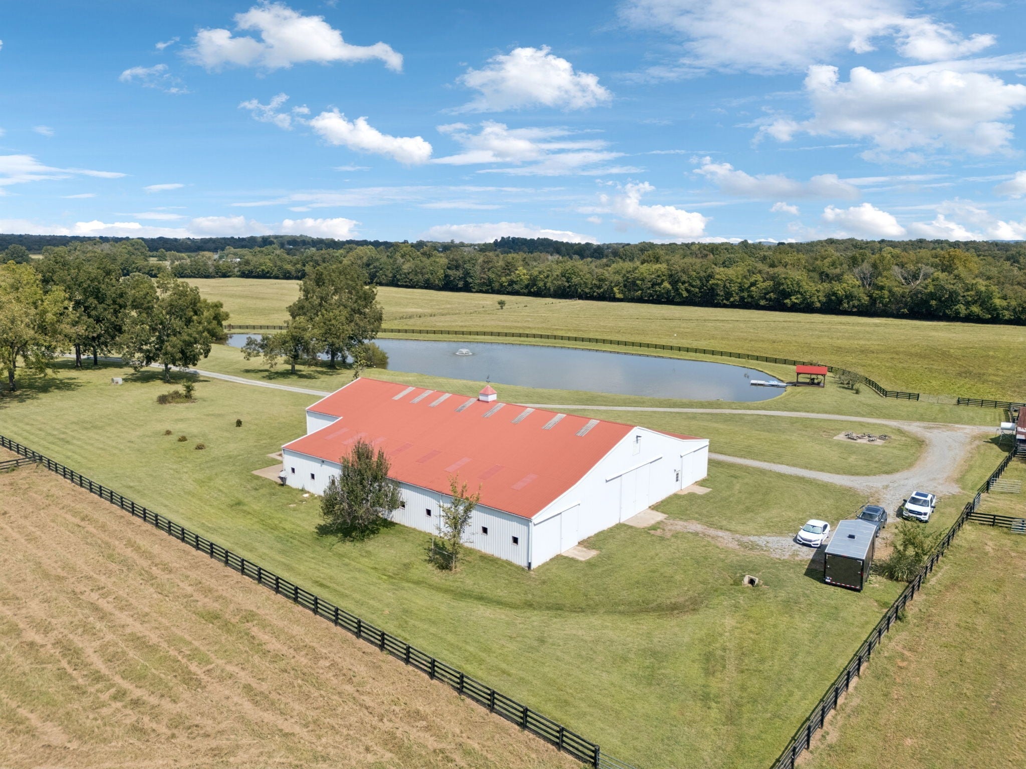 107 gorgeous acres on Dolly Branch Creek set in the rolling hills of Middle Tennessee. Fenced and cross fenced, 3 paddocks w/shelters, auto waterers supplied by onsite well plus 20' gates. Hay(40x40) & equip(40x24) barns are an added bonus. Three ponds and a large one and a half acre spring fed, stocked lake complete with a Pavilion, a dock, and toys for enjoying the water. Relax by the fire pit or practice your marksman skills at the covered shooting range. The main structure hosts a 12,000 SF Horse facility with stalls and indoor arena plus wash room, tack room, and utility room(w/half bath). There is also over 2,000 SF living quarters which has been completely updated with modern finishes. Downstairs enjoy the roomy family room or the gorgeous kitchen and dining area. Upstairs you can find rest and relaxation in the generous bedrooms and updated bathrooms.Water supply for the home comes from Bedford County Water. Outside the front door you can spend time looking out at the wide open spaces or beautiful lake. This property is perfect for farming, for a weekend retreat or for building a dreamy family compound. It is only 25 minutes from Murfressboro, 30 minutes to Franklin and less than an hour to Nashville.