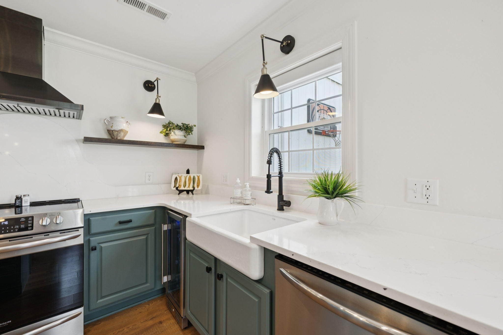 - Built-In Electric Range, Dishwasher, Disposal, Dryer, Microwave, Refrigerator, Washer