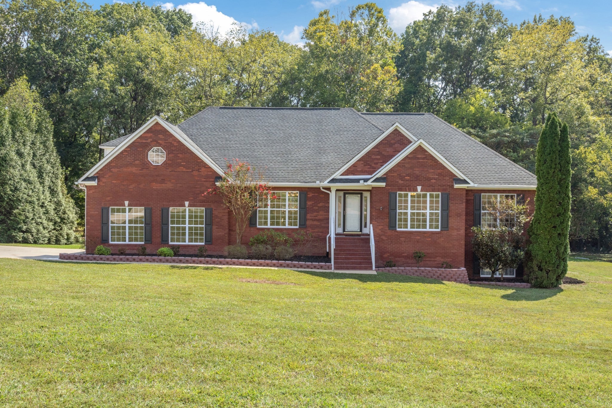 Seller offering $5,000 toward Buyer's Closing Expenses w/ acceptable offer + $6,000 Lender Credit w/preferred lender! NO HOA! NEW ROOF! 1,854 sf UNFINISHED BASEMENT! NEW STAINLESS STEEL APPLIANCES! Stunning,move-in ready 4-side brick ranch w/ a split-bedroom plan for privacy combines timeless design w/ thoughtful updates, all nestled on a spacious 1.22-ACRE lot in a boutique neighborhood known for its large lots & quiet living. Step inside to find NEW CARPET, freshly SANDED & STAINED HARDWOODS, & FRESH PAINT thoughout, incl. Ceilings & Garage. A stylish & functional kitchen, features NEW QUARTZ countertops, SINK & FAUCET, & a center island, perfect for daily living & entertaining. Soaring ceilings in the dine-in Kitchen & Great Room enhance the home’s bright & airy atmosphere. This thoughtfully designed home also includes a DEDICATED OFFICE w/ hdwds, double doors & closets, separate Dining Room w/ hdwds & wainscoting, 3 bedrooms & 2 baths all on the main level, plus a bonus room w/ mini-split system above the garage for added flexibility. Owner’s suite features double tray ceiling, vaulted en-suite bath w/ jetted tub, separate shower, dual vanities, & walk-in closet. 1,854 sq ft HEATED & COOLED WALK-OUT BASEMENT is unfinished but fully usable, already plumbed for a bathroom, & includes an additional garage (#3)-large enough for a boat or workshop. Just add drywall & finishes to complete this expansive lower level or use for storage & a storm shelter! Outside, enjoy a NEW DECK(2024), fresh landscaping, new rock & pavers at the basement entry, & a freshly cleared serene, shady treeline that backs to a farm for added privacy. Add'l Features & Upgrades Include: Geothermal heating & cooling (2018), NEW GARAGE DOORS & Openers on main level, Cat 6 wiring & Upgraded 6” gutters w/ underground drainage & gutter guards. Updated Security Syst. & Refrigerator Convey. Idyllic setting with room to breathe-just 5.8 miles from downtown Columbia & 5.2 miles to I-65. Survey below!