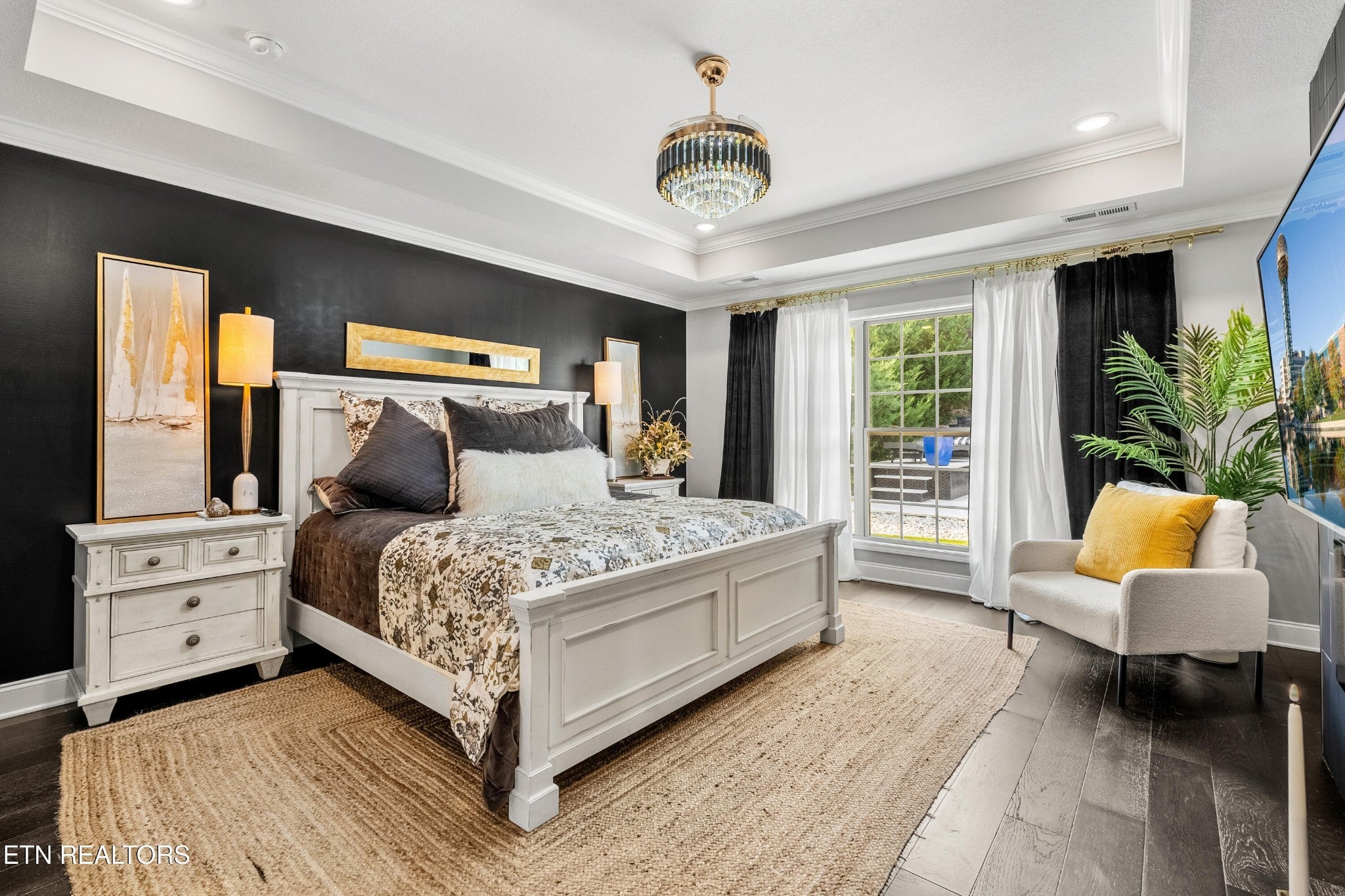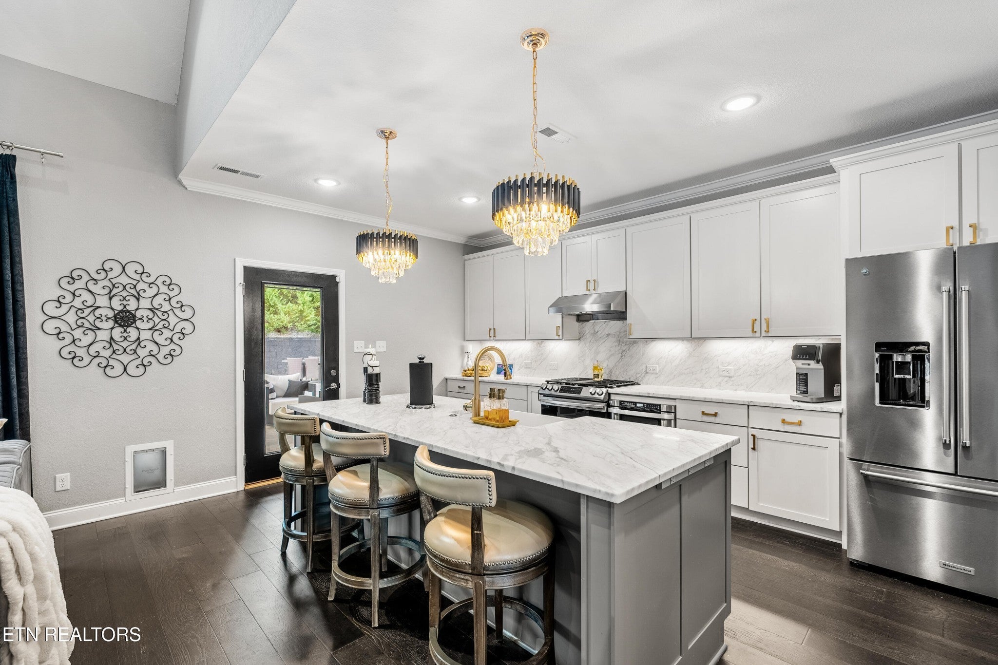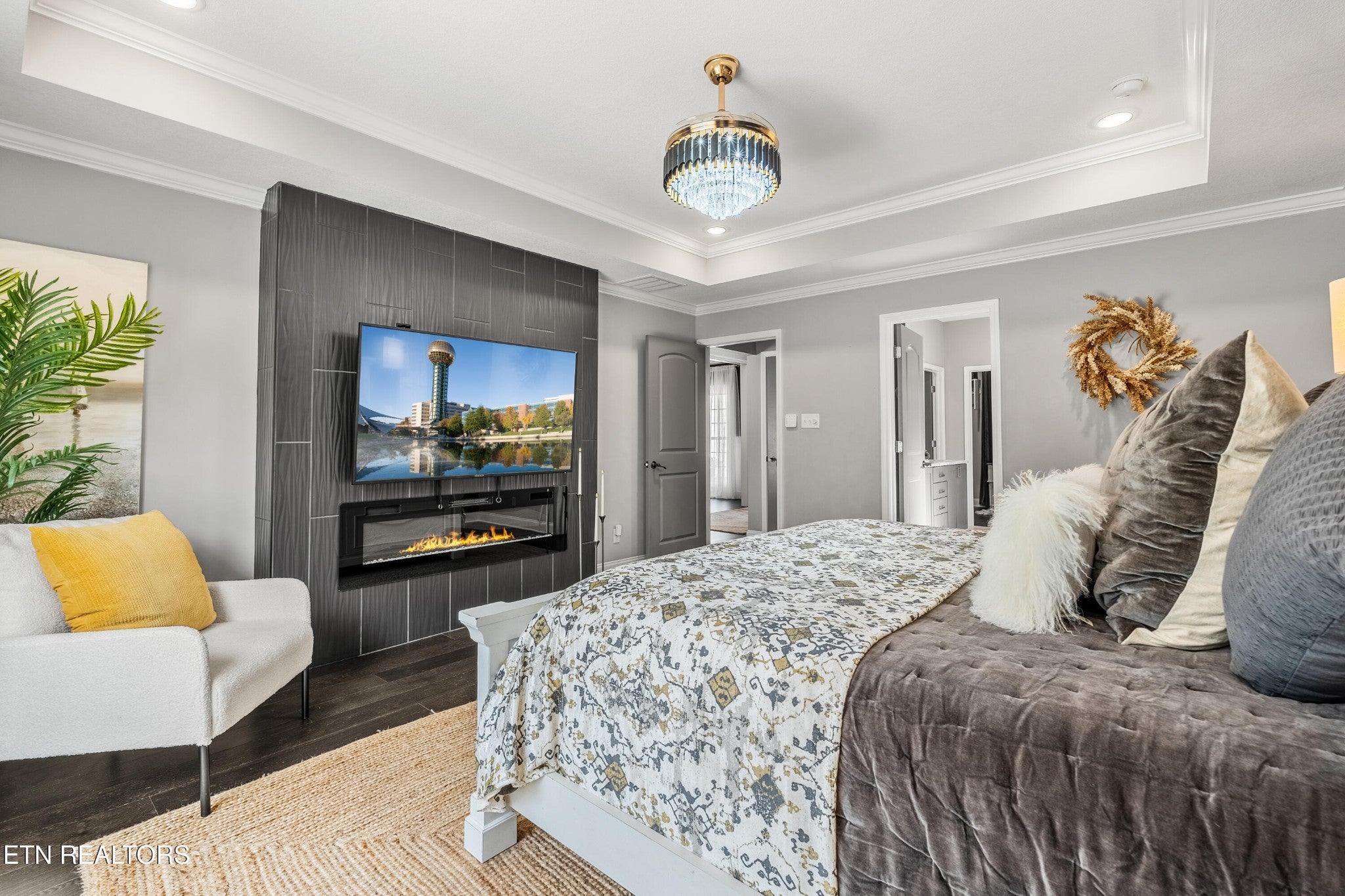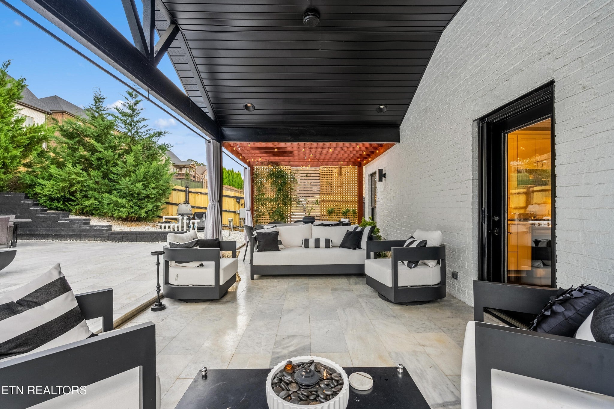 Back on Market! Buyers contingent sale fell through - no fault of seller. Modern, luxurious, and stunning, this home is perfectly situated in the highly sought after Massey Creek subdivision. Thoughtfully designed with upscale finishes and meticulous craftsmanship, this residence delivers an exceptional living experience from the inviting covered front porch to the private backyard retreat. Step inside to an open, light-filled floor plan that showcases refined details at every turn. A chef's kitchen is designed to impress, featuring gleaming marble countertops, 42-inch premium cabinetry, under-cabinet lighting, a spacious island, and high-end appliances. The formal dining room, graced with a sparkling chandelier, sets the stage for unforgettable dinners. The main level primary suite offers a serene escape with a built-in electric fireplace, spa-inspired bath with a glass-enclosed shower, soaking tub, dual vanities, and a custom walk-in closet. The living room combines warmth and sophistication with its marble-tiled gas fireplace and eye-catching custom accent wall. Nine-foot ceilings and designer lighting throughout elevate the home's contemporary style. A second main-level bedroom, currently used as an office, is adjacent to a full bath and thoughtfully placed laundry room with extra storage. The second floor features two additional bedrooms along with a beautifully appointed bath, complete with dual vanities, leathered granite countertops and a tiled tub/shower. Additionally, a spacious bonus room, currently set up as a lavish guest suite, could also serve as a playroom or media room. Outdoors, the professionally landscaped backyard is a true oasis, highlighted by a heated saltwater pool with an integrated spa and lighted fountains. Enhancing the sleek design, the marble pool coping complements a striking covered patio featuring a new privacy-enhancing pergola - perfect for entertaining or unwinding in style.