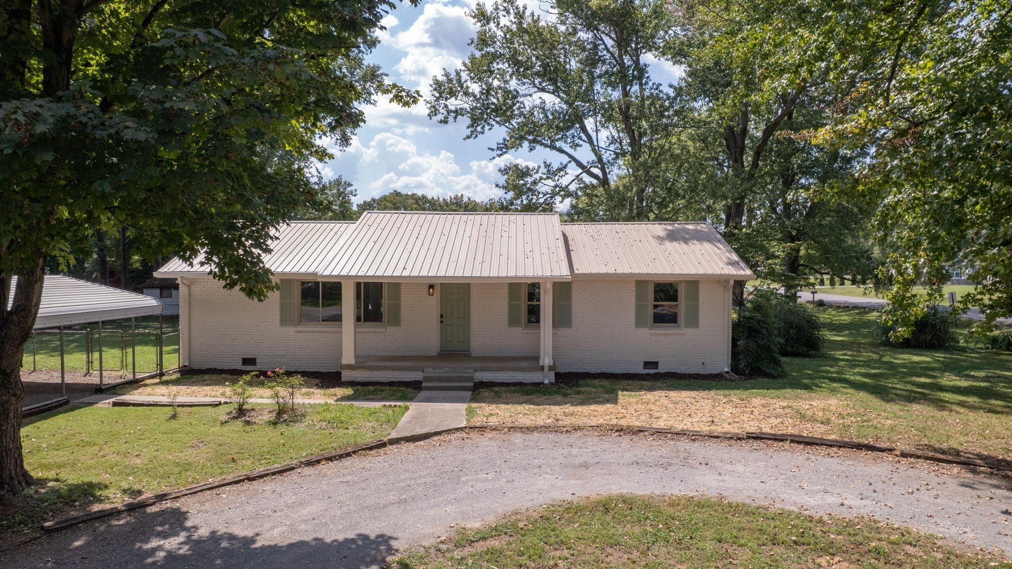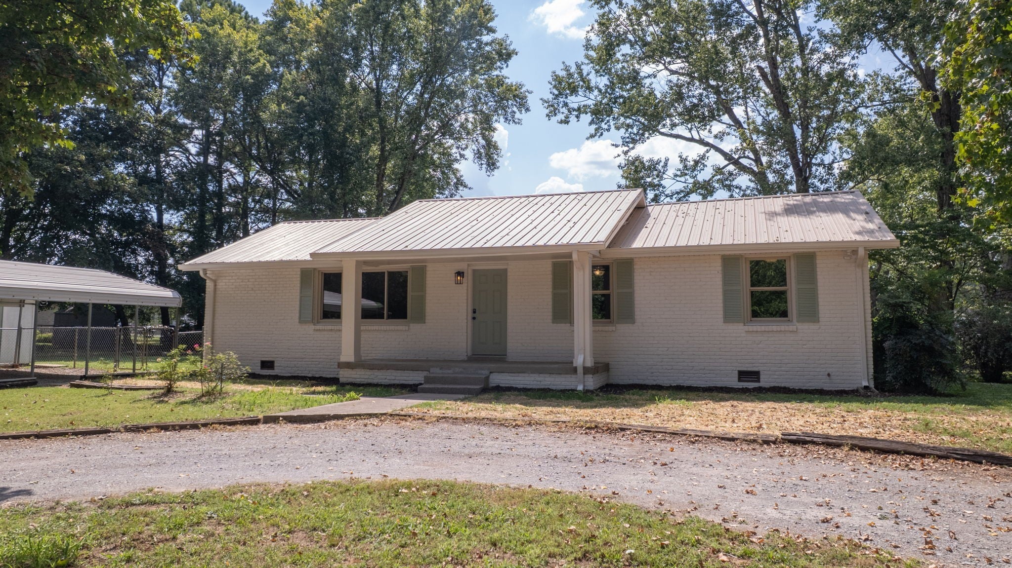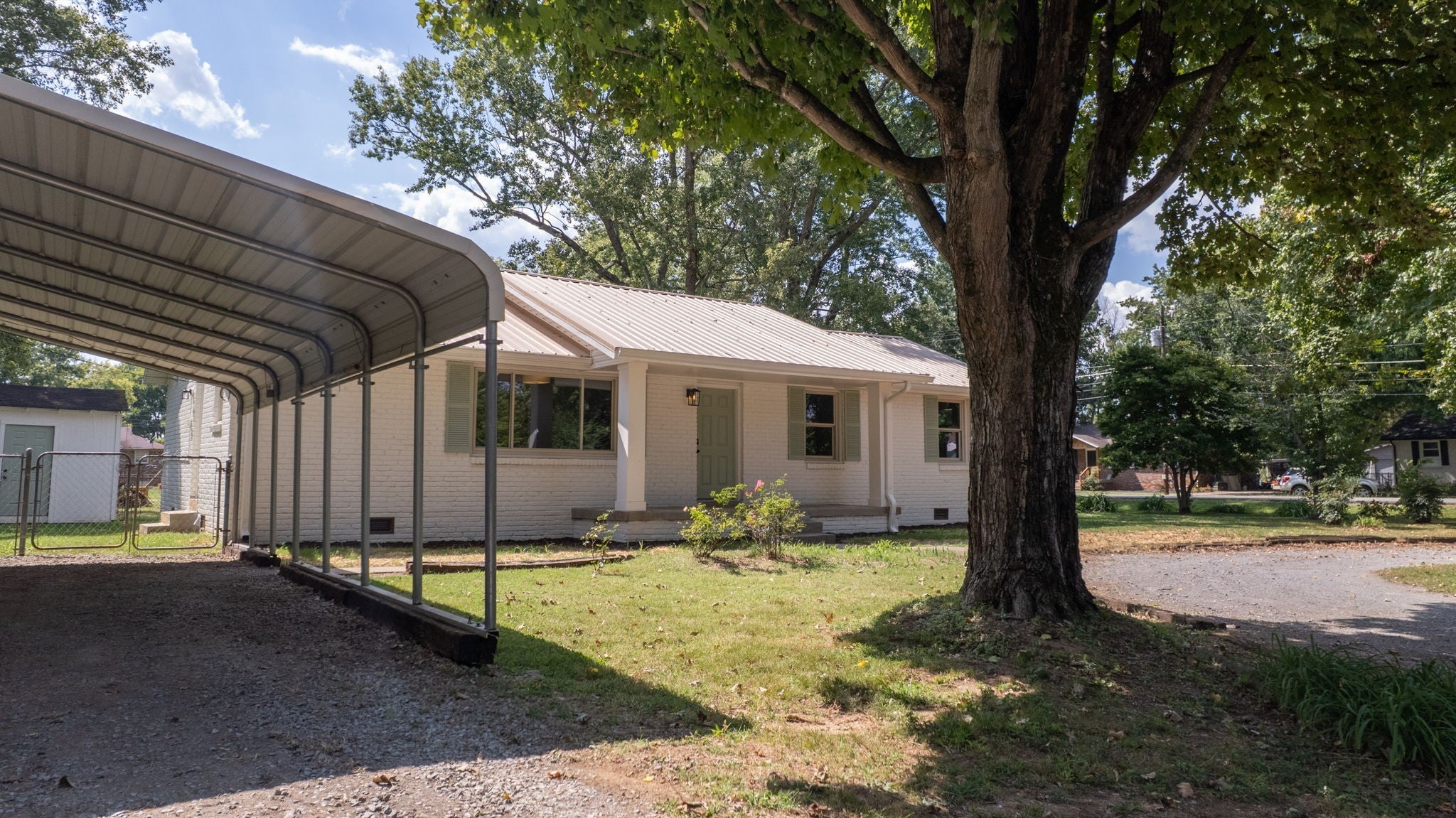 HUGE PRICE ADJUSTMENT! This charming This home has been thoughtfully updated to provide a modern, comfortable living experience without the luxury price tag. Some key features: NEW HVAC and ductwork, New Kitchen Cabinets with quartz countertops and beautiful backsplash, new Gas Stove, Dishwasher, Hood and microwave. Also new wood vinyl flooring and upscale lighting throughout. New hall bath tile plus new vanity and plumbing fixtures. New tubs/showers, fixtures, and toilets in both baths. Nice sized corner lot with side fence. TWO outbuildings for extra storage + Detached Carport - County Taxes only - NO CITY TAXES!