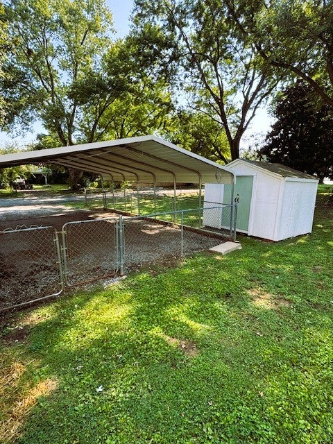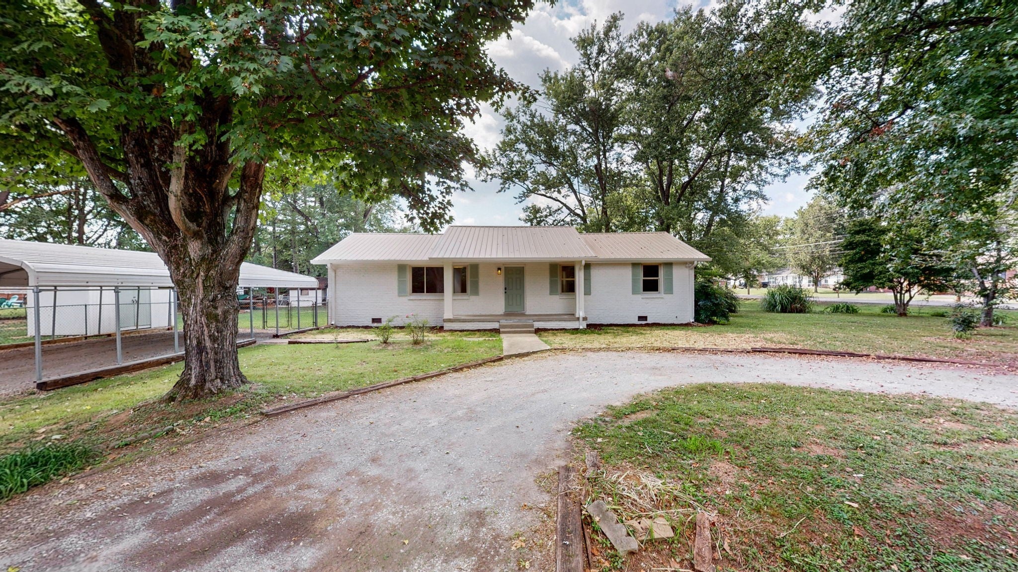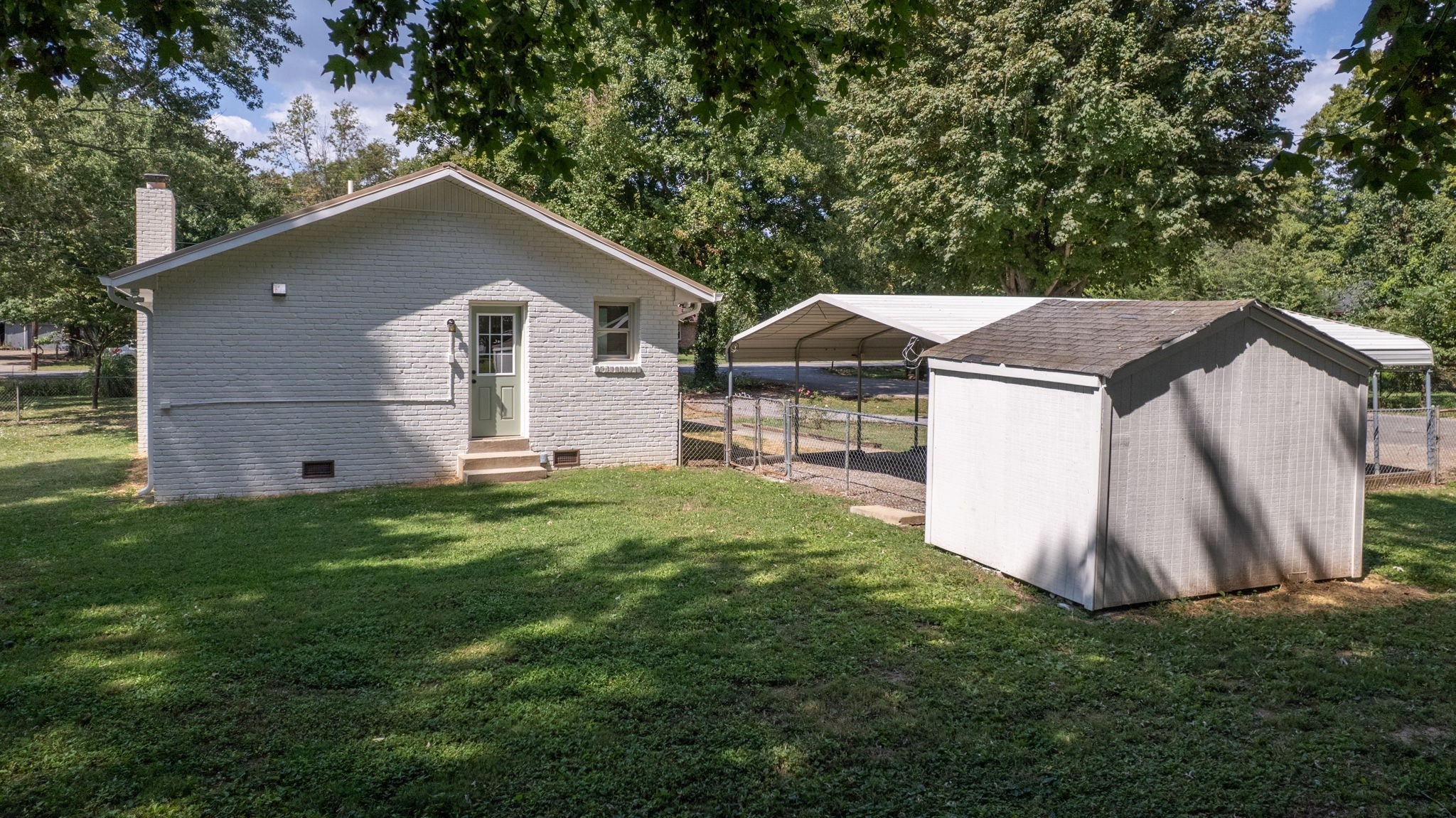 HUGE PRICE ADJUSTMENT! This charming This home has been thoughtfully updated to provide a modern, comfortable living experience without the luxury price tag. Some key features: NEW HVAC and ductwork, New Kitchen Cabinets with quartz countertops and beautiful backsplash, new Gas Stove, Dishwasher, Hood and microwave. Also new wood vinyl flooring and upscale lighting throughout. New hall bath tile plus new vanity and plumbing fixtures. New tubs/showers, fixtures, and toilets in both baths. Nice sized corner lot with side fence. TWO outbuildings for extra storage + Detached Carport - County Taxes only - NO CITY TAXES!