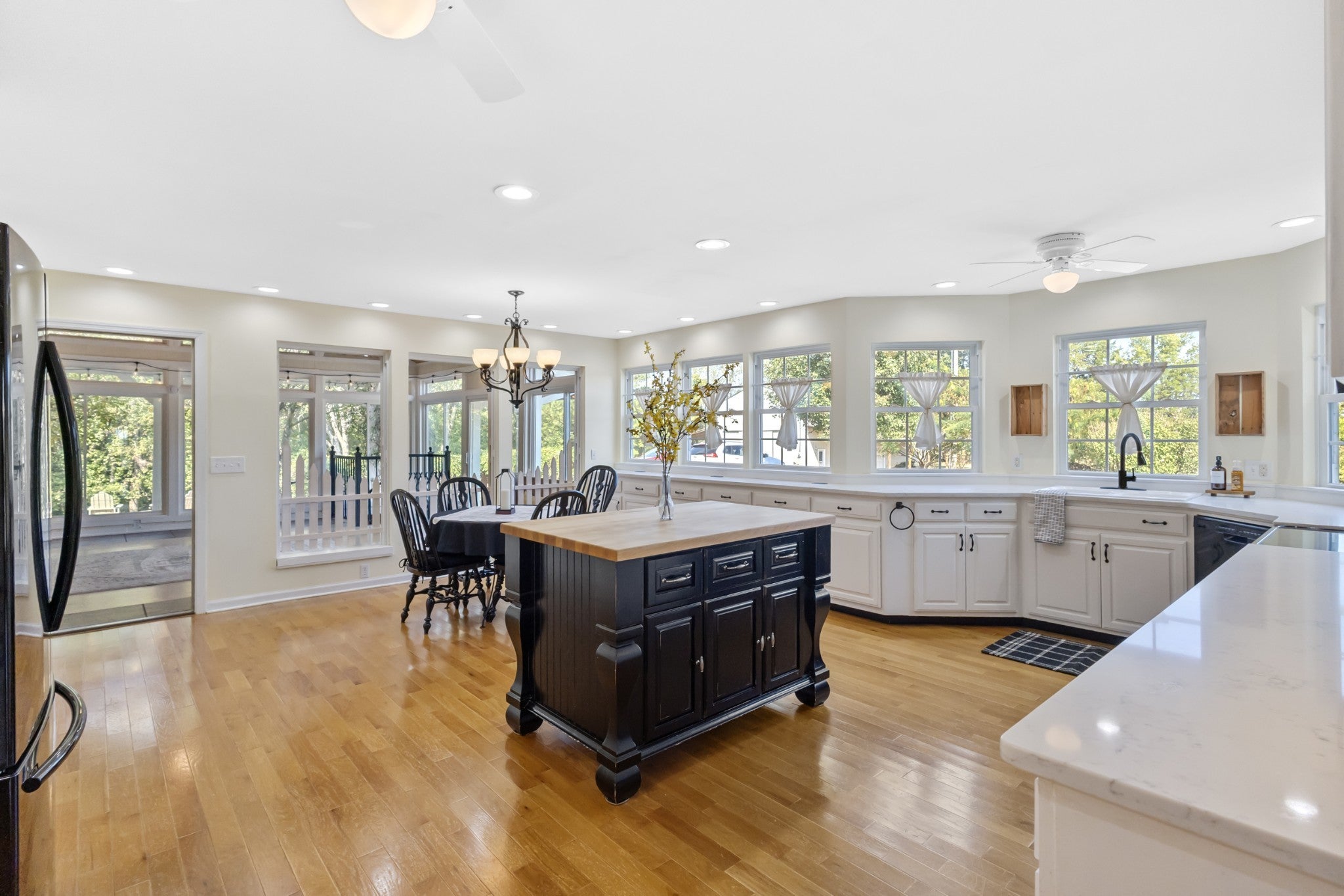 Beautifully renovated farmhouse north of town with custom finishes and charming country appeal. This spacious three-level home is perfect for large families and large gatherings and offers distinctly separate spaces, ideal for multigenerational living. The main level features an oversized kitchen with quartz countertops, custom cabinetry, and plenty of natural light. The sunroom right off the kitchen has vaulted ceilings and large 6-foot windows that overlook the spacious and private backyard. Two wood-burning fireplaces on the main floor add warmth and character, making the home cozy during the colder months. The basement offers 10-foot ceilings, a second full kitchen, a bedroom, an office, and a large living area. With its own set of appliances and living spaces, this level is perfect for guests, extended family, or rental potential. Outside, the property is designed to enjoy the natural surroundings. Beautiful landscaping, multiple porch swings, and walking trails create the perfect setting to unwind. Less than 3/4 of a mile away, the Cumberland River wraps around the area, attracting local wildlife and adding to the property's serene atmosphere. The detached garage/barn is a standout feature on this property. This impressive 40x60 heated and cooled building includes 12-foot ceilings, four garage doors (including two 12-foot drive-through doors), a 60x32 loft with 8-foot walls and a 12-foot peak, plus a 25x60 covered awning with concrete flooring on both sides—ideal for storage, hobbies, or business use. This property is one of a kind and a must see!