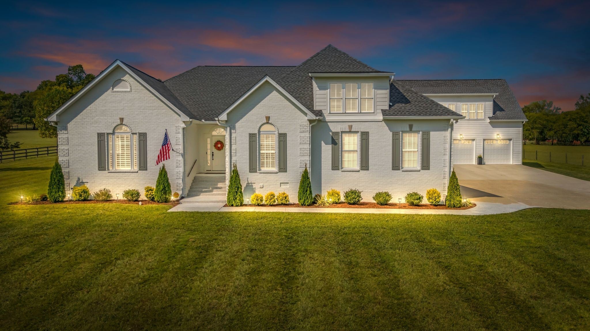 Stunning 4 bedroom 3.5 bath home on 5.53 acre mini farm in the heart of Arrington. This property has been beautifully updated inside and out, featuring a brand new roof, refinished hardwood floors and custom woodwork throughout. The kitchen is a showstopper with quartz countertops, a large island with seating and GE Café appliances. The primary suite offers a spa-like bath with a soaking tub, walk-in shower, and expansive custom closets. A new three-car garage includes a full guest suite above with its own kitchenette and bath, perfect for extended family or guests. Outdoors enjoy level fenced acreage ideal for horses or play, along with fresh landscaping and a new driveway. This home blends modern updates with the charm of country living just minutes from all life's conveniences.