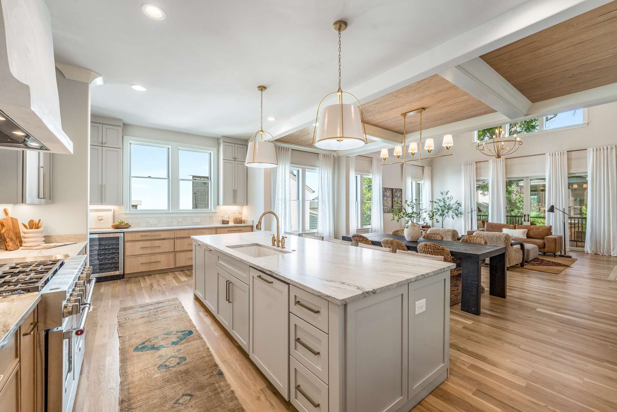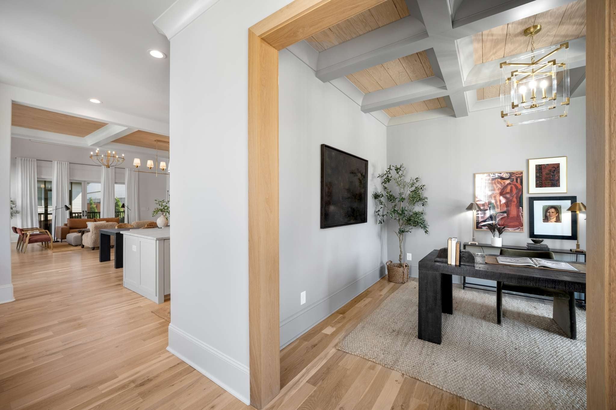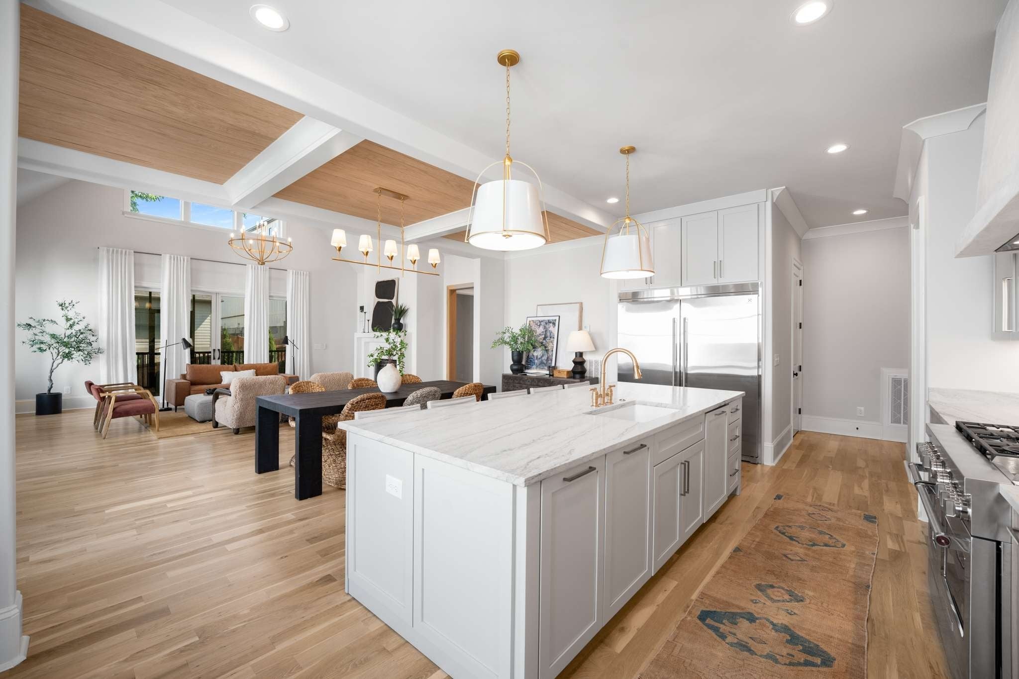 Welcome to 3402 Golf Club Lane.. Just completed new construction - Nestled in the heart of Green Hills on the prestigious Golf Club Lane, this stunning new construction home redefines luxury living with its exquisite architectural details and unparalleled craftsmanship. Step inside to world-class finishes, including beautiful oak hardwood floors throughout, intricate handcrafted oak trim and door casings, coffered ceilings with wood inlays, and soaring vaulted ceilings in the living room that amplify the sense of grandeur. Flooded with natural light through expansive floor to ceiling windows, the open-concept design showcases a chef's dream kitchen boasting a massive built-in refrigerator, separate full freezer, custom cabinets, designer tile backsplashes, and abundant stone countertops. Every detail shines, from the European designer lighting and decorative mirrors to superior moldings that elevate the home's custom-built elegance. The primary suite is a true retreat, featuring a separate soaking tub and oversized rain shower, double vanities with expansive stone countertops and storage, and ultimate privacy. Each bedroom enjoys its own luxurious en-suite bath, while the main living spaces include a rare wood-burning fireplace with gas starter—paired with a screened-in porch and cozy fireplace. Additional gems abound: a walk-in butler's pantry with an extra sink, built-in microwave, wine fridge, and space for appliances (plus a second dishwasher); a massive laundry room with stone counters and ample storage; and a serene library retreat illuminated by designer fixtures. Lush, mature landscaping envelops the property, creating a private oasis. Perfectly positioned, you're steps from Green Hills Mall, Whole Foods, top restaurants, and boutique shops, with easy interstate access—just 15 minutes to everything you need. This is more than a home; it's a masterpiece of sophistication and convenience.