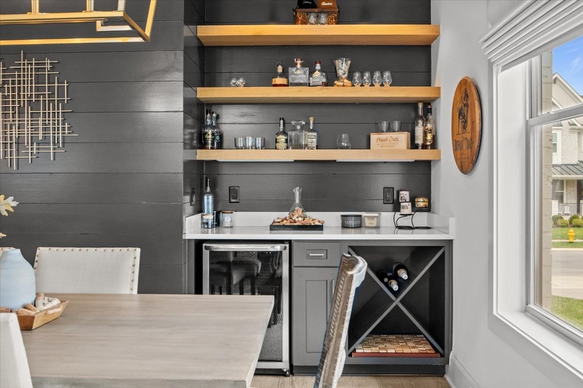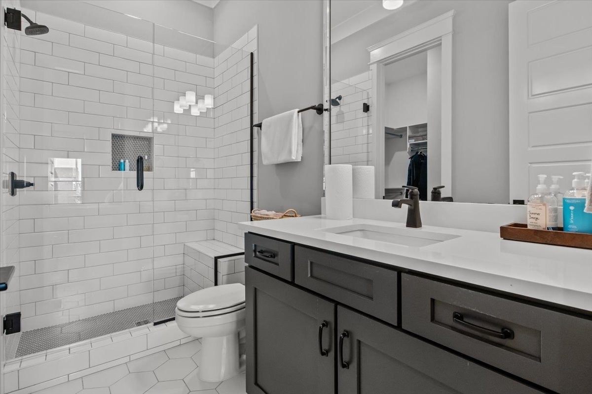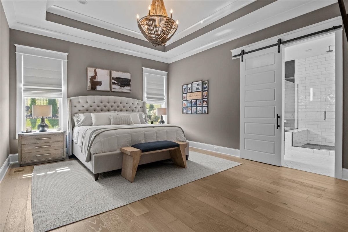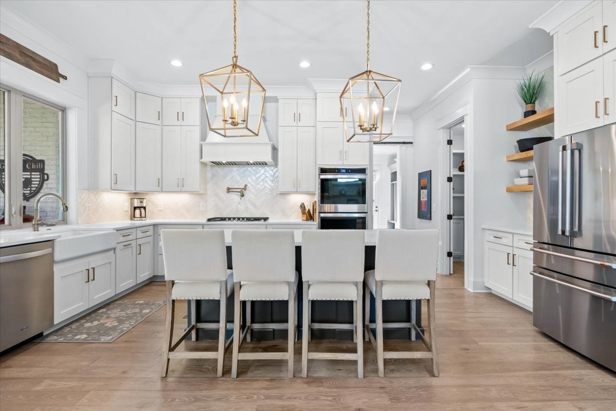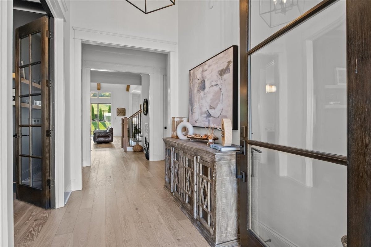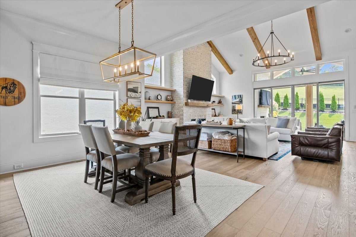 Exceptional Custom Home on a Premier Corner Lot in Highly Desirable Whistle Stop Farms! Welcome to a truly remarkable custom-built residence where every detail has been carefully considered and artfully executed. Positioned on a spacious corner lot within the coveted Whistle Stop Farms community, this home offers a rare blend of thoughtful design, refined style, and everyday livability. From the moment you step inside, the home’s intentional layout becomes immediately clear. The main living spaces flow effortlessly, creating an inviting atmosphere ideal for both daily routines and large gatherings. The Chef’s Kitchen serves as the heart of the home, featuring high-end appliances, generous counter space, and a beautifully organized walk-in pantry. This culinary space opens seamlessly into a warm and welcoming Family Room accented by striking exposed beams, adding both architectural character and a sense of openness. Every practical need has been anticipated—from the oversized Laundry Room with custom storage to the carefully curated finishes that elevate each room. The transition from indoors to outdoors is equally impressive. Expansive wall-to-wall doors lead to a stunning outdoor lounge designed for year-round enjoyment. With its integrated entertainment area and full outdoor kitchen, this space is perfectly suited for hosting unforgettable gatherings or simply unwinding in comfort and privacy.