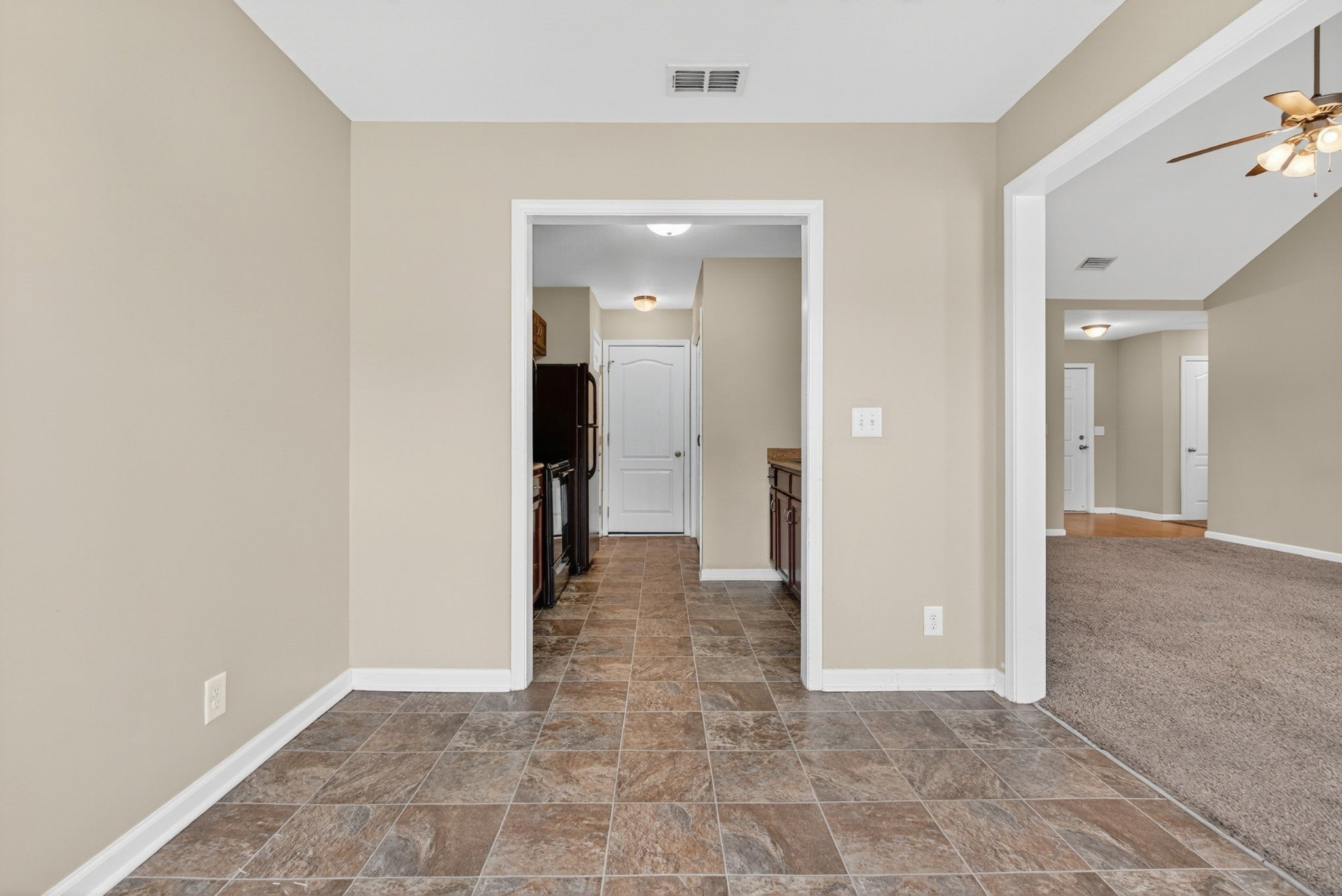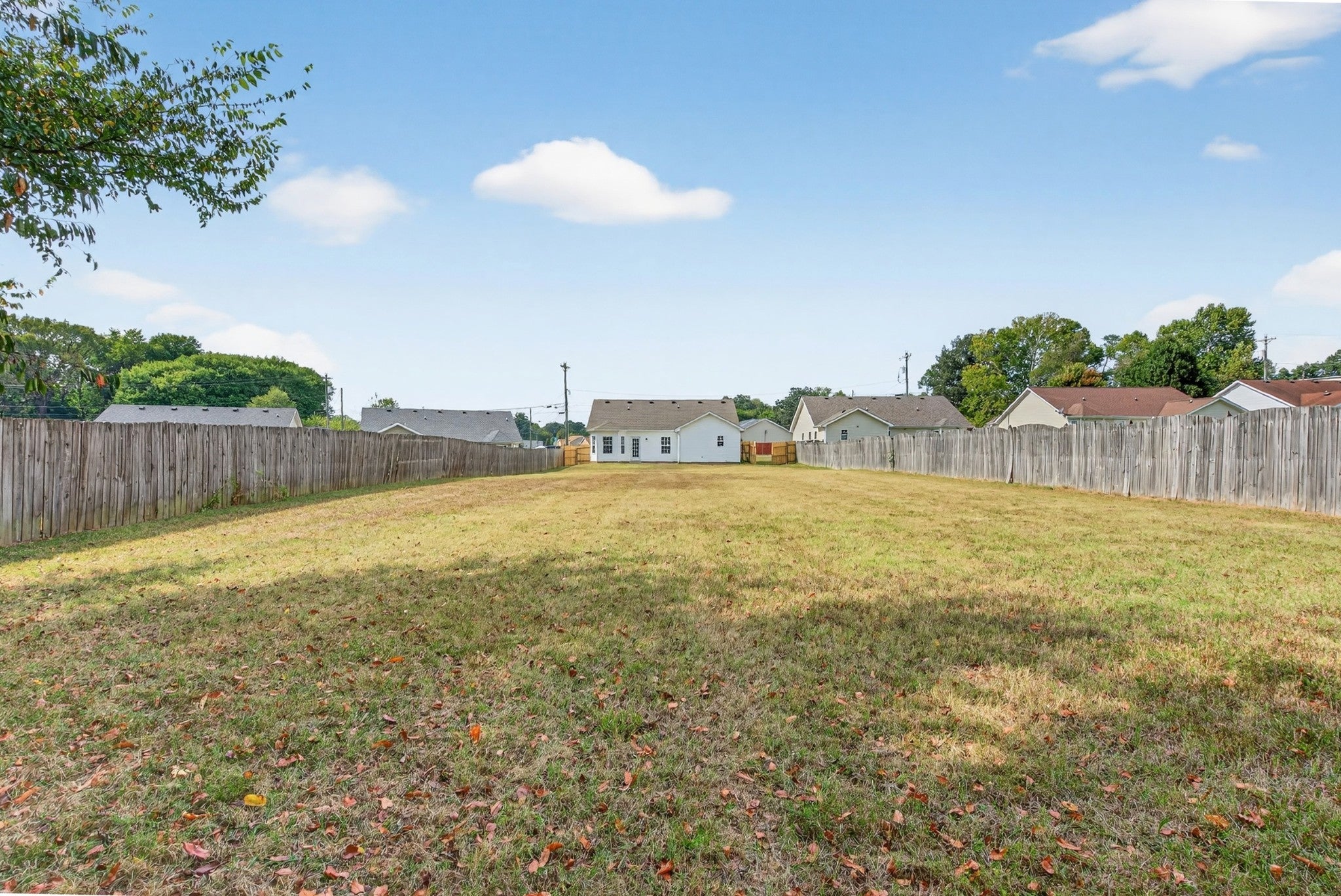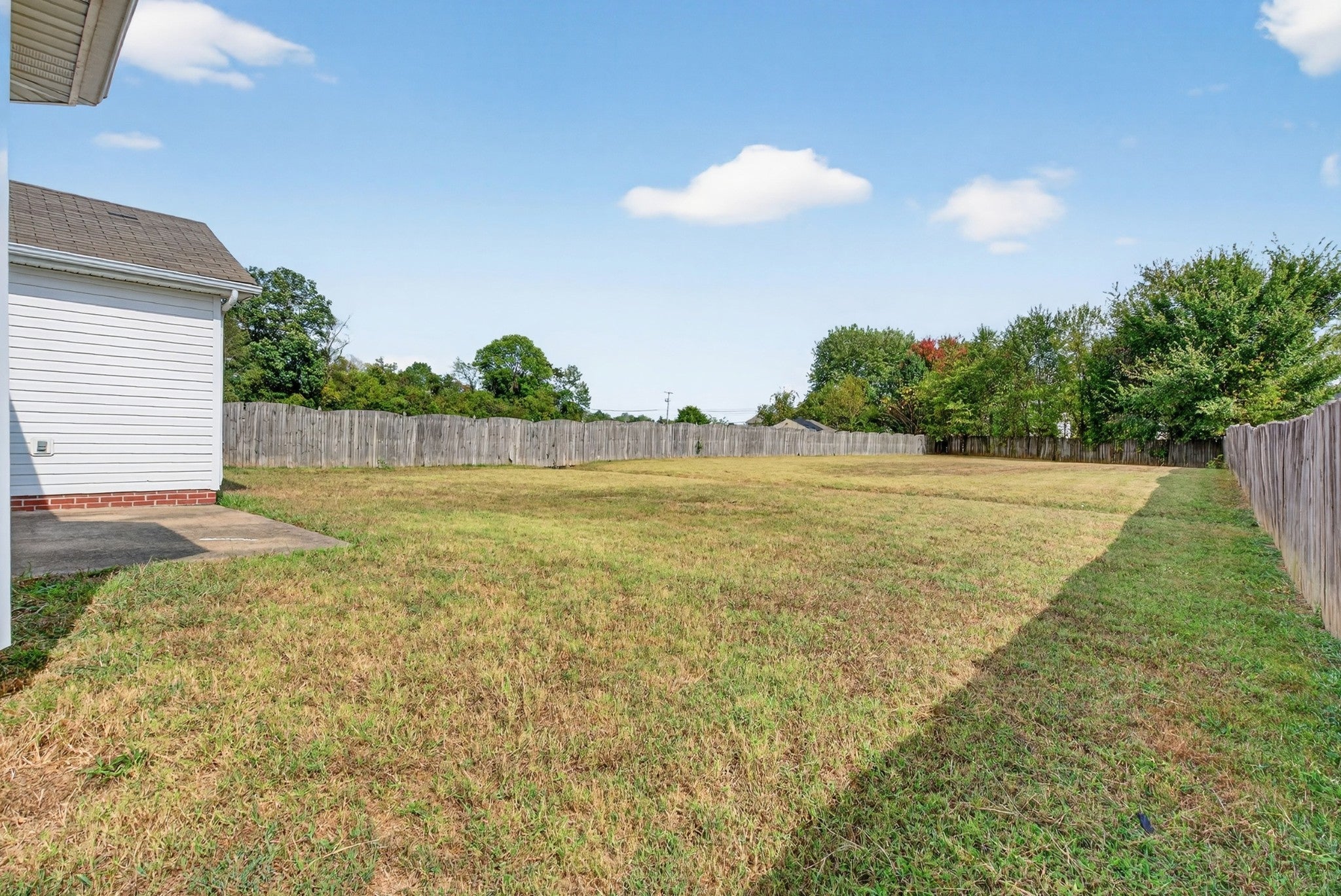 Step inside this 3-bedroom, 2-bath home on a 0.43-acre lot featuring a large backyard, 2-car garage, and privacy-fenced yard. The welcoming entry foyer leads into functional living spaces, and the primary bedroom offers an 8x5 walk-in closet (not shown in the floor plan; the closet pictured is the linen closet) and a full bath. The front brick exterior provides classic curb appeal. Move-in ready and designed for everyday living, entertaining, and enjoying outdoor space.