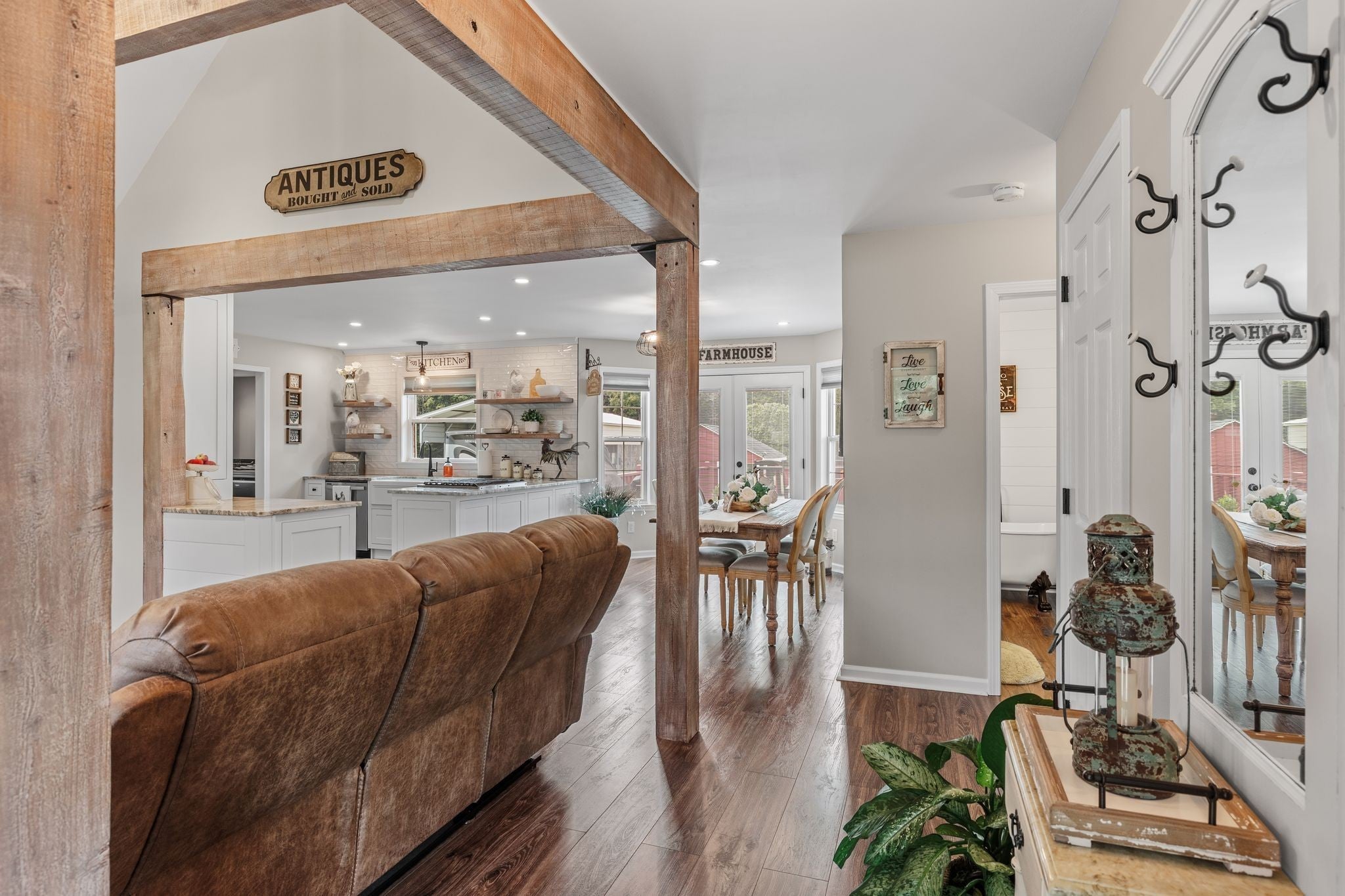 Welcome home to where modern comfort meets Tennessee charm. This beautifully renovated all-brick home feels like a fresh start, it's full of light, warmth, and thoughtful details at every turn. With 3 bedrooms and 2 bathrooms all on one level, it’s the kind of home that instantly feels easy to live in and love. Step inside and you’ll notice the open floor plan framed by handsome Cypress beams, a space made for everyday living and effortless entertaining. The kitchen is a showstopper with its farmhouse sink, inset shaker cabinets, floating Cypress shelves, granite countertops, and stainless-steel appliances. Every inch has been updated with care, from the wood-look laminate floors throughout to the fresh, modern paint and encapsulated crawlspace with dehumidifier. Outside, you’ll love spending evenings on the tiered deck or around the rocked-in fire pit by the gentle creek and wooded backdrop. Need space for your hobbies or travel gear? There’s a covered RV pad with a 50-amp hookup, a fenced-in yard, and even a charming storage shed with its own little porch. This home blends timeless character with modern convenience. No HOA, no restrictions, just your own peaceful slice of Tennessee living. Roof (7 yrs), HVAC (10 yrs), and water heater (1.5 yrs) mean you can move right in and start making memories.