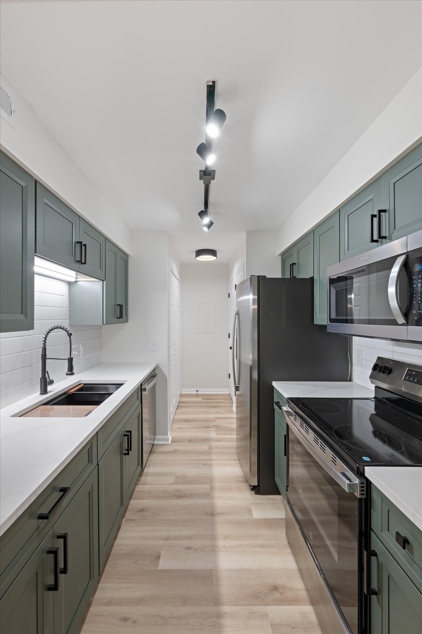- Built-In Electric Range, Dishwasher, Disposal, Dryer, Freezer, Ice Maker, Microwave, Refrigerator, Stainless Steel Appliance(s), Washer