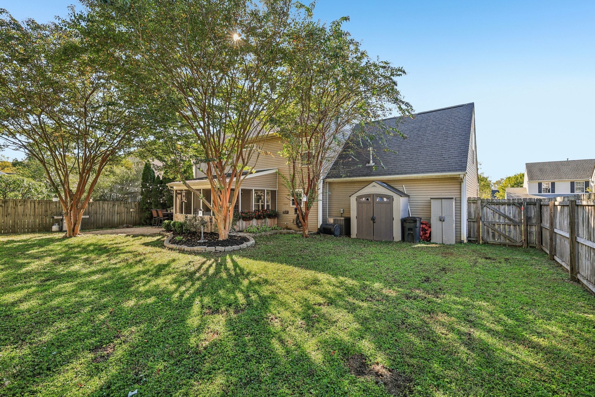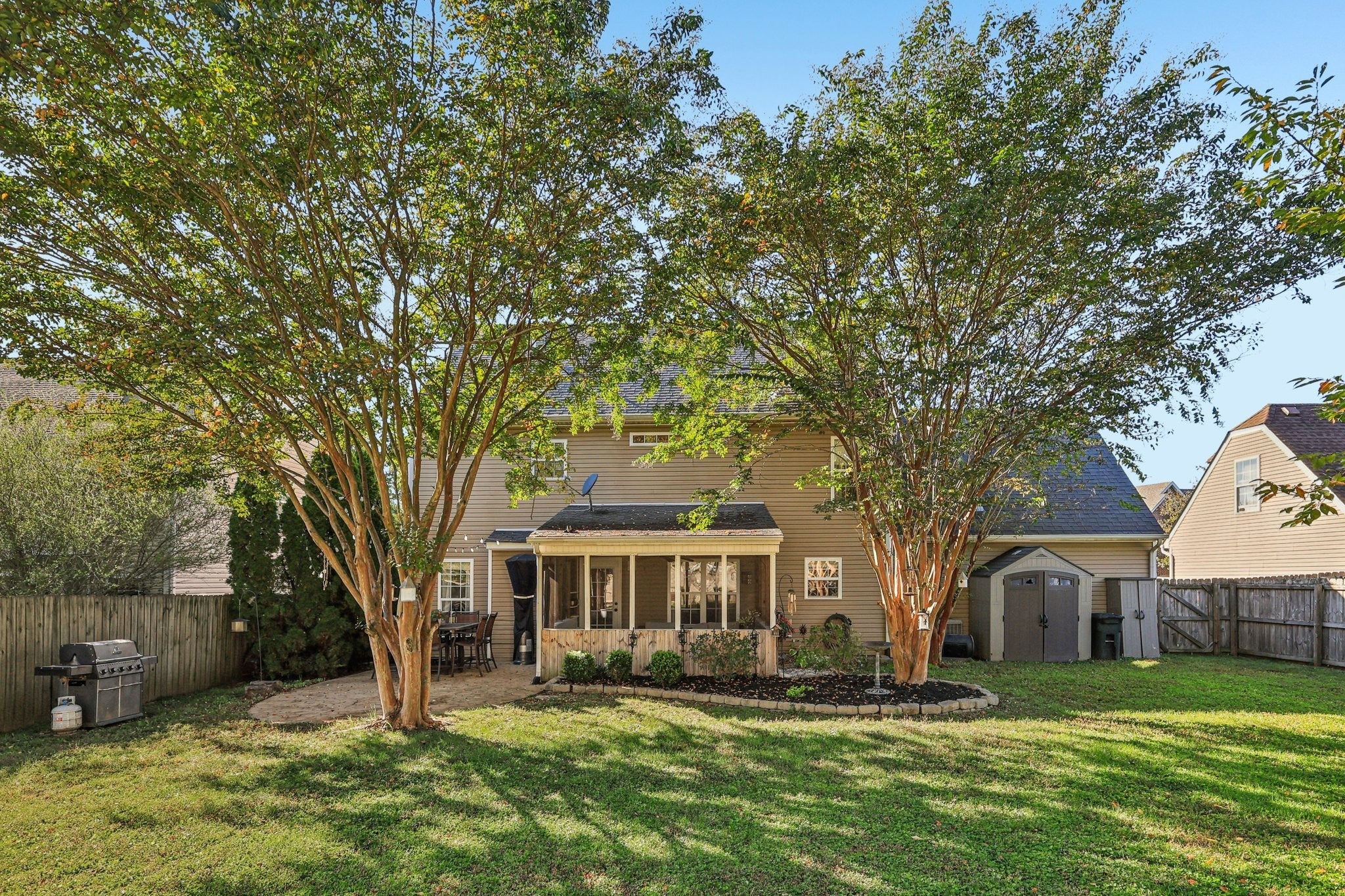 Welcome to this spacious, almost 2,400 sq ft, 4-bedroom, 2.5-bathroom home, perfectly designed for both comfortable family living and impressive outdoor entertaining. Inside, the traditional floor plan offers excellent flow. A formal dining room is ready for special occasions. The great room offers a cozy gas fireplace and connects seamlessly to a casual dining space and the well-appointed kitchen, which boasts granite countertops, stainless steel (SS) appliances, and a tile backsplash. First floor office with French doors is easily adaptable as a bonus room or a potential first-floor bedroom. Upstairs, the expansive primary bedroom is complete with a dedicated sitting room, a walk-in closet, and a private ensuite bathroom. Three more generously sized bedrooms, one currently used as a bonus room, share a well-appointed, updated full bathroom. Convenient second floor laundry. The outdoor space is a true retreat. Step outside from the great room onto a partially enclosed/screened patio. This extends to a concrete patio that overlooks an oversized, level, fenced yard with mature trees for extra privacy. This impressive outdoor area also offers both shaded and sunny spaces and features a built-in fire pit area, making it the ultimate spot for year-round entertaining. This is a must-see home that delivers on space, style, and outdoor living! Schedule a tour to see this home in person today!
