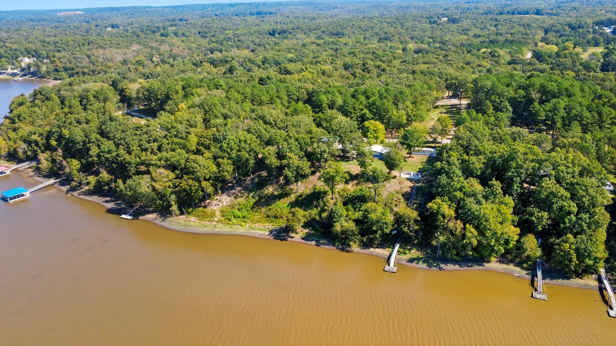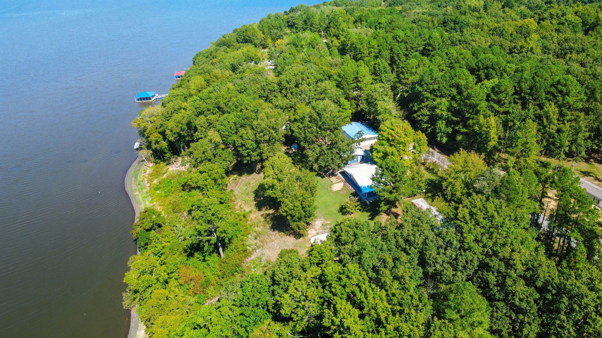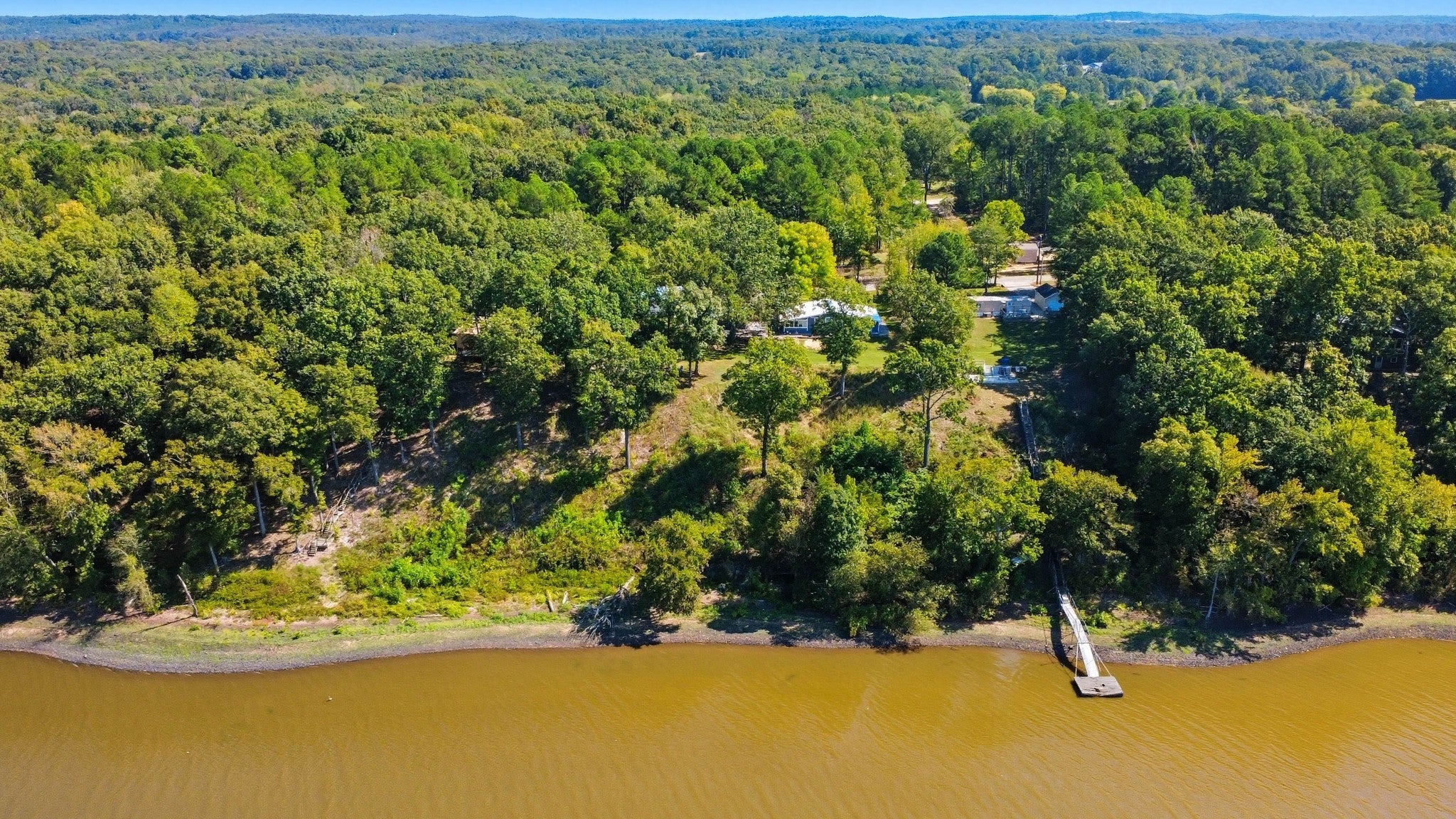 Water Views! Water Access! Kentucky Lake!! Two houses! Two lots! One price! The million-dollar water vistas from this home on the bluff are spectacular. The main house 1532 sq ft boasts scenery of the water from every room, including the owner’s retreat with tongue & groove cathedral ceilings, the living room with gas fireplace, cathedral ceilings, built-in book cases and high niche shelves, the open dining room with cathedral ceilings, the gourmet kitchen has custom cabinets in maple finish, and the private 23x13 Florida room with windows galore and white tongue & groove cathedral ceilings. The Florida room which can be used as sleeping quarters has black-out blinds on each window & a black-out curtain on the doors. The Florida room easily accommodates two twin or one double bed, a living area with TV and a secondary dining area for friendly gather. The owner's retreat has two walk-in closets, two vanities, and an elegant tile shower for two to enjoy. The half bathroom is conveniently located and houses the laundry closet. For easy cleaning, luxury vinyl floors are throughout the home and the owner’s retreat has plush carpet and beautiful tile bathroom floors. In addition, there is a private detached 437 sq ft guest house with a comfortable living room, a quiet bedroom, and a full bathroom. The separate detached oversized 40x36 three car tandem garage fits cars, boats, campers, toys & tools and has an enclosed 21x10 heated & cooled office with storage. The 2 lots total 1.20 acres. This bird lover's paradise has White Pelicans, Eagles & Egrets living in the backyard foliage and soothing waters. The views include miles of TWRA land and nearby land of the National Wildlife Refuge overseen by the U.S. Fish and Wildlife Services. Lot #22 septic system is approved for 1 bedroom, and lot #23 is approved for 3 bedrooms. For a dock permit, the new owner may apply to the TVA for a section 26a permit. Most furnishings convey making this turn key home ready for your pleasure.