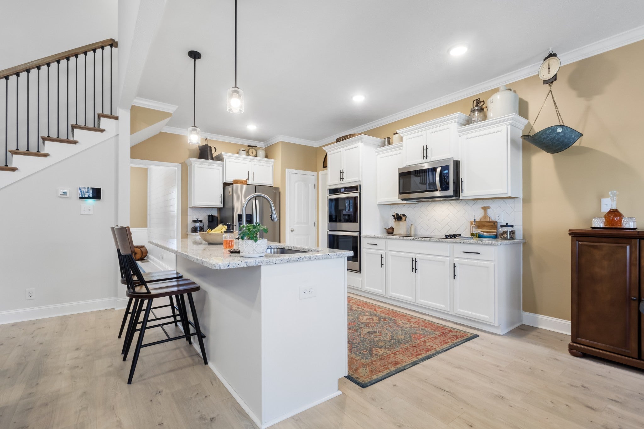 - Double Oven, Cooktop, Dishwasher, Disposal, Microwave, Refrigerator