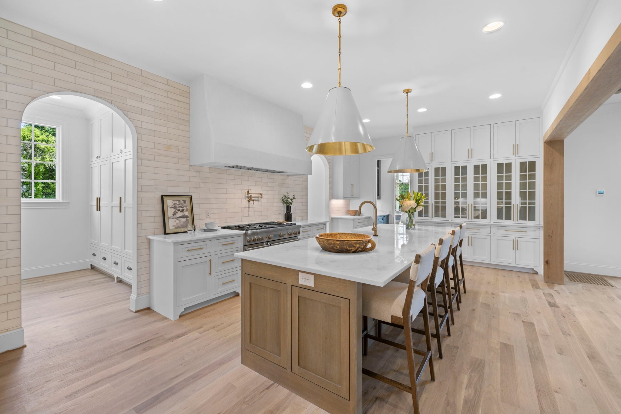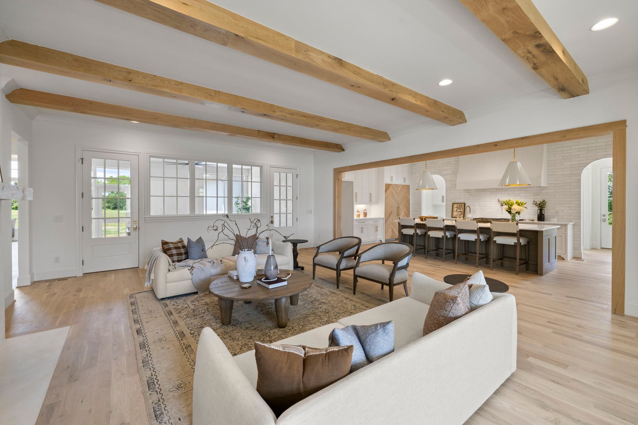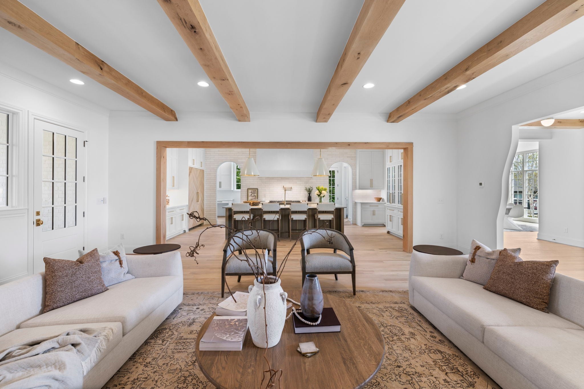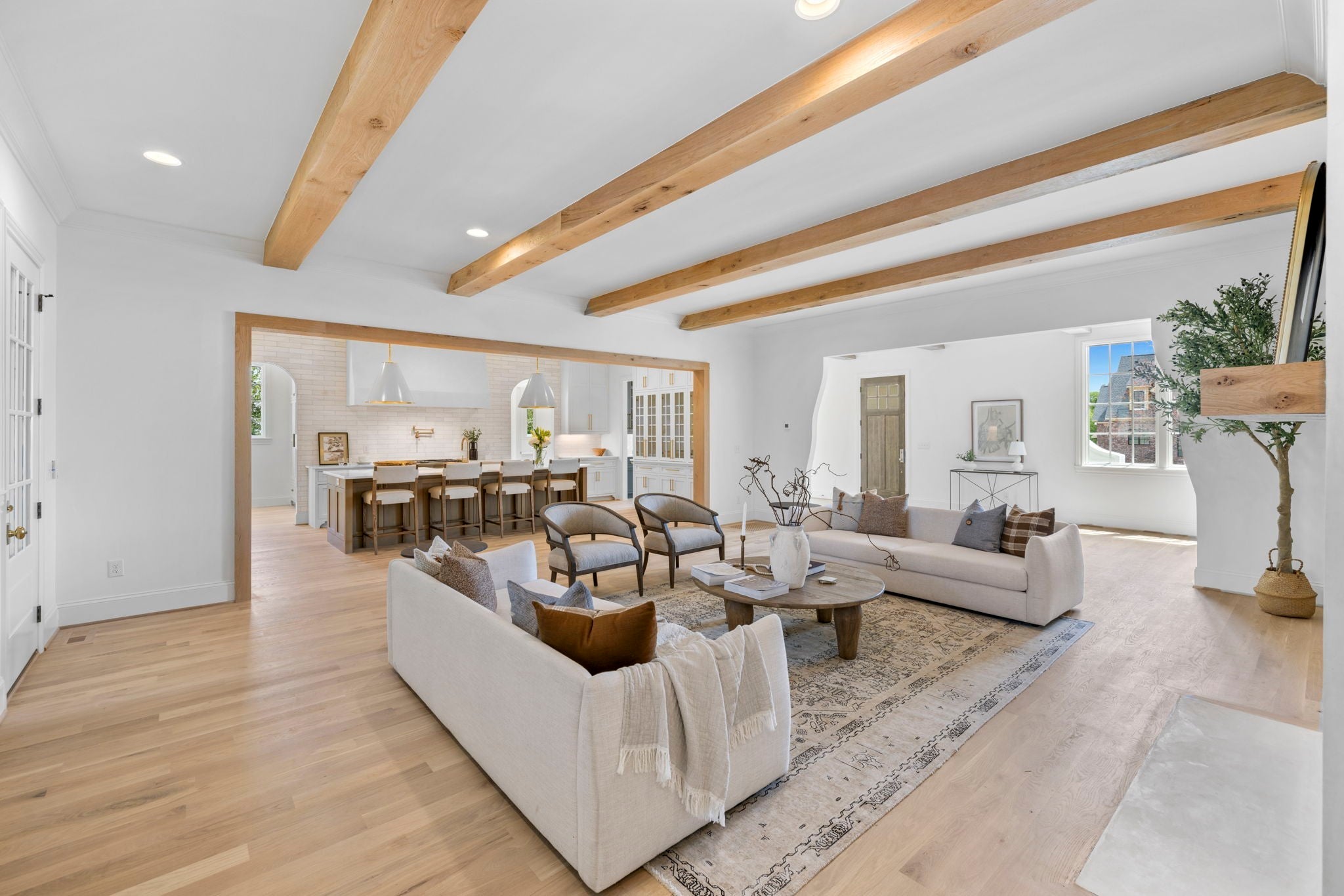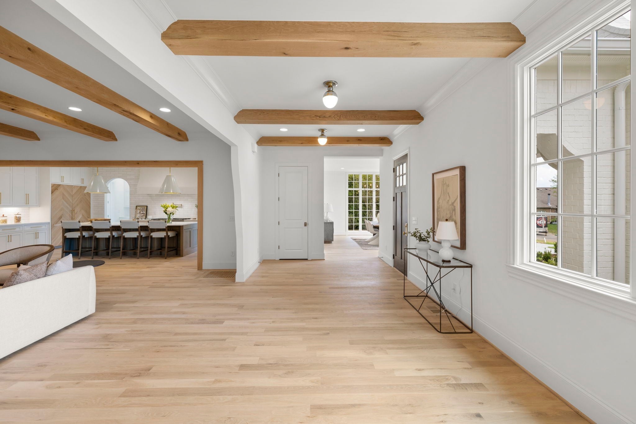 Discover timeless elegance in this new construction by Baird Graham, nestled in Brentwood’s highly sought-after Eastmans Preserve. One of only 25 pristine homesites, this residence offers a rare opportunity in a peaceful community setting, tucked away off Franklin Rd. and Concord Rd. while still convenient to Cool Springs, Brentwood, historic downtown Franklin, and effortless I-65 access for an easy Nashville commute. Zoned for Williamson County’s award-winning schools—Lipscomb Elementary, Brentwood Middle, and Brentwood High—this home is move-in ready with an exceptional selection package. The thoughtful design begins with stunning white oak flooring and beam details on the main level, complemented by elegant arched doorways and cased openings. A private study, formal dining room with abundant natural light, and an open living room with custom built-ins and a gas fireplace create a warm, inviting flow. The chef’s kitchen showcases Thermador and Bosch appliances, a walk-in pantry with open shelving, and a butler’s pantry complete with an additional refrigerator and dishwasher. The main-level primary retreat boasts vaulted ceilings with oak beams, a spa-like bath with double vanities, herringbone pattern tile flooring, soaking tub, and a rainfall shower, plus a generous walk-in closet. A spacious mudroom, half bath, and laundry with utility sink complete the main floor. Upstairs, four bedrooms each feature walk-in closets—two with en suite baths and two sharing a jack-and-jill with double vanities. A spacious rec room over the garage offers endless possibilities, complete with a powder bath just steps away. Step outside to a serene screened porch and brick patio overlooking a level lot with ample space for a future pool. Every detail of this home has been curated for both everyday comfort and elevated entertaining. GPS Address 6014 Eastmans Way to community.