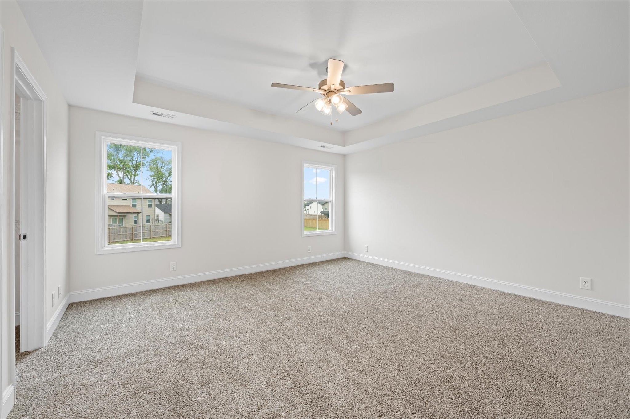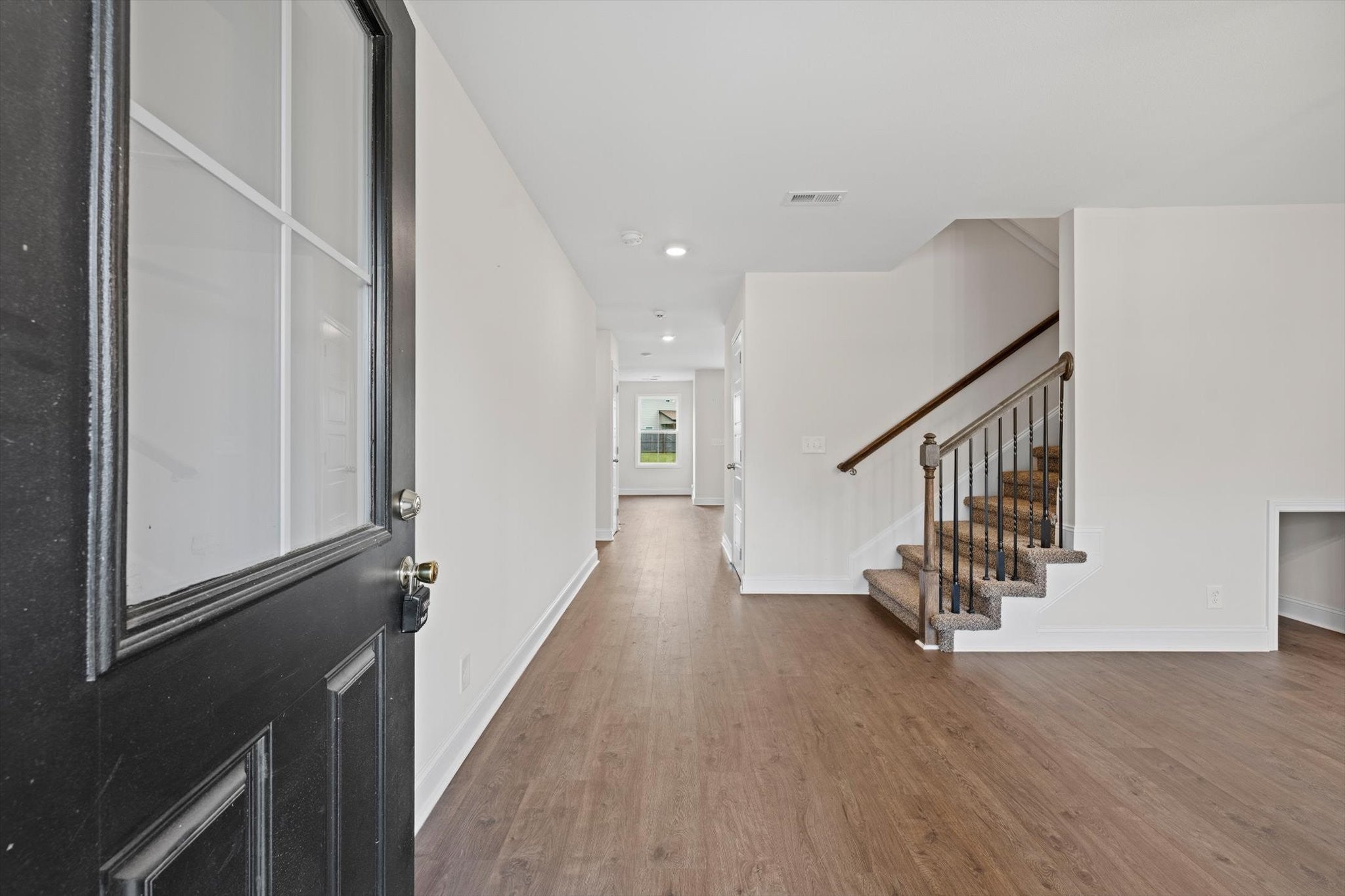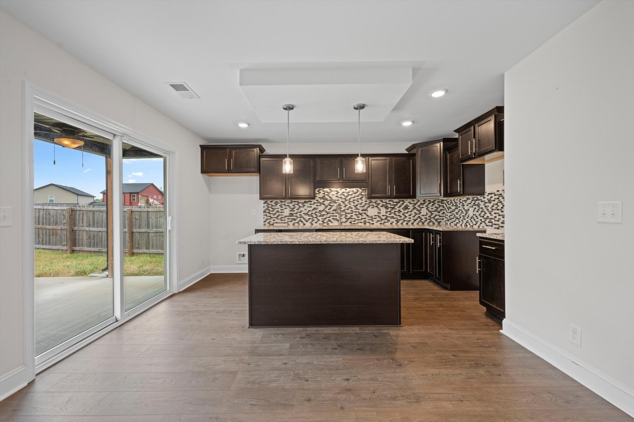 Welcome home to 210 Notgrass Rd! This beautiful, move-in ready home is just three years old and blends modern style with everyday comfort. The main level showcases durable LVP flooring, a formal dining room, and an open-concept design connecting the kitchen and living room—perfect for entertaining. The kitchen offers granite countertops, a stylish backsplash, and plenty of cabinet space. A spacious separate laundry room and convenient half bath complete the first floor. Upstairs, you’ll find a huge primary suite with a walk-in closet, double vanities, and a tiled shower for a touch of luxury. Step outside to enjoy the covered patio overlooking a large privacy-fenced backyard—ideal for relaxing or hosting gatherings. Conveniently located near Fort Campbell, shopping, and dining, this home offers the perfect mix of comfort, style, and convenience.