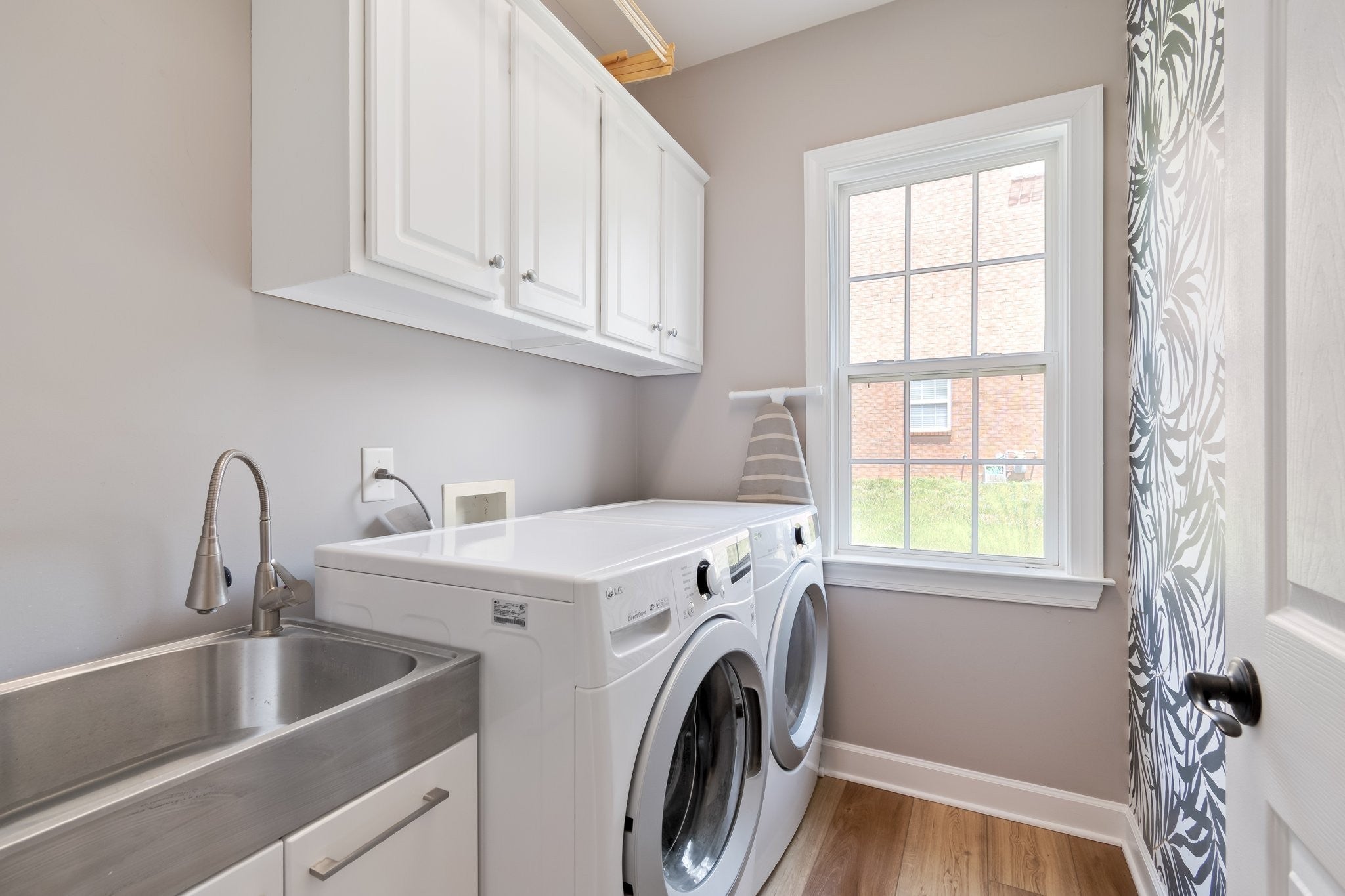 - Built-In Electric Oven, Cooktop, Dishwasher, Disposal, Dryer, Microwave, Refrigerator, Stainless Steel Appliance(s), Washer
