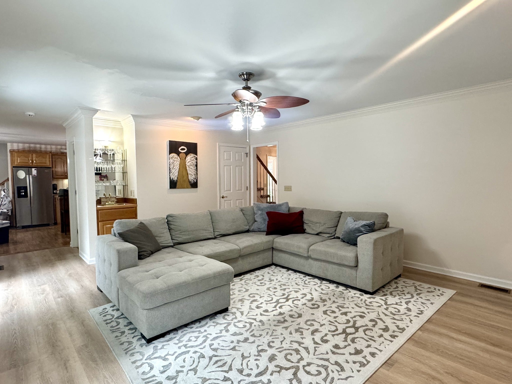 This spacious all brick home offers an opportunity to bring your vision and style to life. Nestled on a beautiful lot, not far from downtown Dickson this property features generous square footage, and plenty of character throughout including bay windows, vaulted ceilings and a fabulous floor plan. The home also has 2 sets of stairs that go to the second level. One off of the kitchen/garage door and the other is right when you walk in the front door. ALL BEDROOMS ARE UPSTAIRS This home needs some updating, finishing touches, and some TLC however, the foundation is solid, and the roof is 2 years old. They have put in a new front door and 2 new sliding doors on the back side of the home. It has endless potential to create your dream space. The owners were in the process of updating the home and still have enough flooring to cover the entire downstairs. It will be sold with the home. The storage shed will remain with the property. The home is priced to sell. Sellers are offering a one-year home warranty through First American Home Warranty company