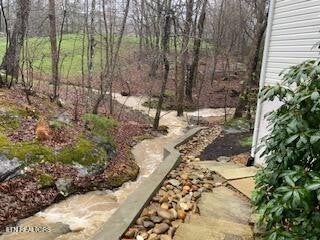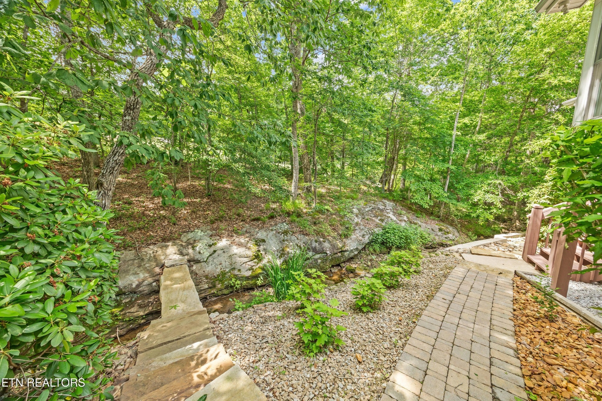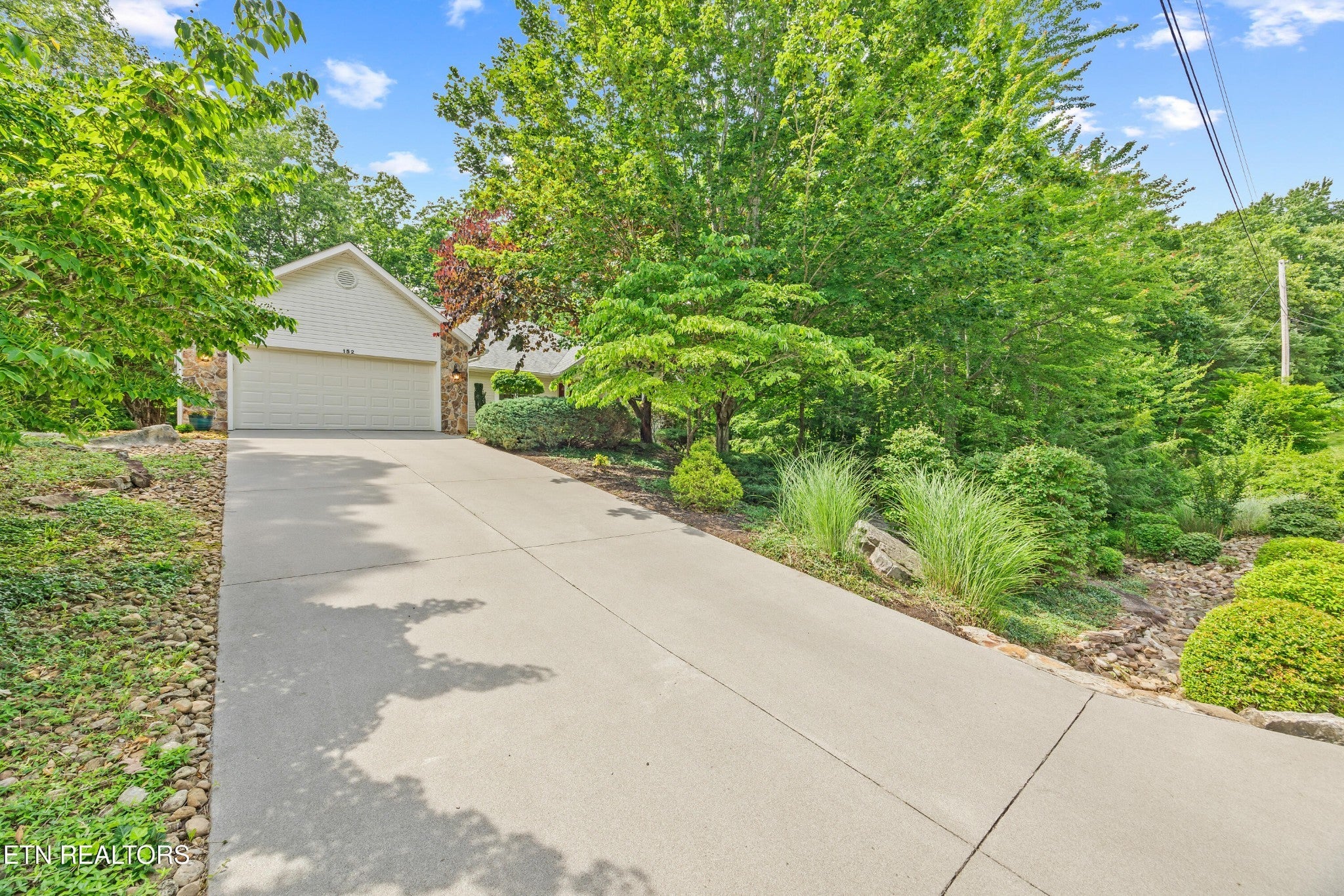 If you like more green space combined with a neighborhood and all the amenities that come with living in a resort community, you'll want to view this home! Tucked among the trees on almost an acre lot along the 8th hole of Stonehenge Golf Course, this home could be your next address. The lot features stone walkways, retaining walls, a creek with stone bridge and rock outcroppings - get a 'peaceful easy feeling' here! Step into the entry to a spacious living/dining room combination with with soaring cathedral ceiling, stone, natural gas fireplace and newer engineered hardwood English White Oak flooring. The home features split bedrooms, spacious sunroom, kitchen with custom cabinets, quartz countertops and tile backsplash. The master suite features trey ceiling, two master closet with organizers and pocket doors, master bath has two vanities, a large, tiled, step-in shower and linen closet. The stand-up crawl space is encapsulated and includes the storage shelves. The spacious, 2-car garage has a closet, cabinets, utility sink and attic access. Windows and doors were replaced with Pella brand. Furnace was replaced in 2025, roof is newer. Other features include a tankless water heater and window blinds with top-down, bottom-up feature. The lot to the left of the home as you face it from the street was combined. Build your mancave or garden shed on it with ACC approval.