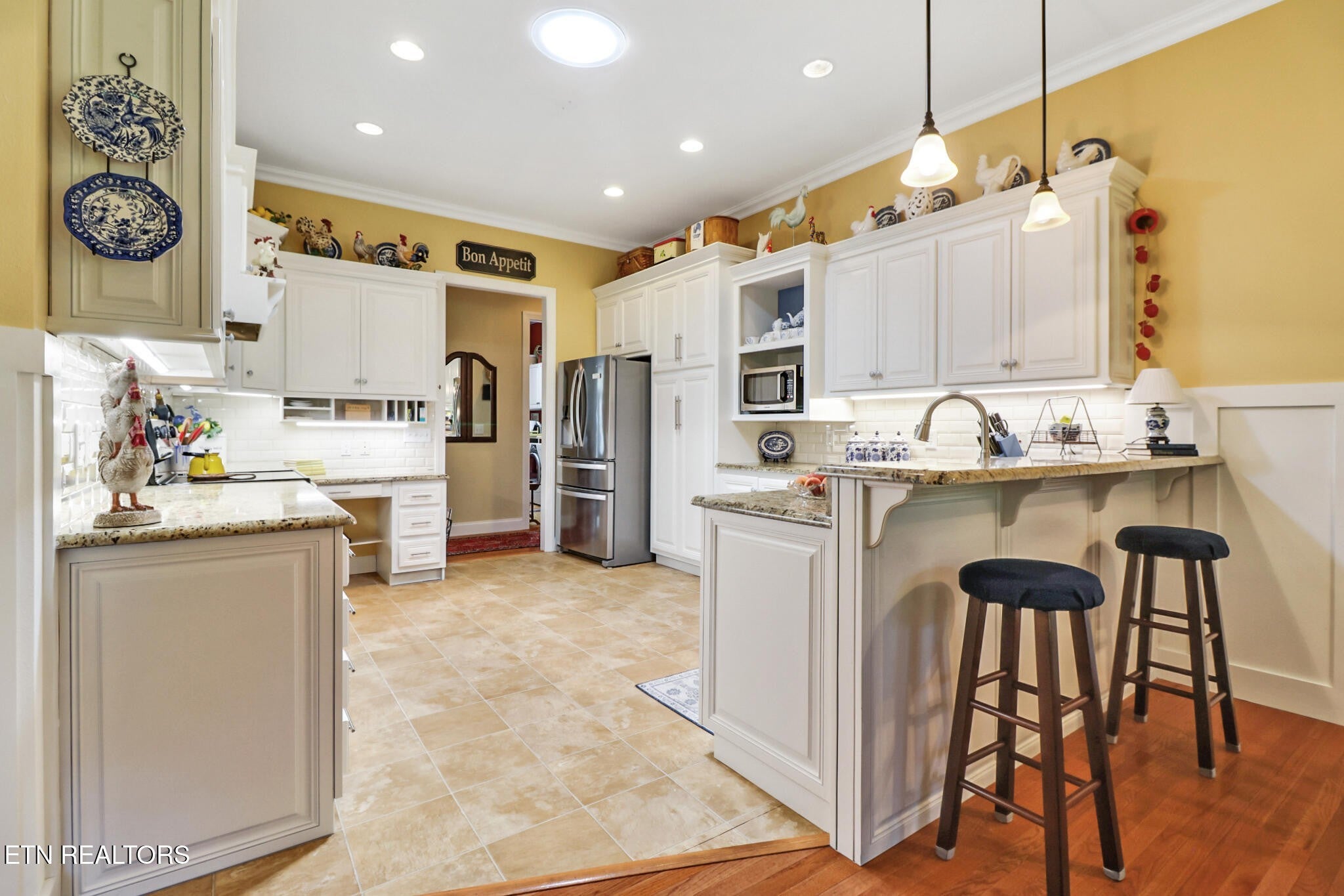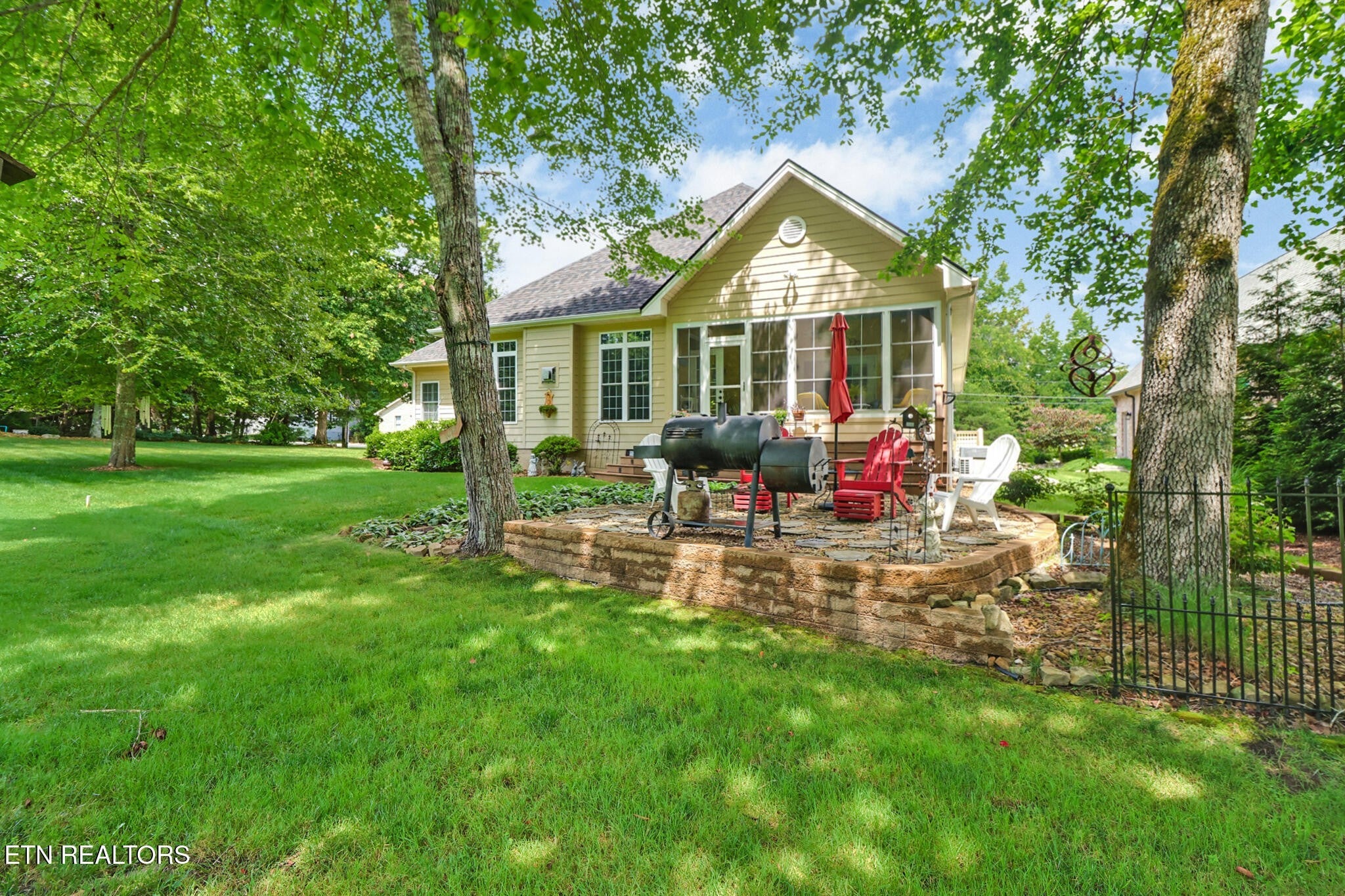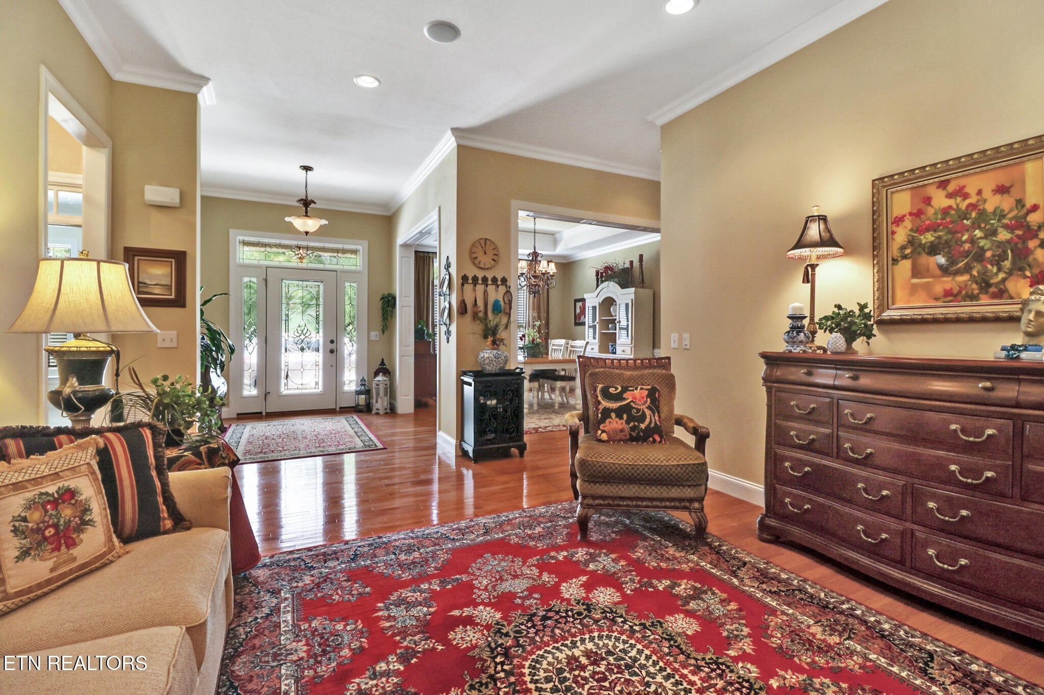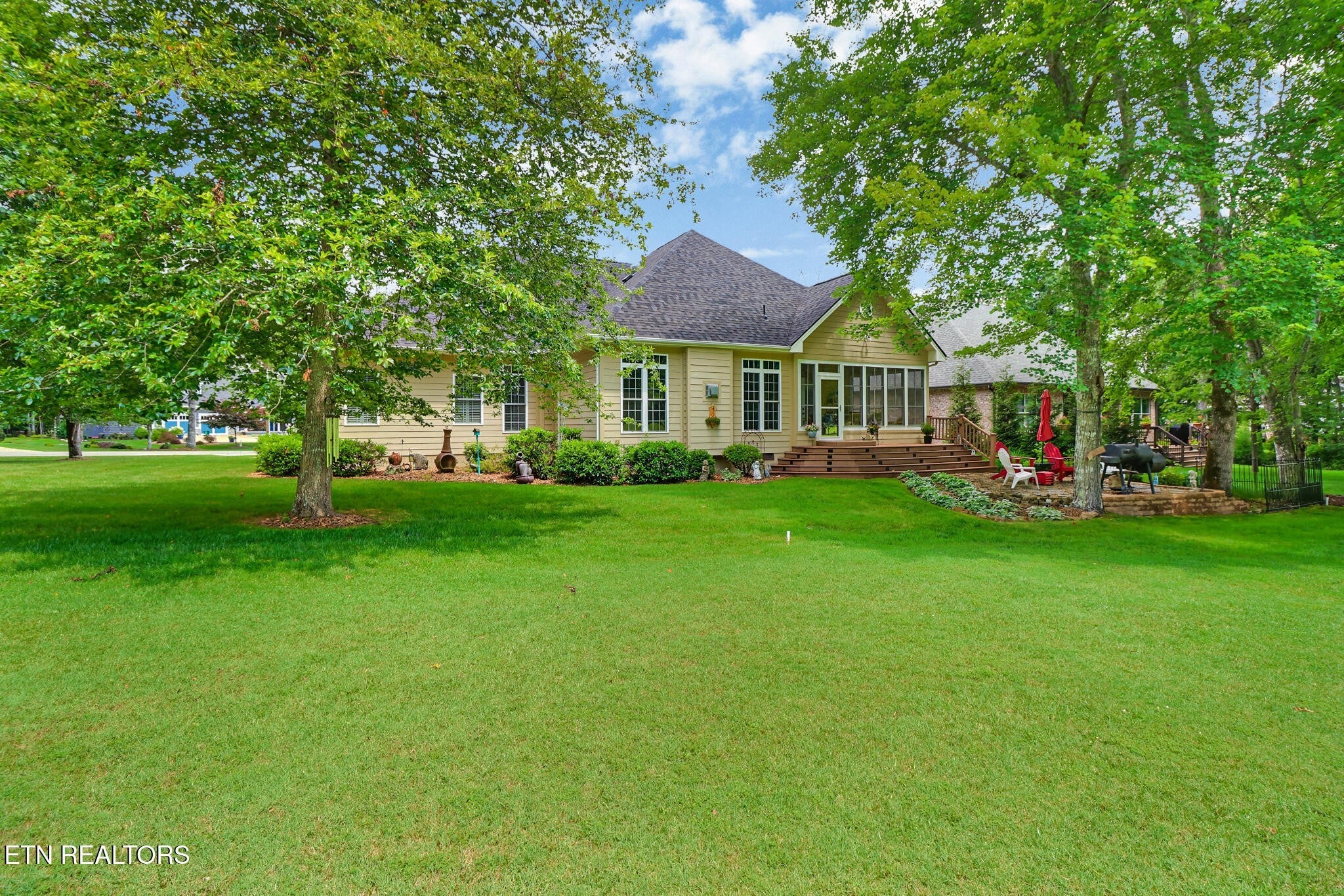 You'll find elegance and sophistication in every inch of this home - both inside and out. As you enter the driveway, you'll be struck by the home's curb appeal. The side-entry garage, stacked stone accents, and lovely landscaping contribute to the appeal. Step into the foyer and you'll find a spacious living room with formal dining room to the left. Notice the attention to detail with a trey ceiling, rich hardwood flooring, crown molding and unique trim which are classic and timeless. The kitchen and spacious family room connect to make this a great space for entertaining. The casual dining area in the family room make this the perfect spot for your Super Bowl party. Adjacent to the family room is a sunroom that looks out over the 9th teebox of the Brae Golf Course. The sunroom (which may be your favorite room) was added in 2024 with a split HVAC for comfort. The master bedroom which also has access to the sunroom is a great place for your morning coffee or evening cocktail. The spacious master bedroom features his and her master closets, and the master bath has a step-in tile shower, double vanities with a clothes hamper built-in and heated, tile floors. The bedrooms are split with spacious secondary bedrooms - one is being used as an office/game room. The laundry room has lots of storage and a sink. The oversized 2-car garage has a workshop, pulldown attic storage and 2 service doors. Other features include plantation shutters, patio and sprinkler system. New roof in 2025. Come view this home and feel the comfortable and welcoming atmosphere.