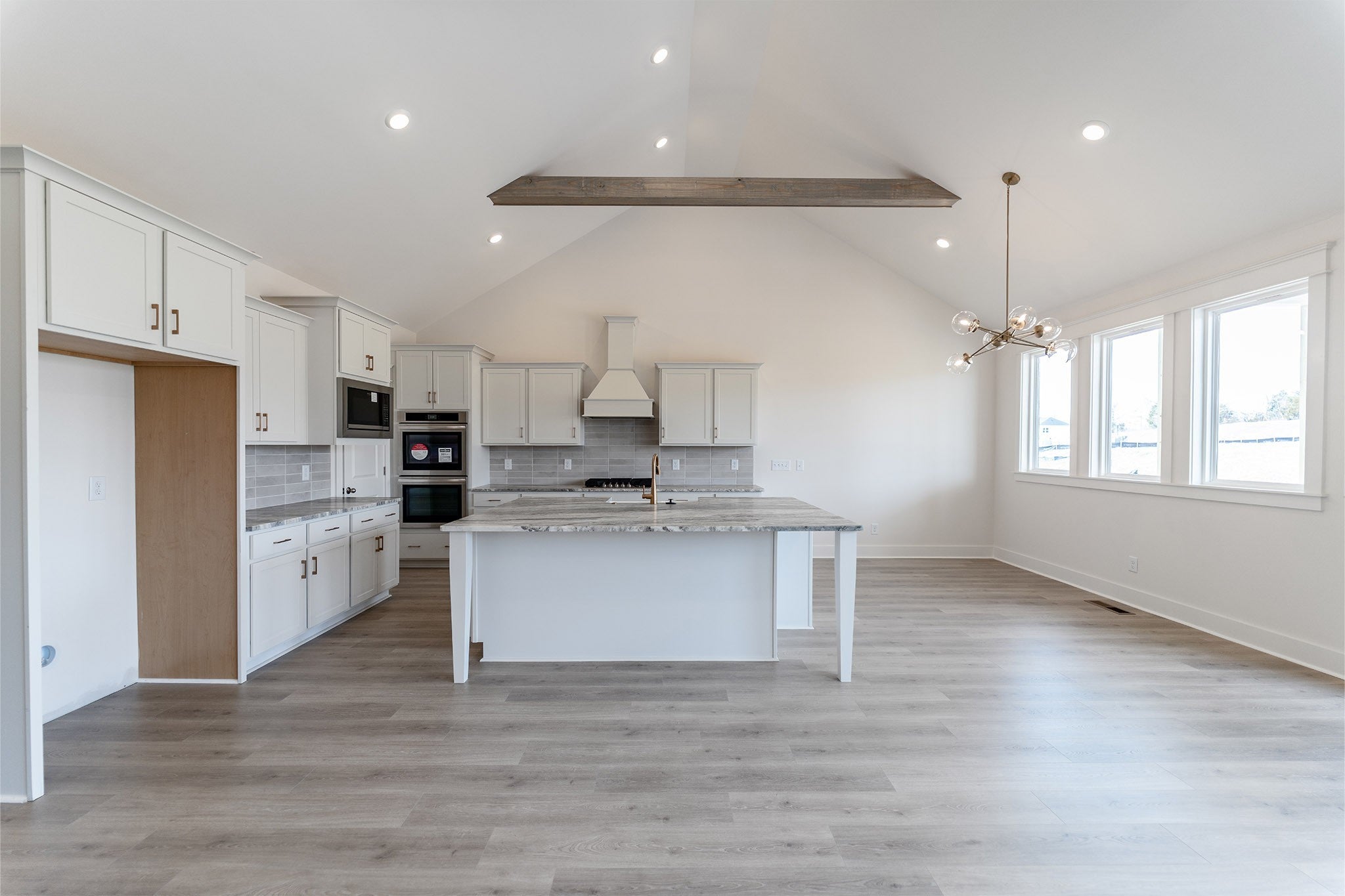 - Built-In Electric Oven, Cooktop, Dishwasher, Disposal, Microwave