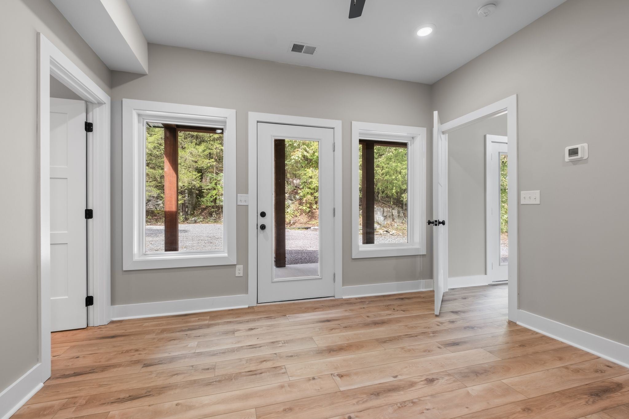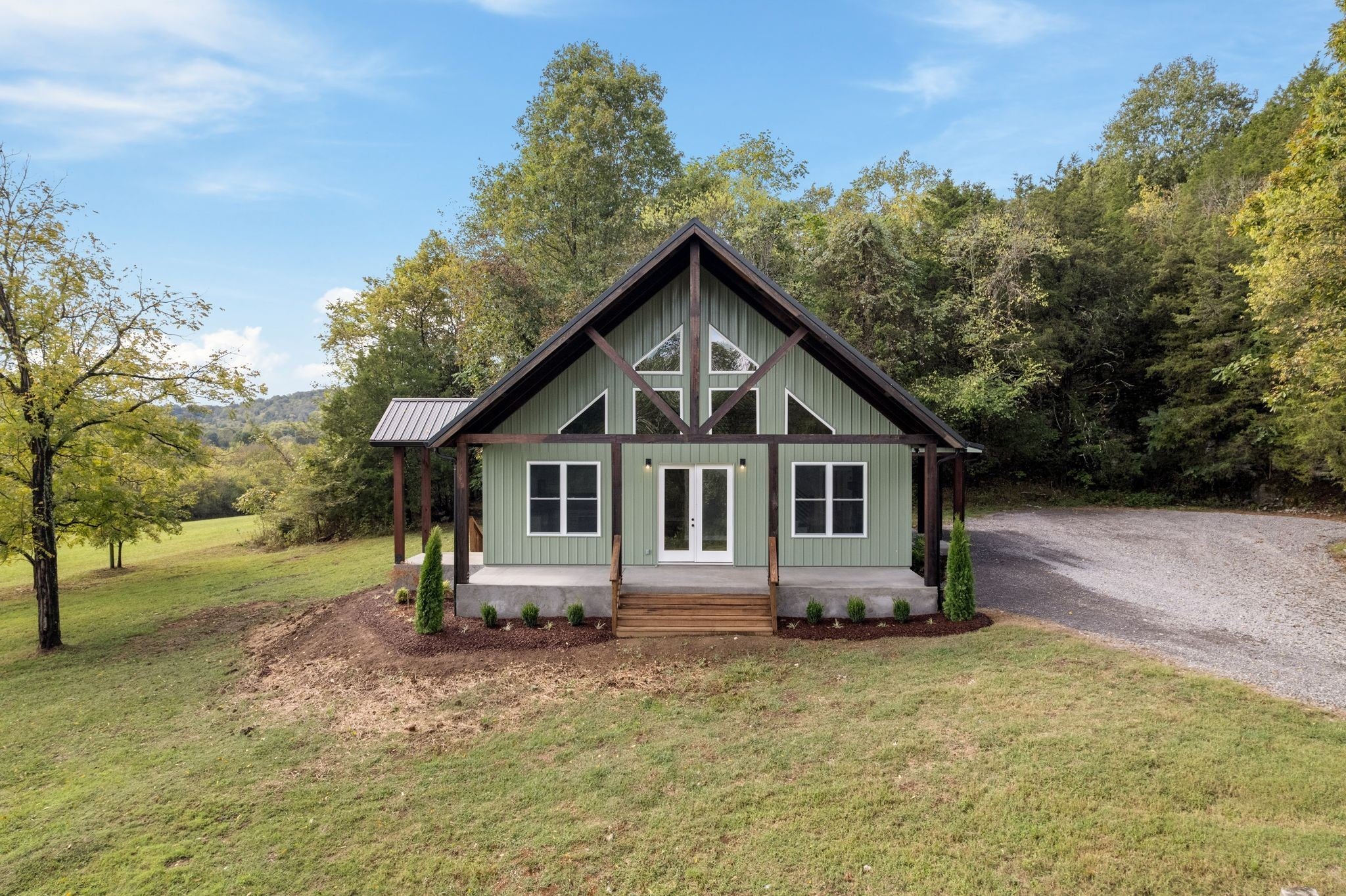 This charming 3 Bedroom, 2.5 Bath lakeview home blends rustic elegance with modern comfort in a serene, wooded setting. The exterior features a beautiful combination of green Metal siding, rich natural wood accents, and a sleek black metal roof. Its inviting covered front porch, supported by timber posts, offers the perfect spot to relax and take in the peaceful views. Large windows under the dramatic gabled roofline bring in abundant natural light and frame scenic outdoor vistas. Sitting on 5 Acres of private wooded land offers plenty of space for privacy and recreation. Located just a 5 minute walk to the waters edge and minutes to several boat ramps accessing Cordell Hull Lake and the headwaters of the Cumberland river. Whether you're looking for a peaceful weekend escape or a full-time retreat, this custom-built home offers the ideal mix of nature, comfort, and style—just steps away from the lake.