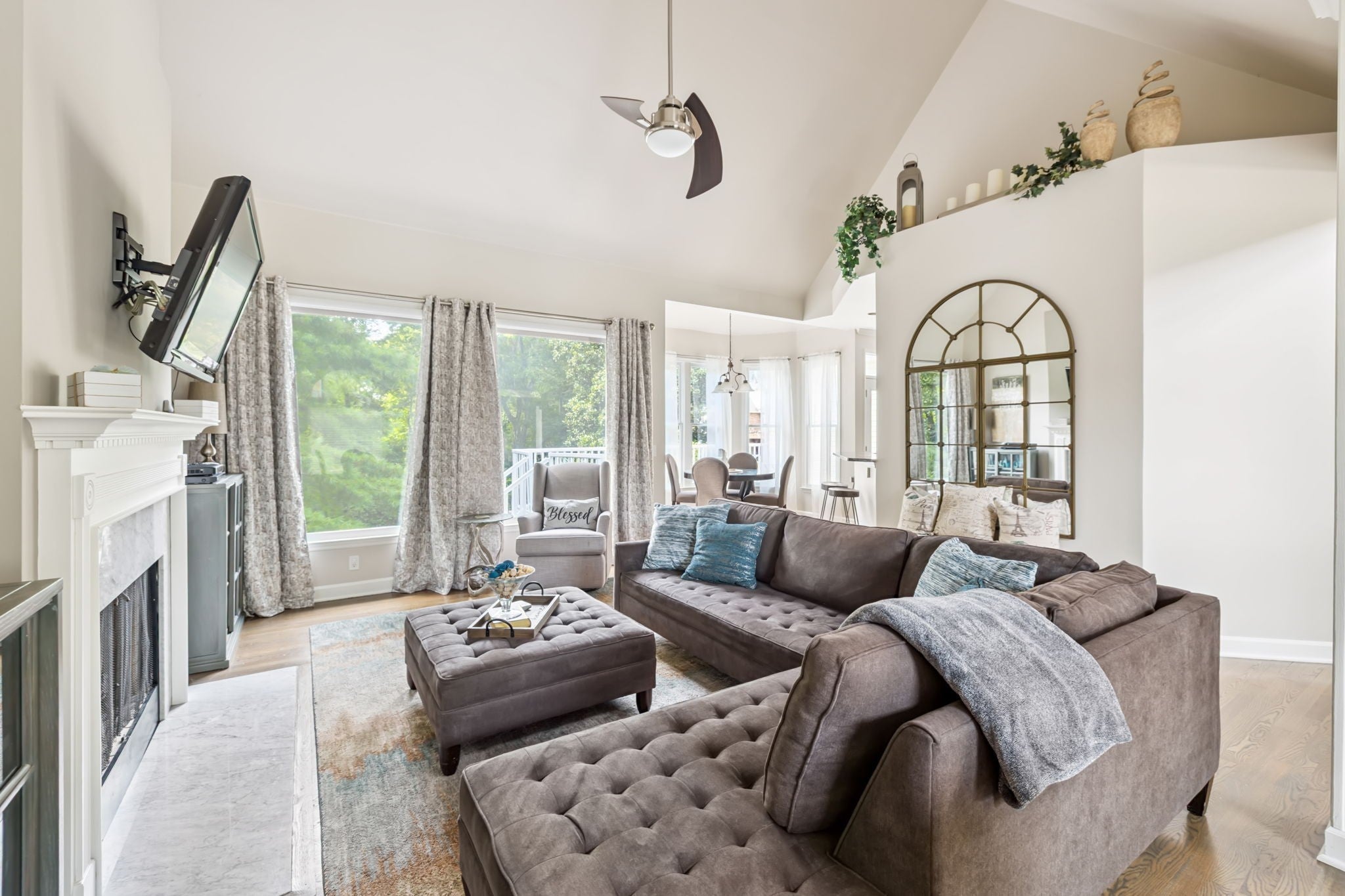 Owner-Agent Open-concept brick home with soaring ceilings and beautiful curb appeal in Bellevue with master bedroom down and numerous updates throughout! Looking for move-in ready? Check! Dreaming of a master bedroom retreat with an enormous master closet? Check! Seeking sunshine filled spacious entertaining space with views of lush greenery from kitchen and deck? Check. Circular floor plan between kitchen and living space with modern upgrades, including recently stained hardwood throughout main level and stairwell. Updated kitchen with under-cabinet lighting and double ovens. Upstairs leads to two spacious bedrooms with adjoining full bath and a bonus room above the garage. New roof installed in 2024. Deck flooring upgraded with composite boards. Easy access to downtown, midtown, Warner Parks, and retail – all just minutes away! Furnishings negotiable!
