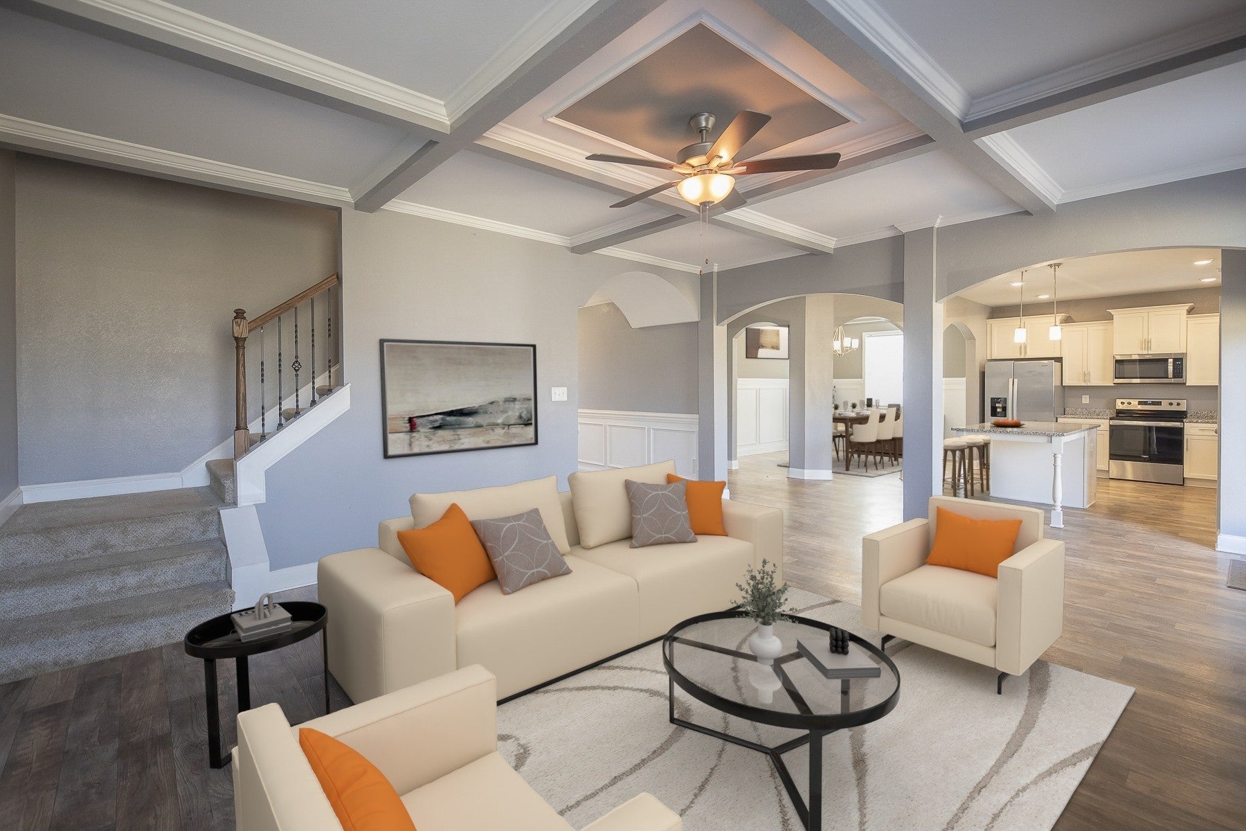 Come see this spacious gem in the sought-after West Creek Farms neighborhood, zoned for West Creek Schools. With abundant storage and thoughtful builder upgrades, this 2,873 sq ft home offers 5 bedrooms and 3 full bathrooms. Step through the wide entry hall into an open kitchen and formal dining room featuring, luxury vinyl flooring and coffered ceilings. The floor plan flows seamlessly into a large, inviting living room with a fireplace—perfect for entertaining or relaxing with loved ones. High ceilings throughout, including vaulted ceilings in all upstairs bedrooms, enhance the home’s airy feel. Each guest room includes a walk-in or oversized closet. The home has all full bathrooms, and the guest bathroom upstairs offers double vanities. The primary suite stands apart, featuring two walk-in closets and an additional flex space ideal for a lounge, office, nursery, or study. The primary bathroom includes a soaking tub, tiled walk-in shower, water closet, and dual vanities. Built on a solid concrete slab, the home minimizes long-term maintenance concerns such as moisture intrusion and pest issues. It comes fully equipped with stainless steel appliances, smart-home connected lighting, and a security system supported by high-speed fiber internet. Enjoy privacy on the covered patio overlooking a spacious, fenced backyard. The lot extends beyond the current fence line, offering even more potential outdoor space. Assumable VA loan available at 5.25%. Call today to schedule your showing: (615) 235-3410.