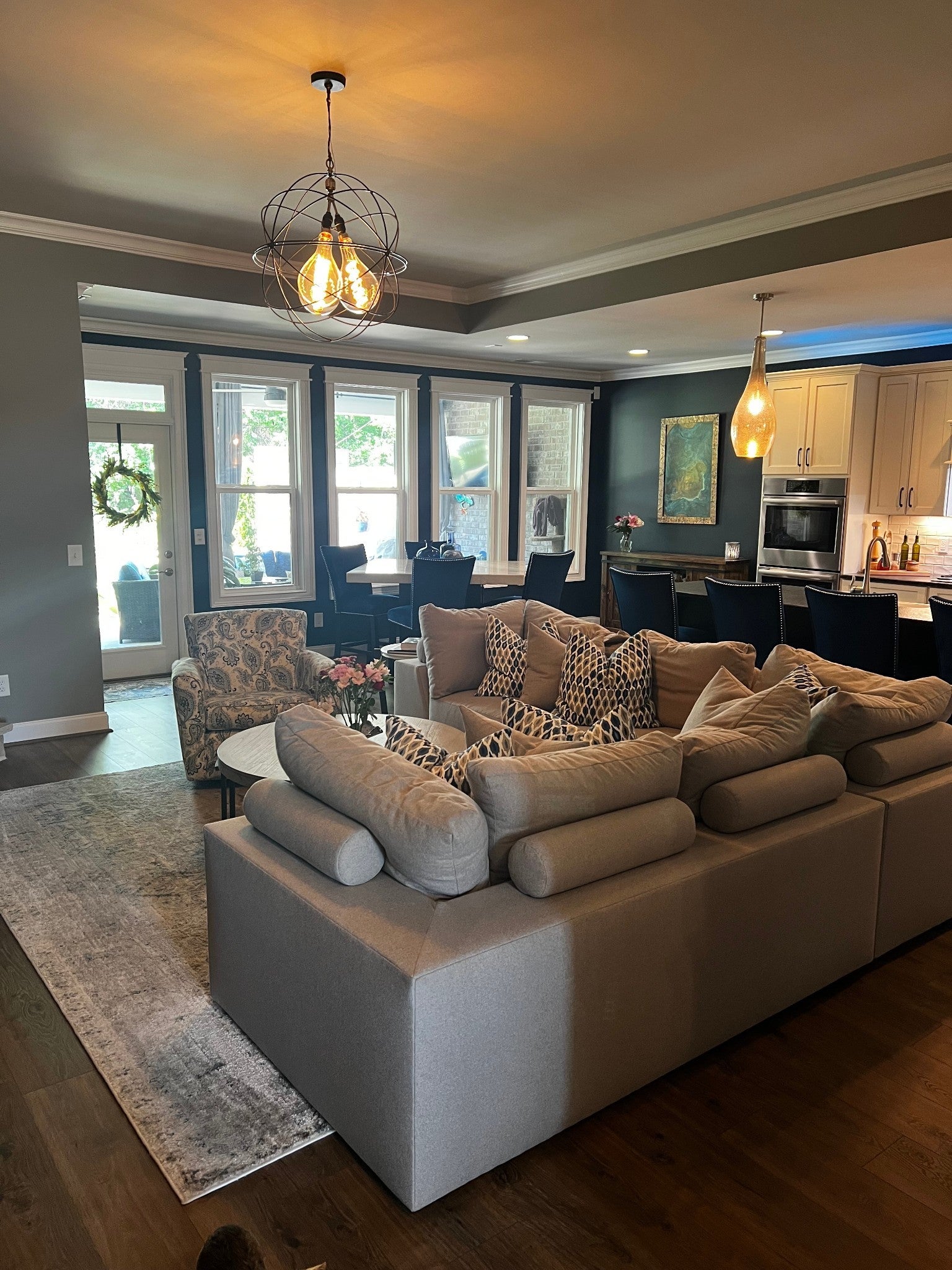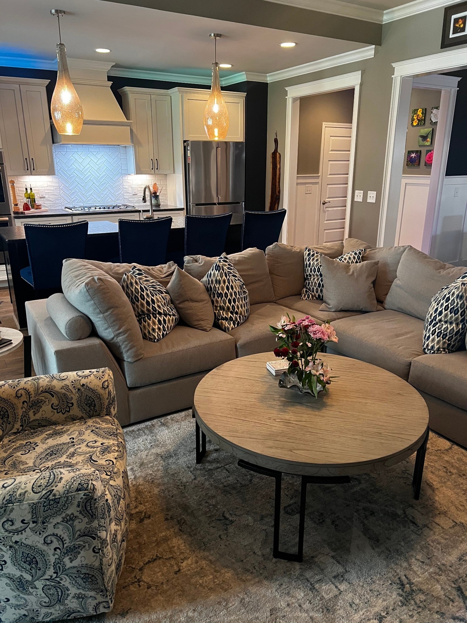 Lovely 3 bedroom 3 bath home, Bosch 800 series appliances, double oven, butler's pantry with wine fridge, large pantry, unique lighting fixtures, large patio with natural gas fire pit, all bathrooms full surround tile bath/showers, extended attic space, lawn and front landscaping maintained by HOA, large bonus room and large guest suite upstairs.