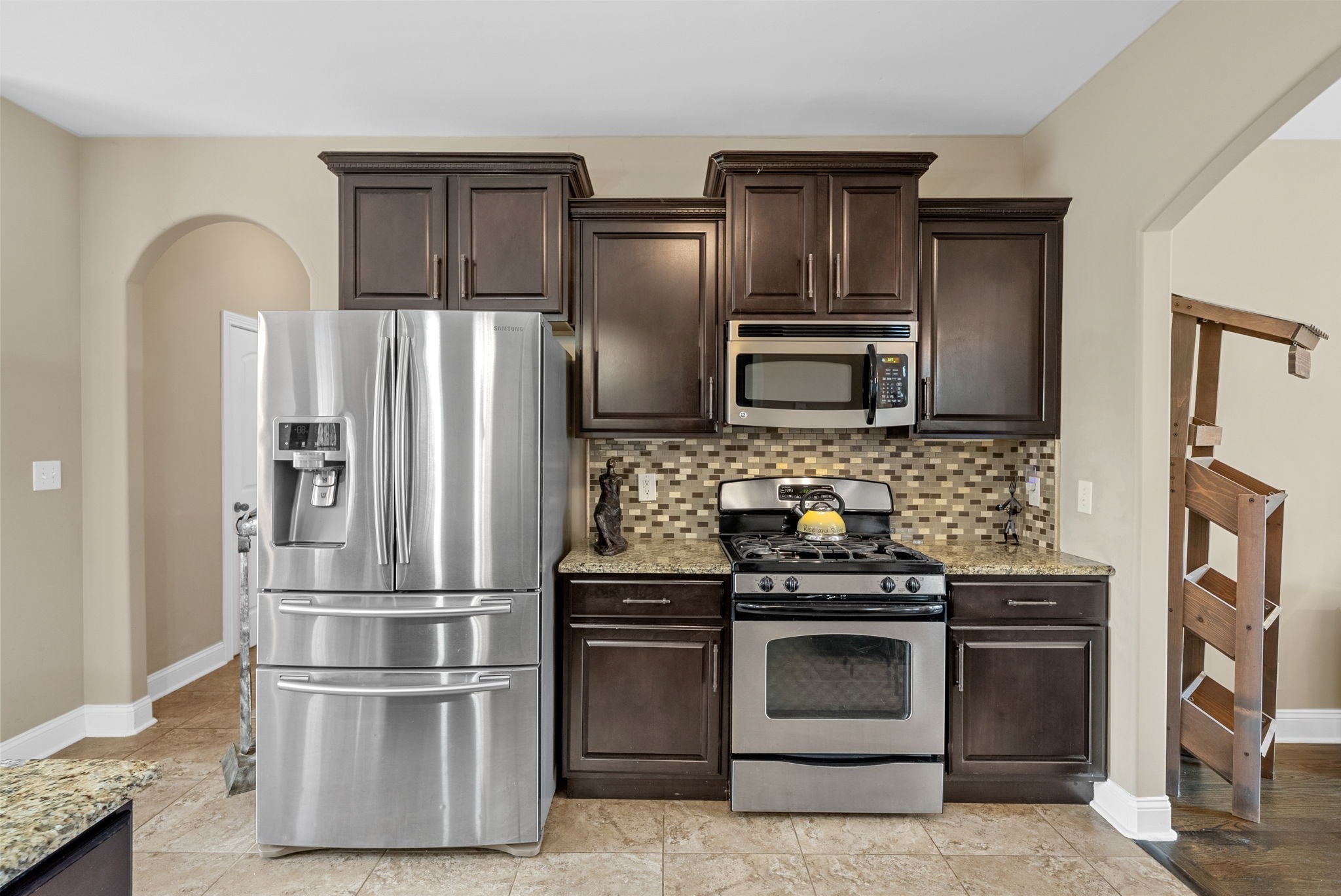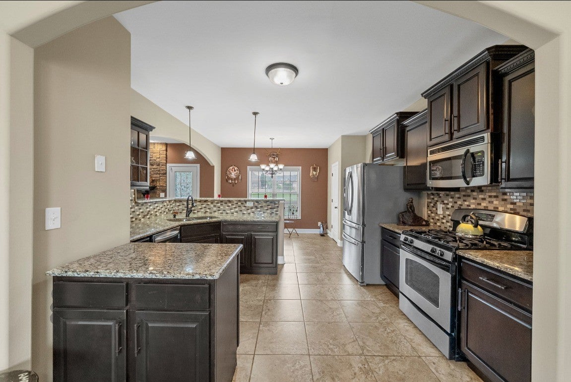 - Gas Oven, Gas Range, Dishwasher, Disposal, Microwave, Refrigerator, Stainless Steel Appliance(s)