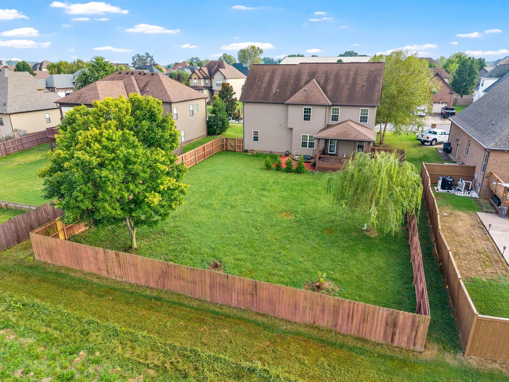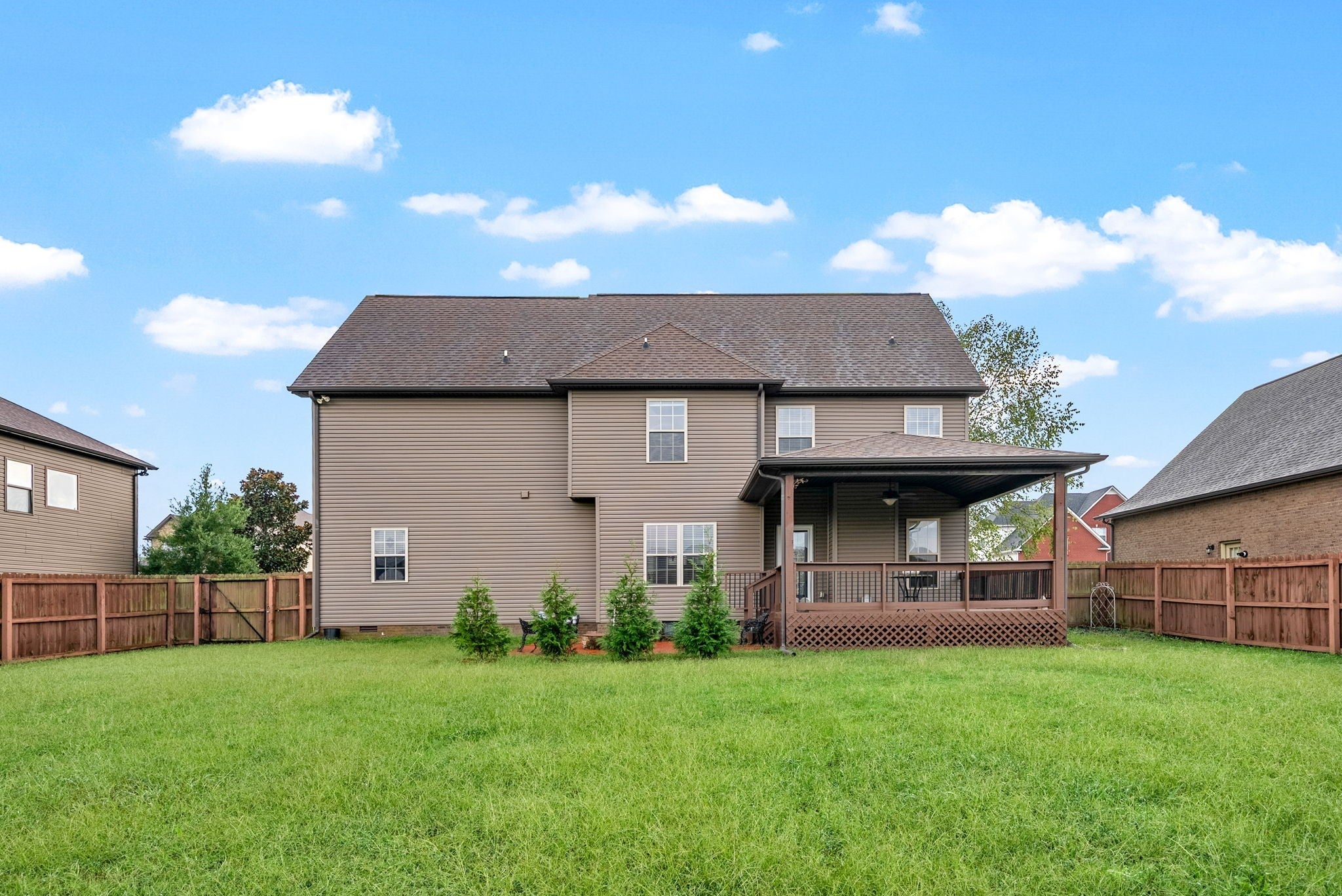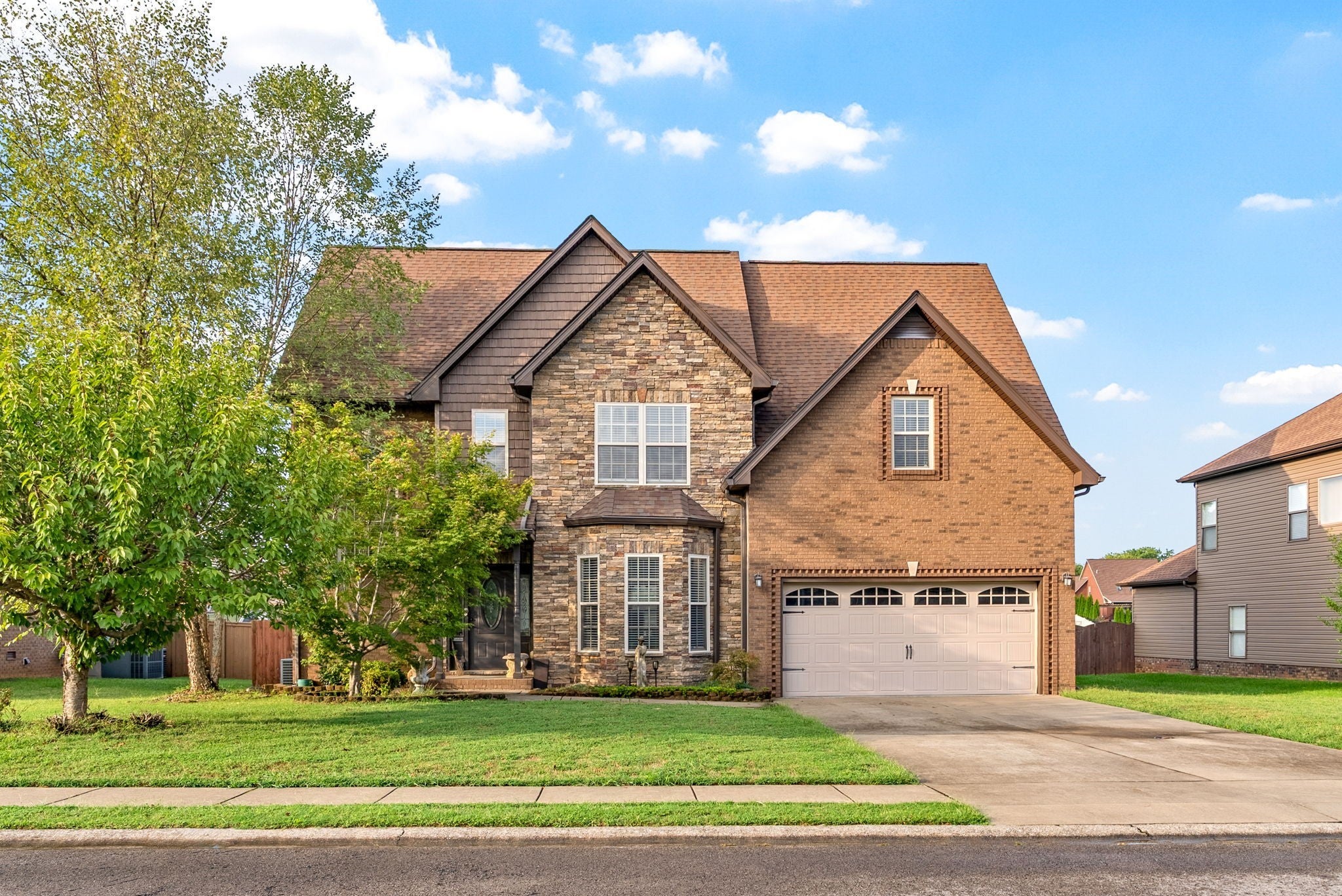 Charming 2-Story Home in Desirable Farmington Subdivision Welcome to this beautiful brick and stone home with vinyl trim, located in the highly sought-after Farmington Subdivision. This 2-story residence offers fantastic curb appeal and a spacious, privacy-fenced backyard complete with a covered deck, side patio, and firepit—perfect for relaxing or entertaining. Inside, you’ll find stunning flooring throughout the main level and a welcoming entry foyer. The partially open floor plan includes a formal dining room just off the kitchen, which flows seamlessly into the bright, airy living area featuring a cozy gas fireplace. The kitchen is equipped with stainless steel appliances and offers plenty of space for cooking and gathering. Upstairs, all bedrooms provide a comfortable retreat, with carpet in the sleeping areas and tile in wet areas. The owner’s suite is a true sanctuary, featuring a unique coved ceiling above the bed area, a separate sitting room, a spacious walk-in closet, and a luxurious en-suite bath with a jacuzzi tub and walk-in shower. This home is clean, comfortable, and filled with natural light—perfect for those seeking warmth, functionality, and charm. A must-see!