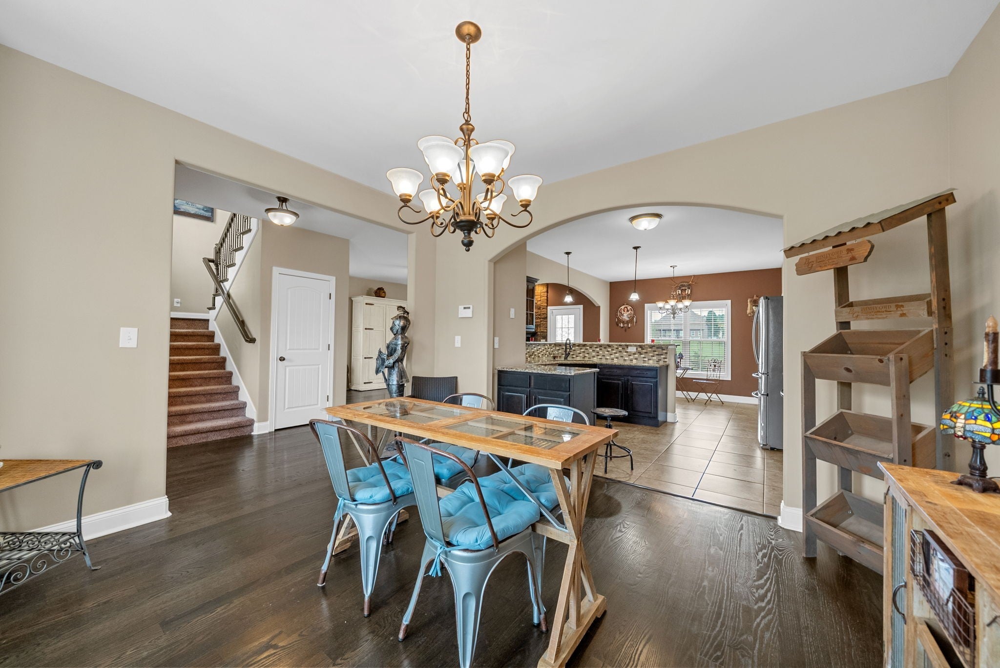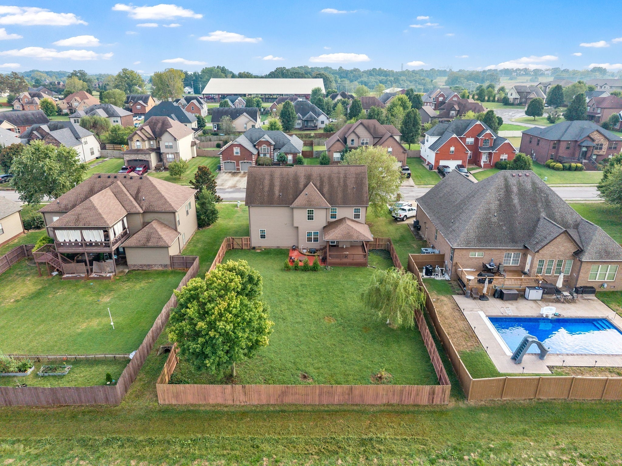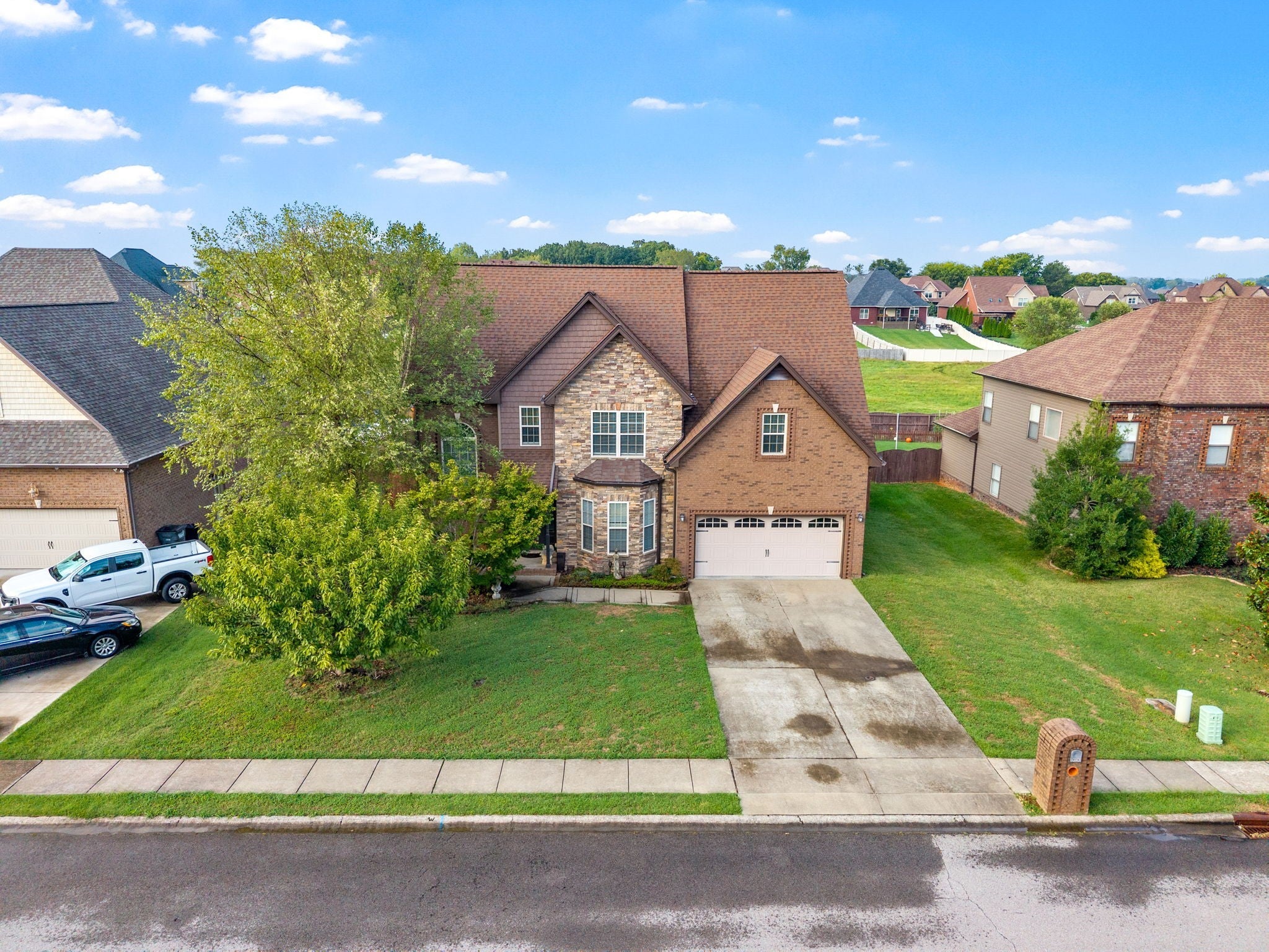 Charming 2-Story Home in Desirable Farmington Subdivision Welcome to this beautiful brick and stone home with vinyl trim, located in the highly sought-after Farmington Subdivision. This 2-story residence offers fantastic curb appeal and a spacious, privacy-fenced backyard complete with a covered deck, side patio, and firepit—perfect for relaxing or entertaining. Inside, you’ll find stunning flooring throughout the main level and a welcoming entry foyer. The partially open floor plan includes a formal dining room just off the kitchen, which flows seamlessly into the bright, airy living area featuring a cozy gas fireplace. The kitchen is equipped with stainless steel appliances and offers plenty of space for cooking and gathering. Upstairs, all bedrooms provide a comfortable retreat, with carpet in the sleeping areas and tile in wet areas. The owner’s suite is a true sanctuary, featuring a unique coved ceiling above the bed area, a separate sitting room, a spacious walk-in closet, and a luxurious en-suite bath with a jacuzzi tub and walk-in shower. This home is clean, comfortable, and filled with natural light—perfect for those seeking warmth, functionality, and charm. A must-see!