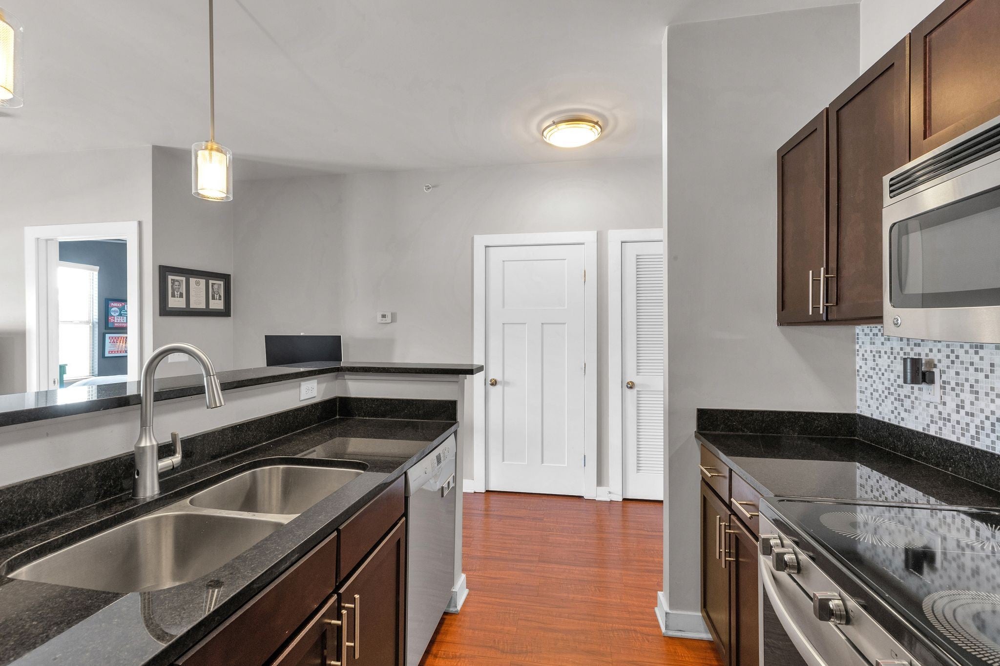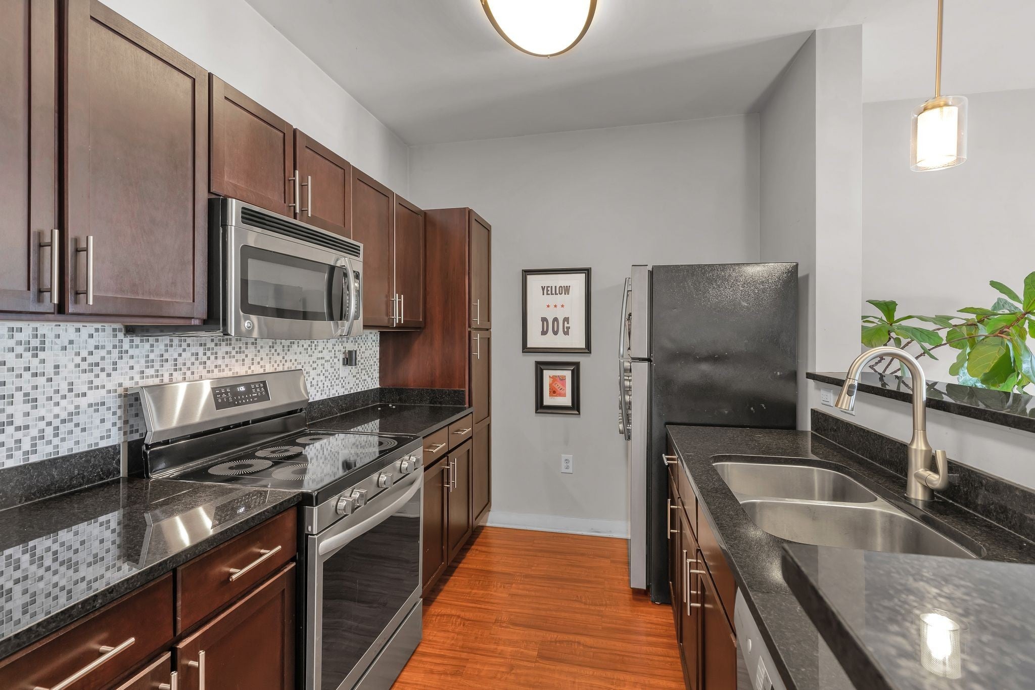 - Electric Oven, Electric Range, Dishwasher, Dryer, Microwave, Refrigerator, Stainless Steel Appliance(s), Washer