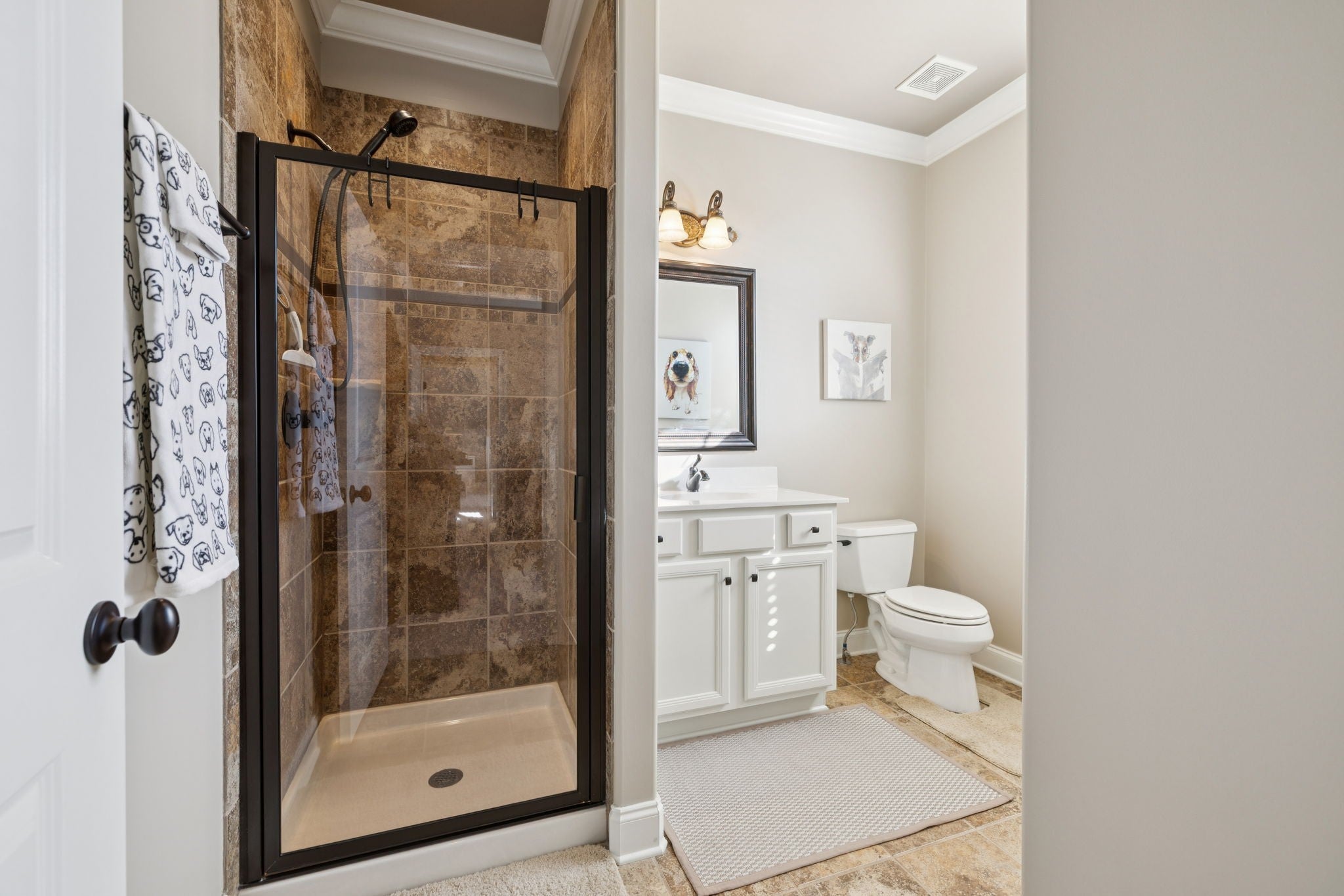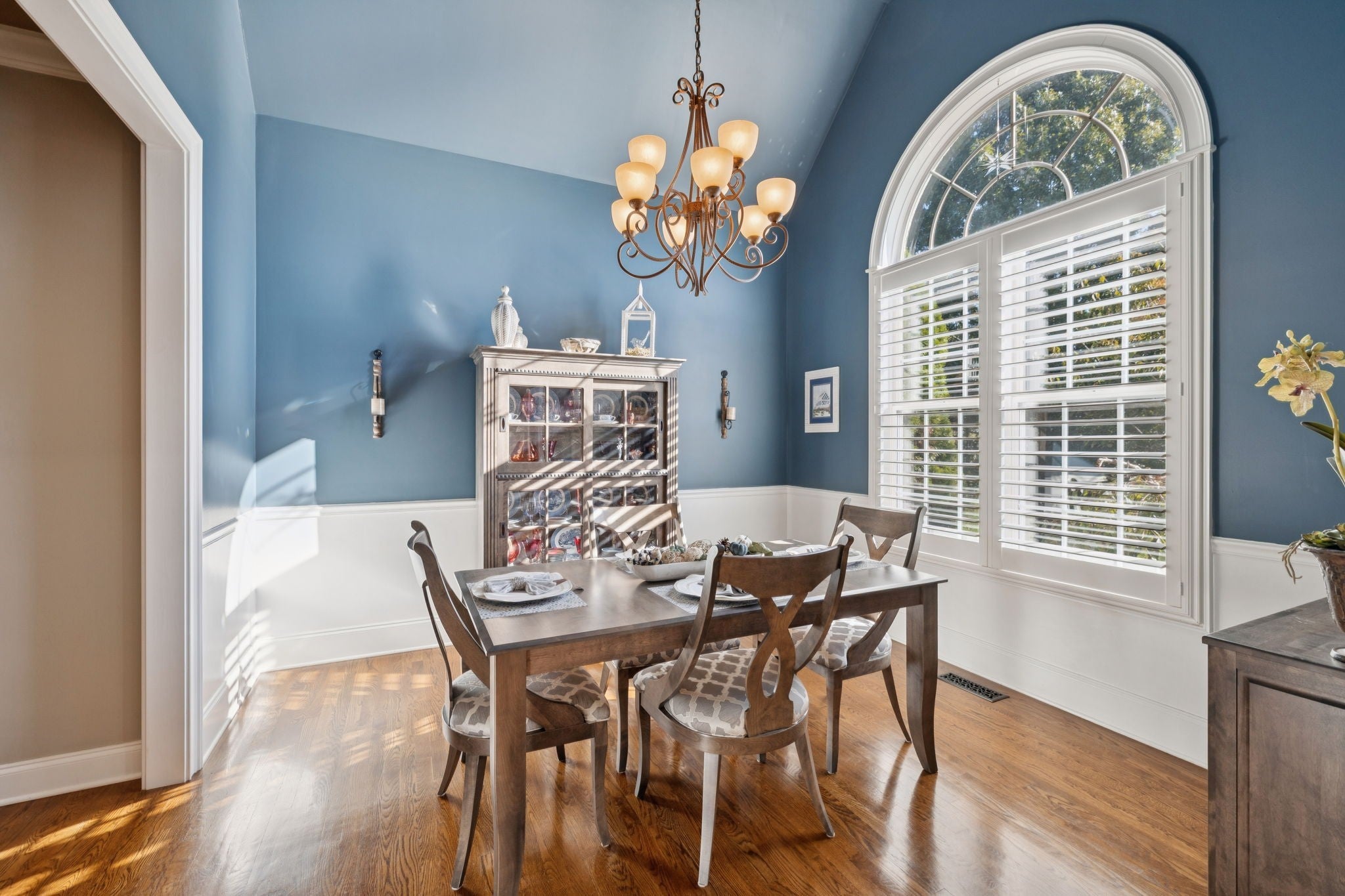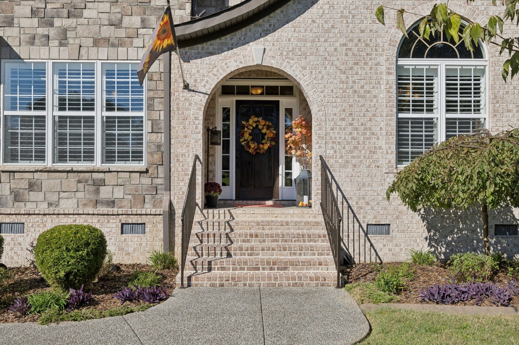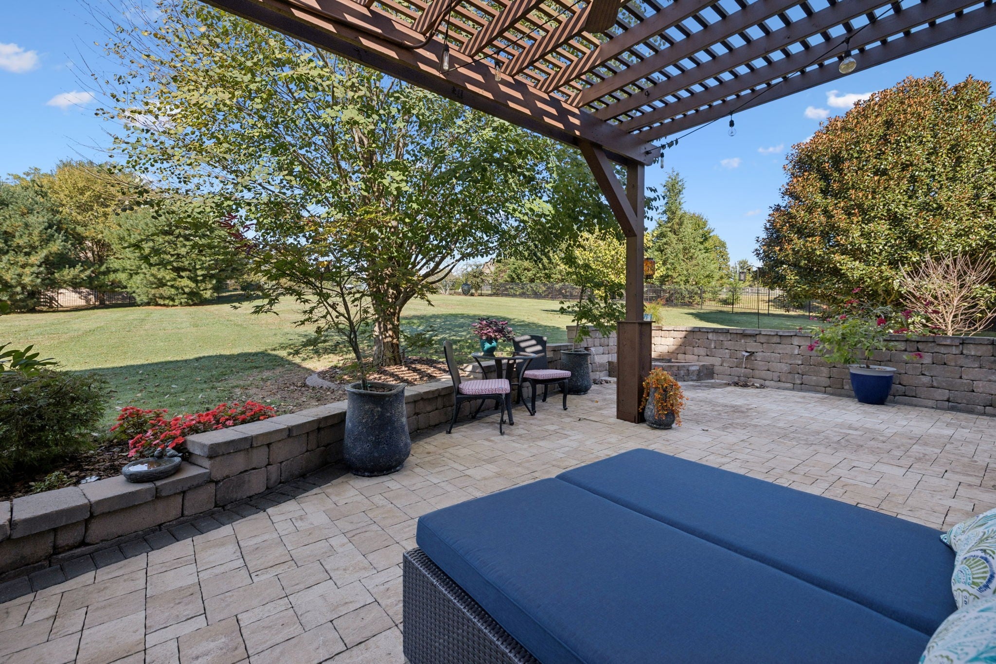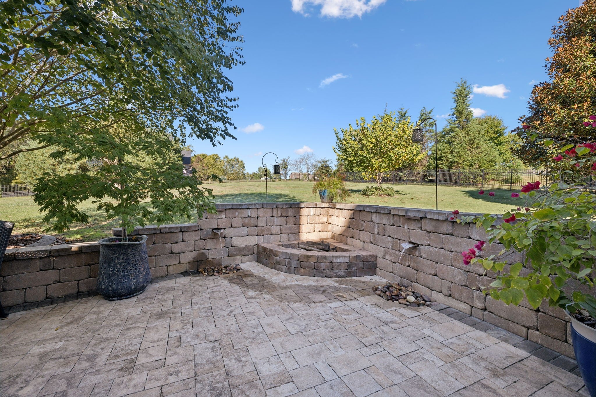 Experience timeless elegance in this exquisite French Country estate offering 3861 sq. ft. of refined living. Thoughtfully designed with 4 bedrooms and 3.5 baths, this residence blends architectural beauty with modern sophistication. The first-floor primary suite is a private retreat with a spa-inspired ensuite. A dedicated space for a home office offers the perfect work-from-home sanctuary. The heart of the home features soaring spaces, a warm fireplace, gleaming hardwood floors, and plantation shutters throughout the main level. The gourmet kitchen is designed for both culinary artistry and entertaining, with granite countertops, double ovens, and custom finishes. Upstairs, a media room and expansive bonus room provide the ultimate spaces for leisure and entertainment. An oversized three-car garage is a luxury in itself, offering built-in cabinetry, heavy-duty shelving, a storm shelter, and an RV plug outside for convenience. Additional high-end features include a central vacuum system and a whole-home circuit breaker designed to protect valuable electronics. Outdoors, sophistication continues with a screened patio and fireplace overlooking the property, as well as an inviting courtyard-style patio with pergola and tranquil water features—perfect for gatherings or quiet evenings. Blending European-inspired architecture with modern amenities, this remarkable residence offers a lifestyle of luxury, comfort, and peace of mind.