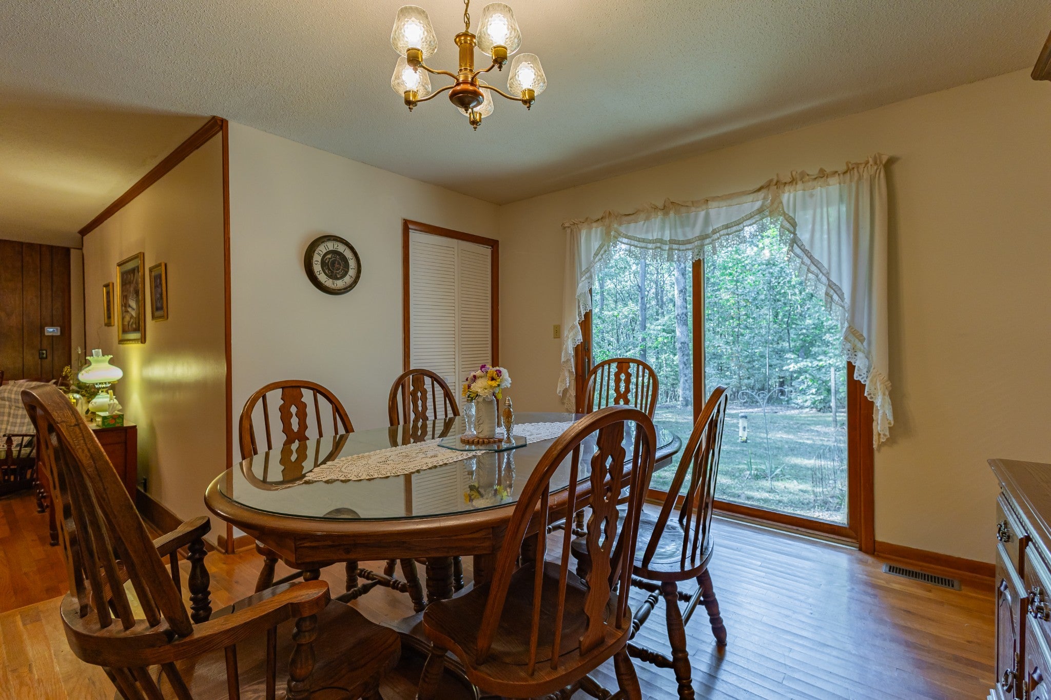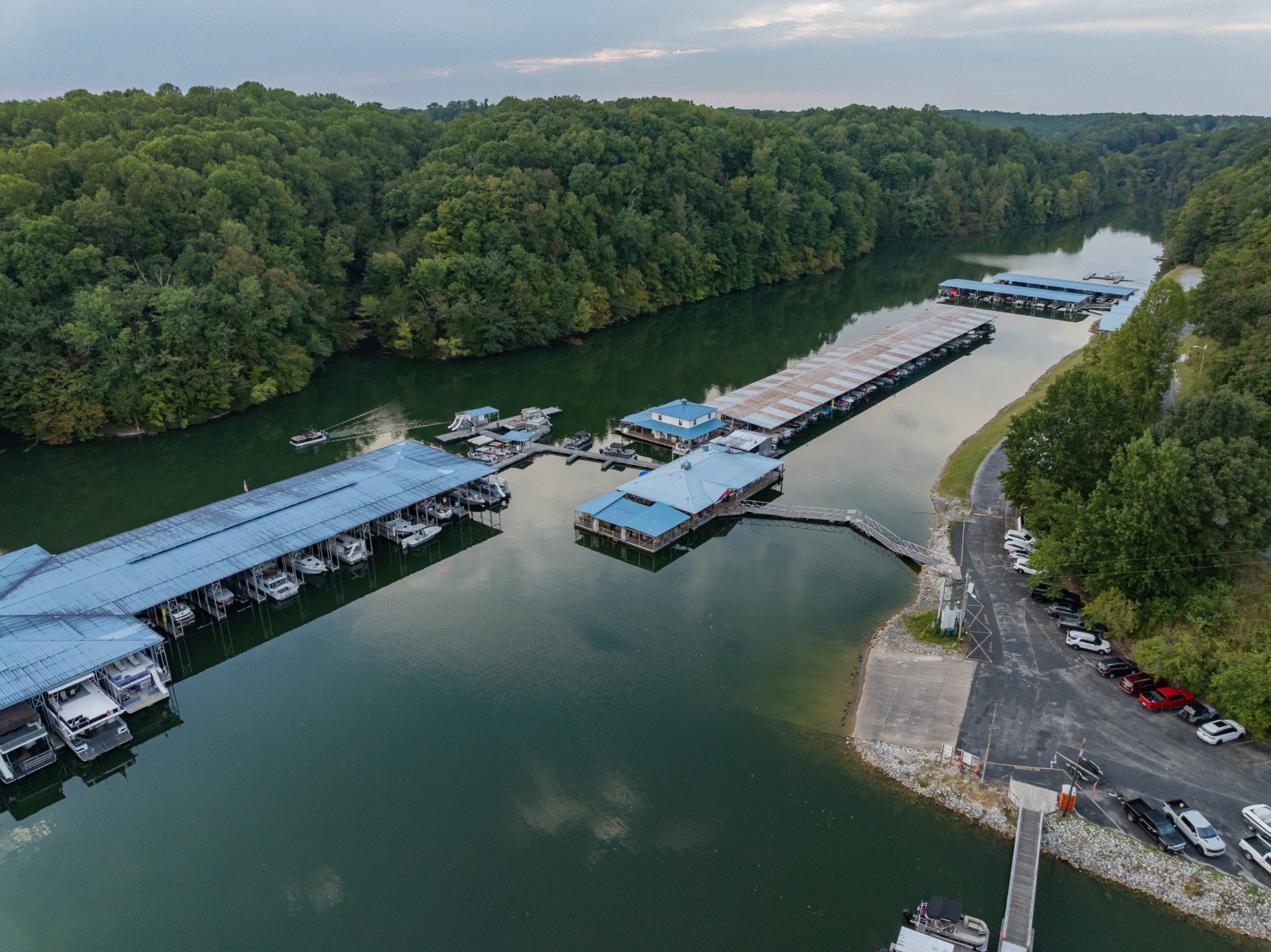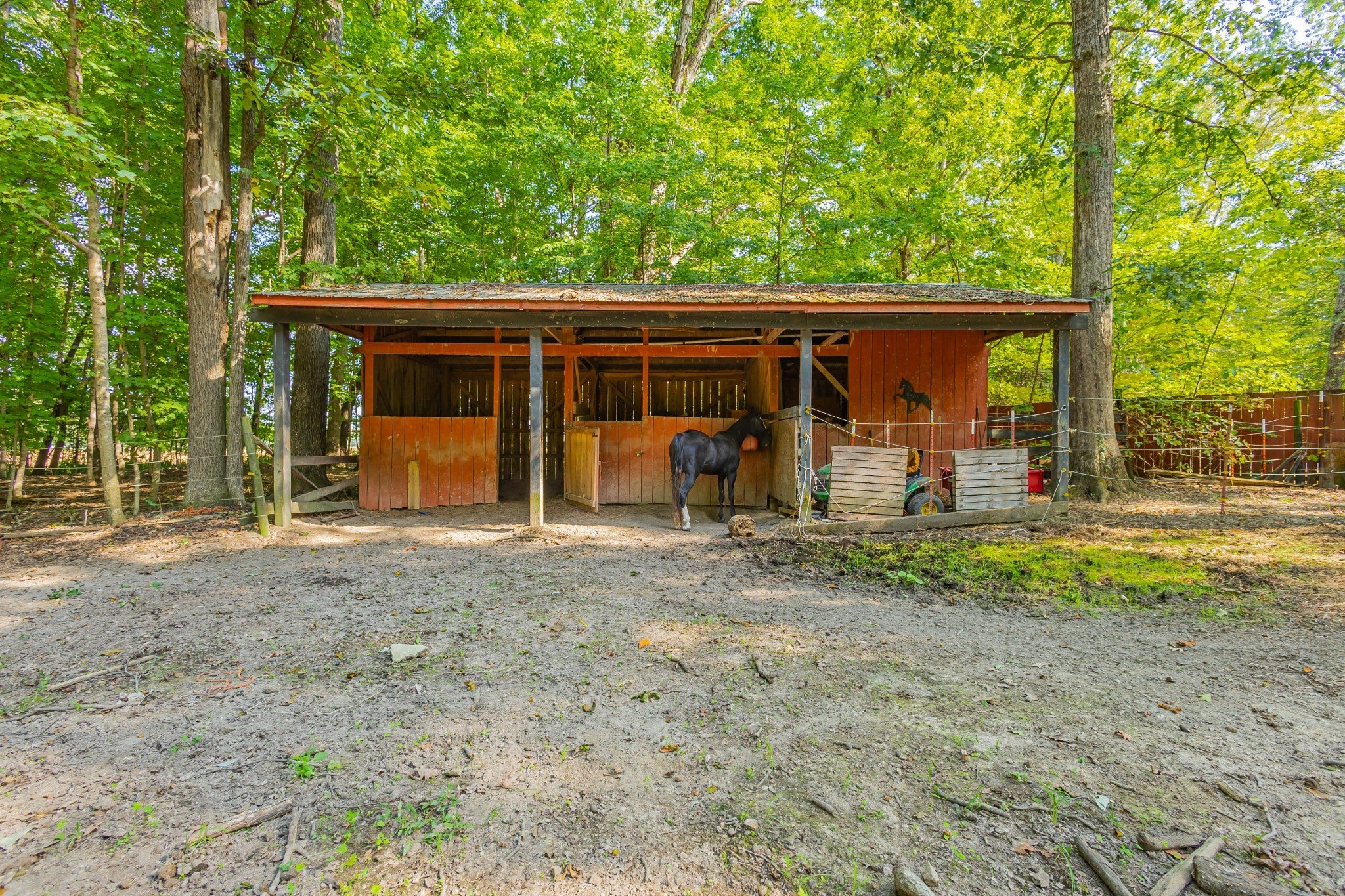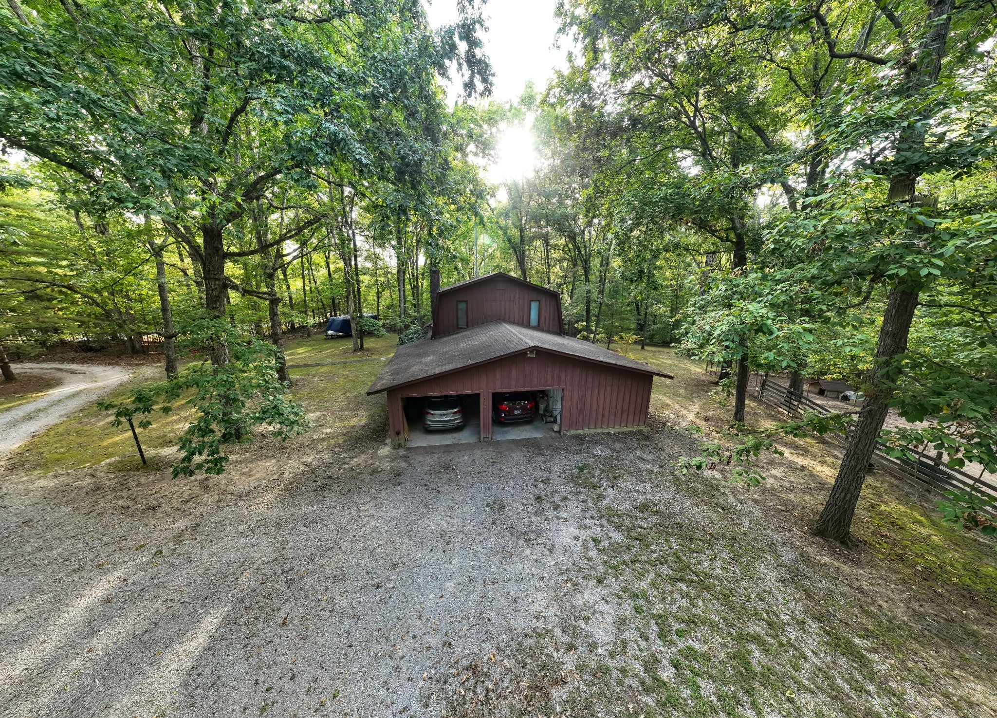 An amazing find! This secluded home is on approximately 6 acres featuring mature shade trees, oval in-ground pool measuring 20x40 feet, three-stall barn, and fenced pasture ideal for any type livestock. This peaceful country property is in an ideal location! It offers convenient walking or a short drive on a golf cart to Holiday Landing with easy boat dock access and good food at the Bluegill Grill restaurant. The first floor consists of authentic red and white oak hardwood flooring throughout main living areas, a large living room with a gas fireplace, a sunroom perfect for relaxation, a spacious bedroom with a walk-in closet, a roomy utility room, full bathroom, and two-car attached garage with an additional storage room! And that is only the downstairs! The upstairs features two extremely large bedrooms with large closet space and a second full sized bathroom. Property includes fiber internet, natural gas access, a storage shed, and a charming garden area. In addition to being within walking distance of the lake, this home is located minutes from Tim's Ford State Park and Bear Trace Golf Course, offering excellent recreational opportunities for boating, fishing, golfing, and hiking. There is abundant wildlife viewing on the property itself from the luxury of your own sunroom and the well-established shade trees create a private sanctuary while maintaining proximity to modern-day amenities and conveniences. This rare find combines rural tranquility with accessibility to waterfront activities and local dining. The house, inground pool and approximately 1 acre can be sold separately. However, the house must sell before the 5 acres if splitting. Just think, no HOA, unrestricted property, great location! Will divide but home must sell primary before any other split. Homestaeders this unrestrited property has it all. Hunters and fishermen use this as your homebase paradise can be seen in the pictures.